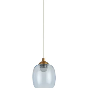 Paris Style AR Brass/Blue Squircle Glass, 1 x 5W LED, 3000K, 700lm, 2.5m Assembly Pendant With A DC Plug