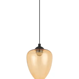 Paris Style AR Satin Black/Amber Acorn Glass, 1 x 5W LED, 3000K, 700lm, 5m Assembly Pendant With A DC Plug