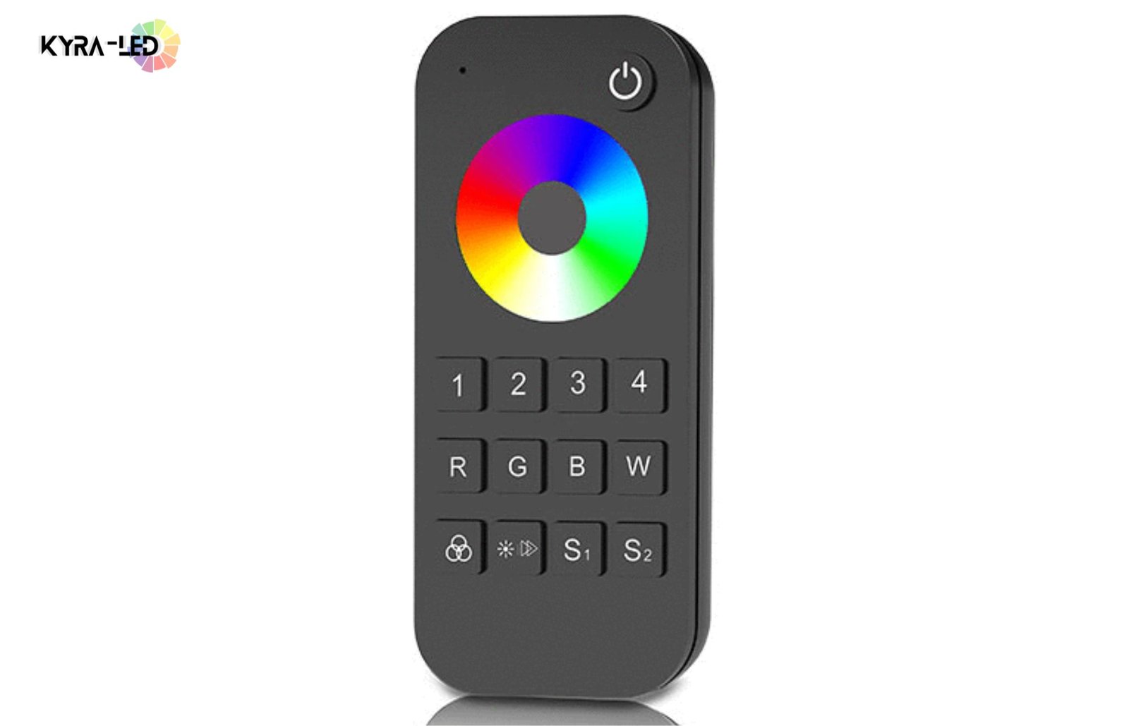 KYRA LED 4 ZONE RGB/RGBW HAND HELD TOUCH WHEEL REMOTE C / W MAGNETIC BRACKET BLK