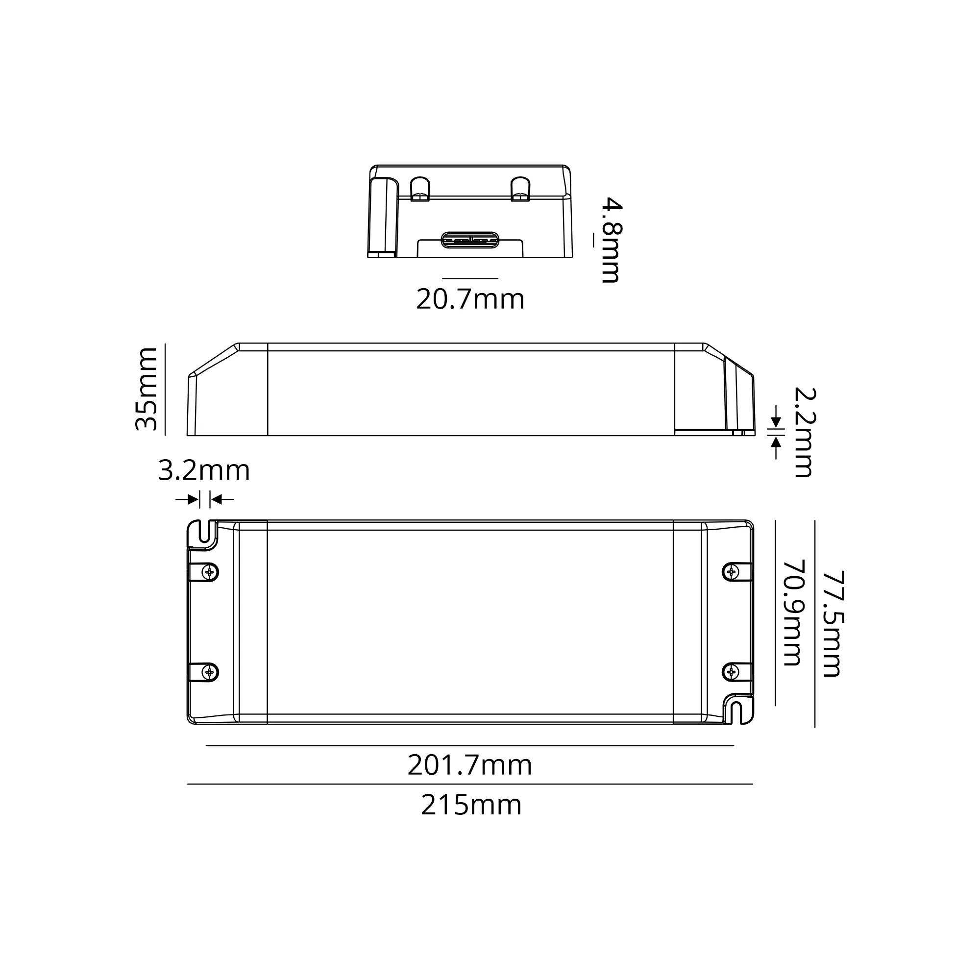 Dimensions 215 × 78 × 35 mm