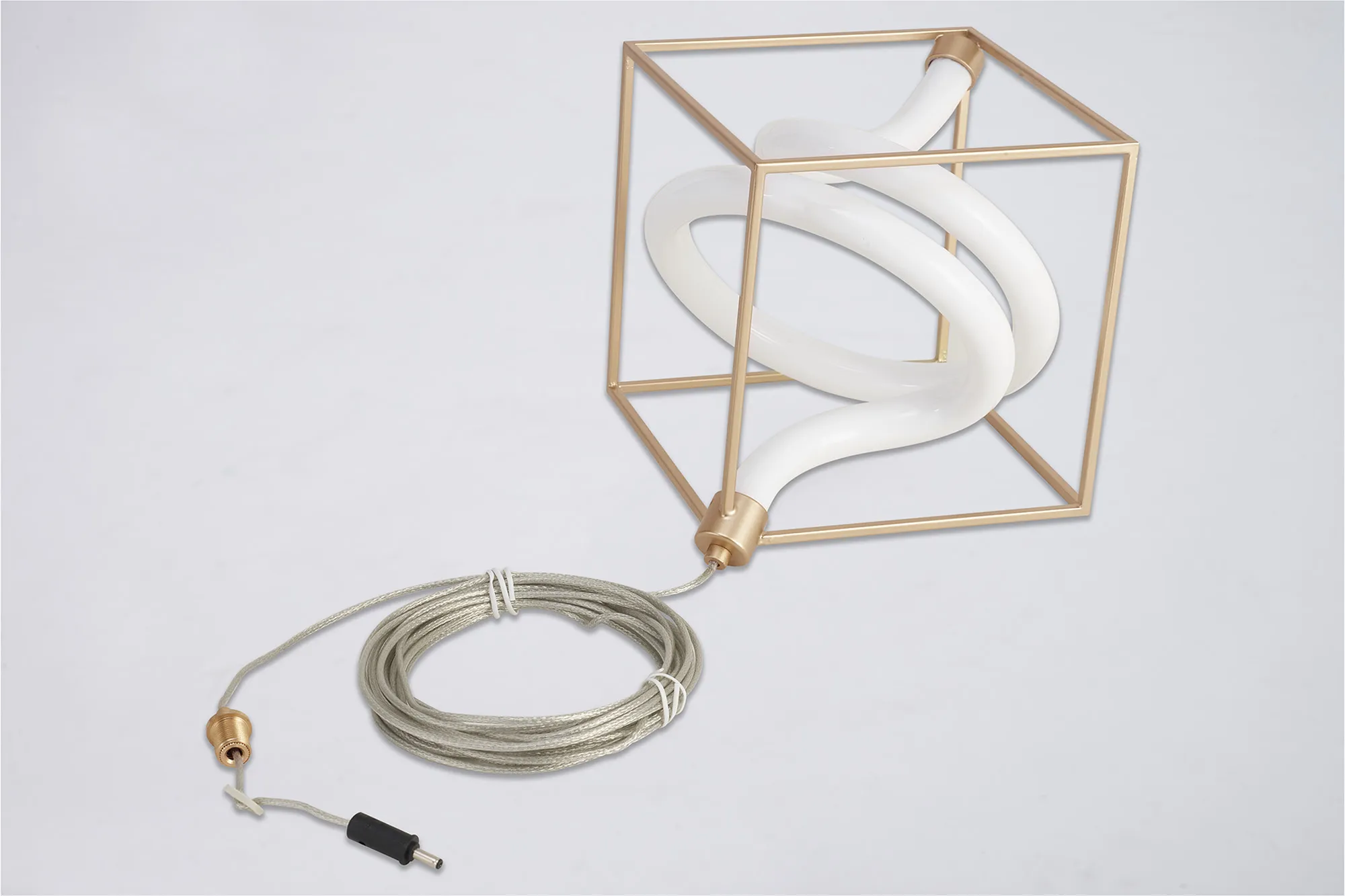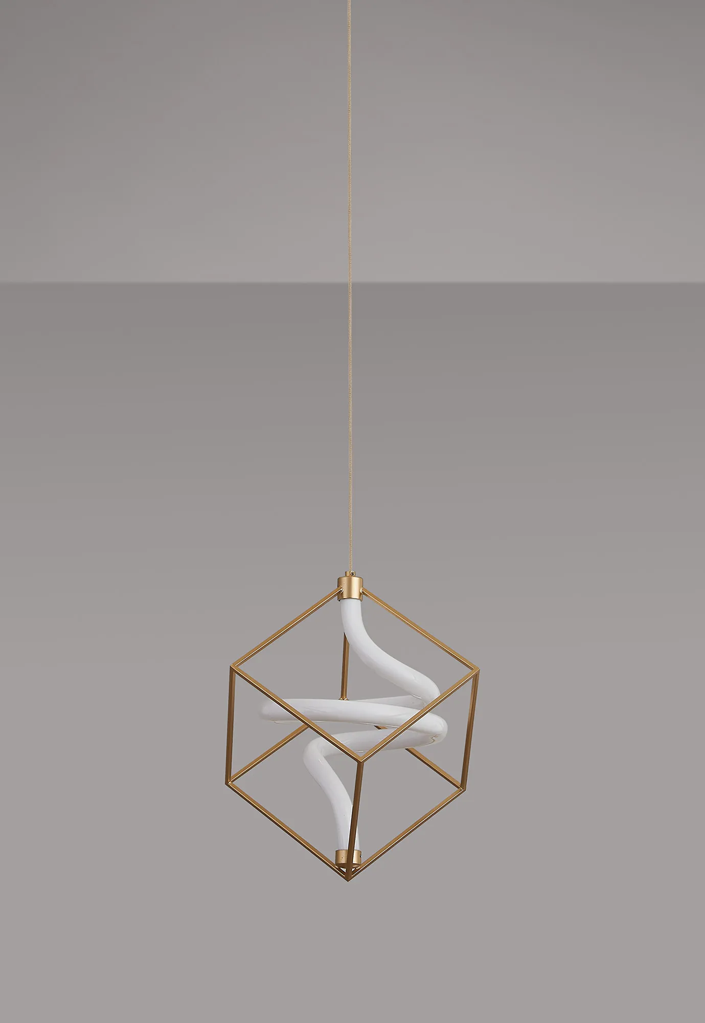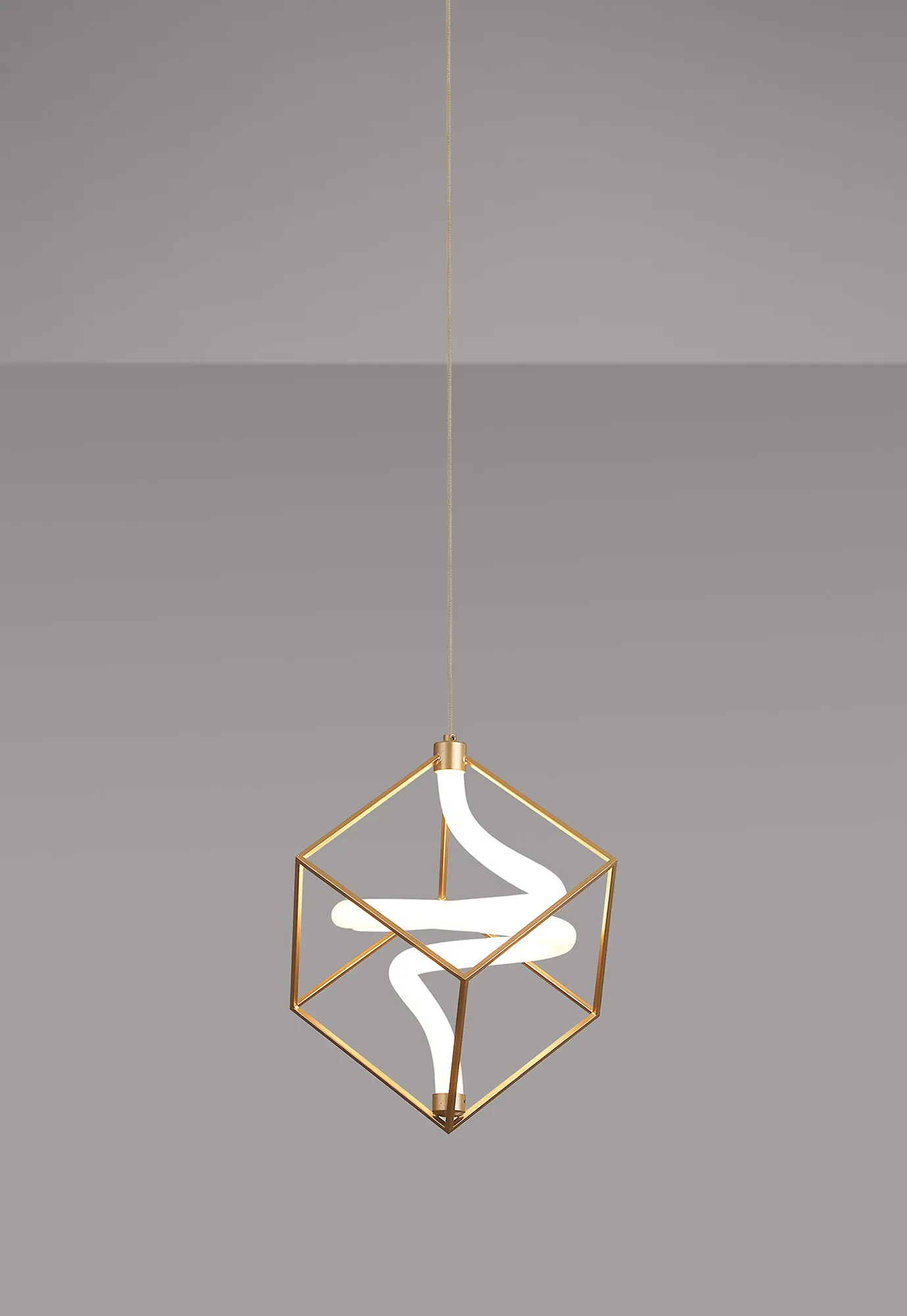 Paris Style AB, Gold LED Cube, 11W LED, 3000K, 820lm, 5m Assembly Pendant With A DC Plug