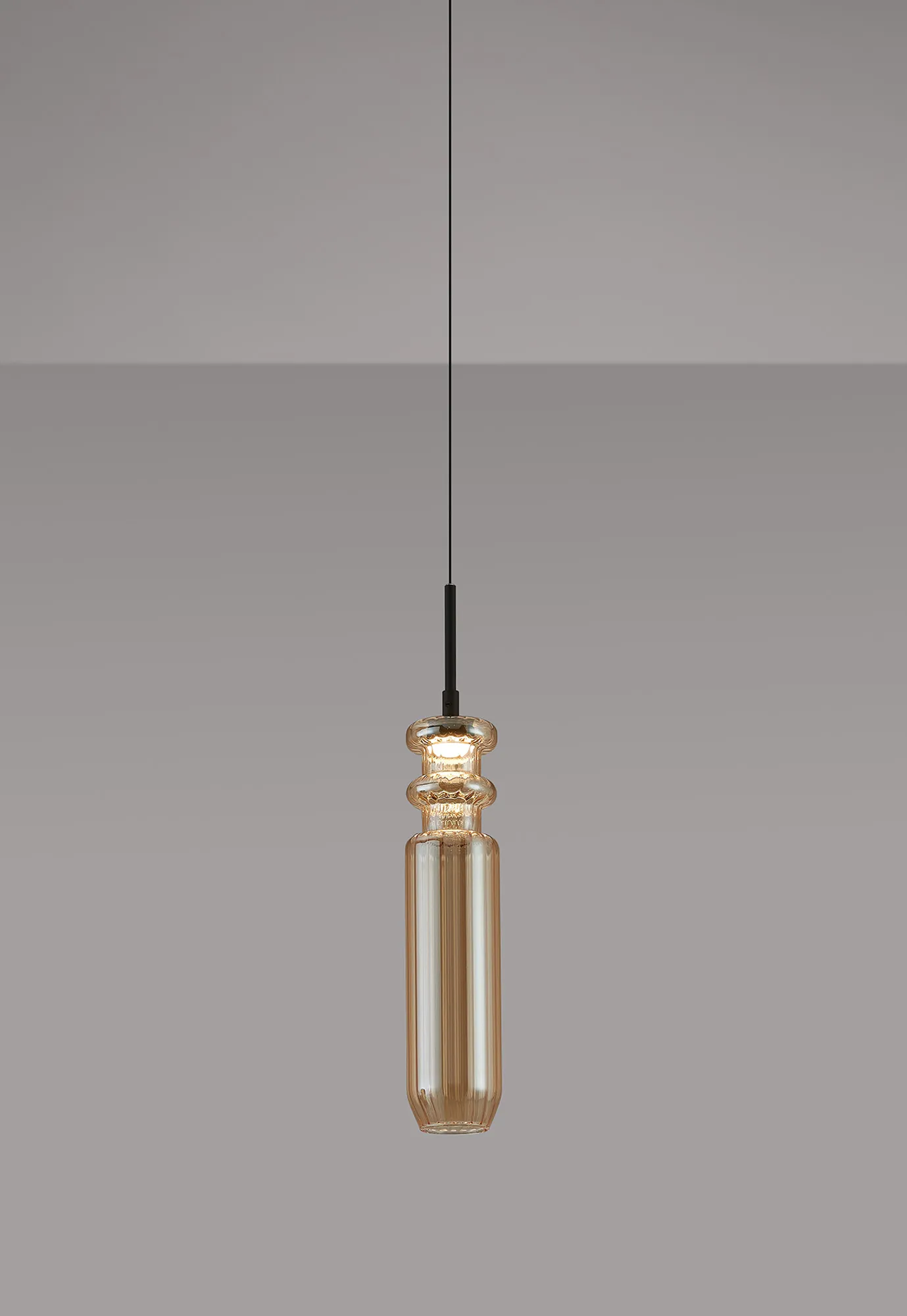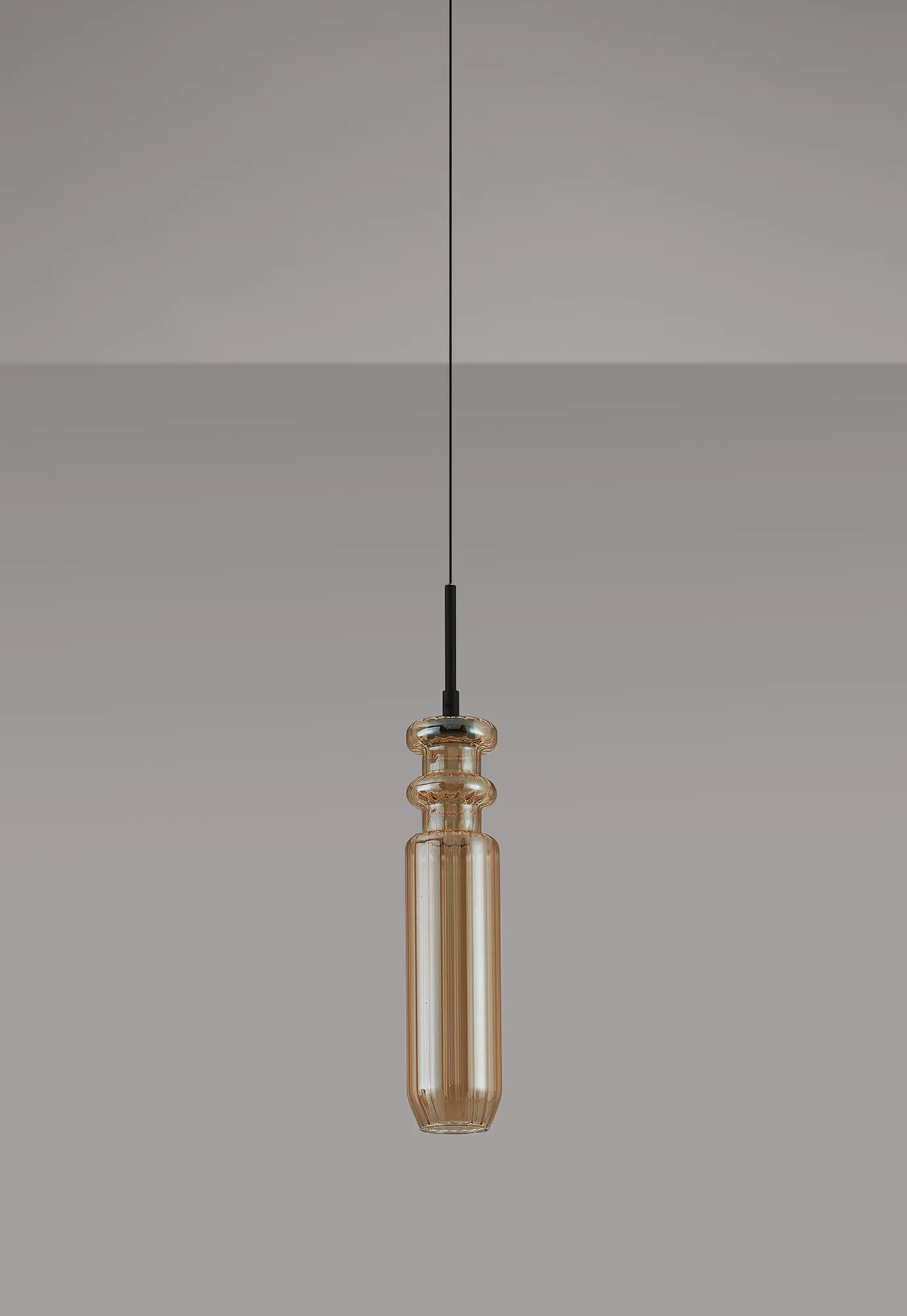 Paris Style AF Satin Black/Amber, 36cm Ribbed Glass, 4W LED, 3000K, 730lm, 5m Assembly Pendant With A DC Plug