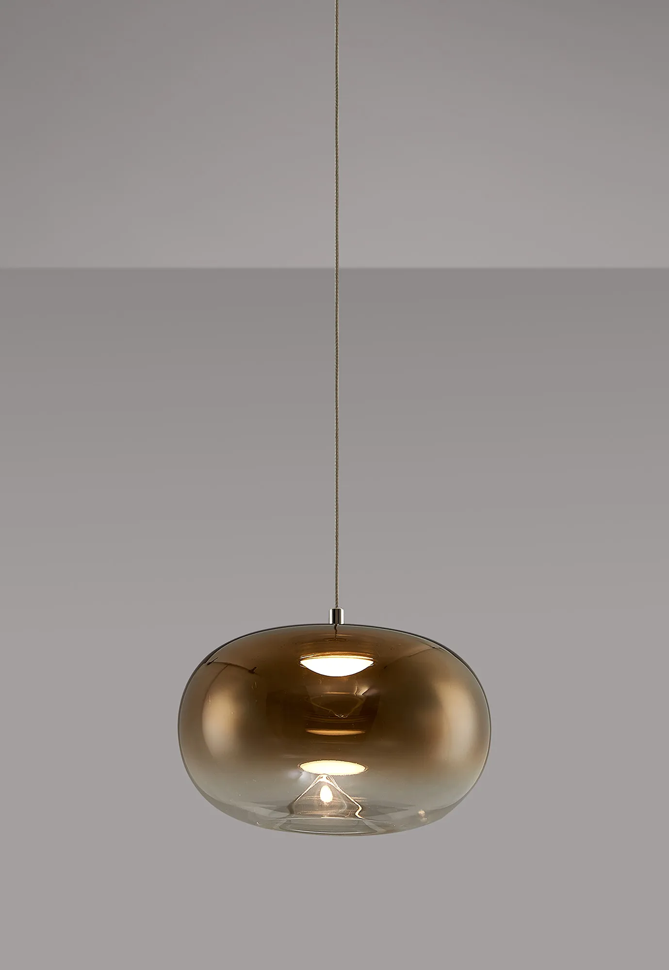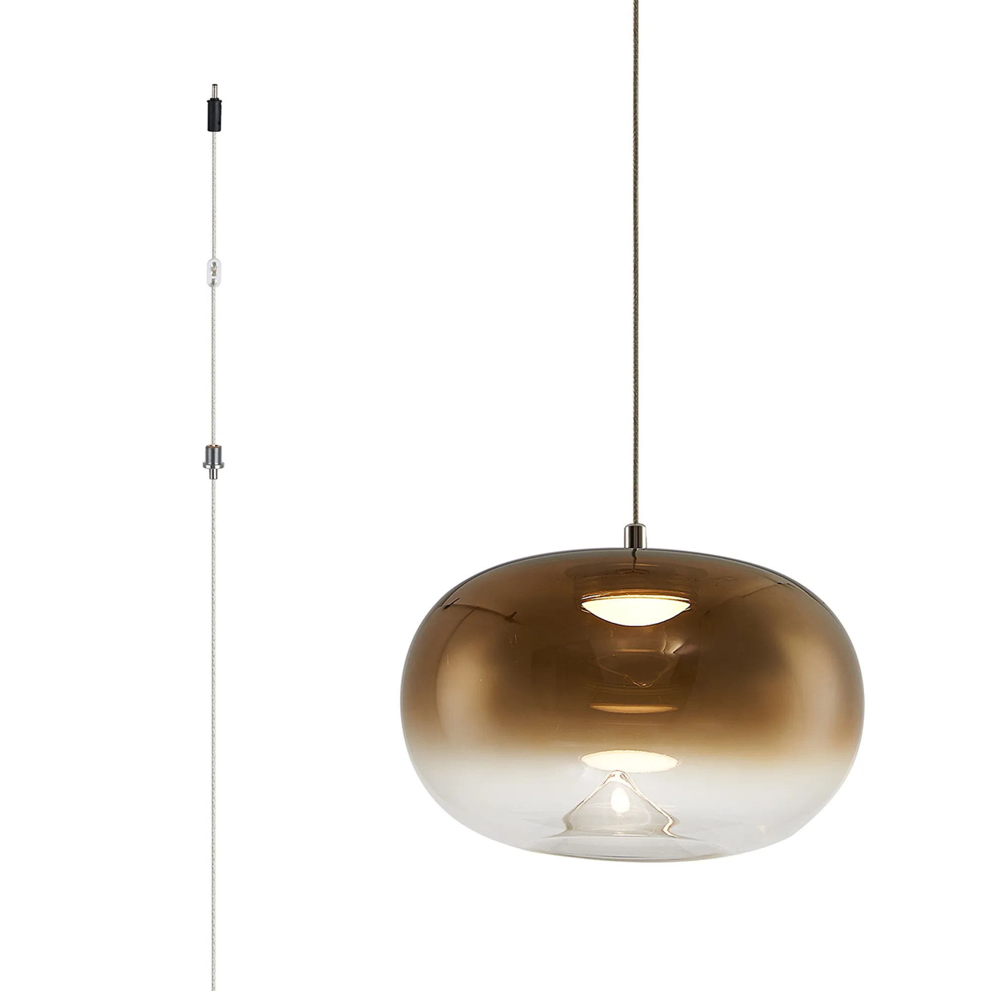 Paris Style AG Polished Nickel/Gold Fade Ellipse Glass, 1 x 4W LED, 3000K, 730lm, 5m Assy Pendant With A DC Plug
