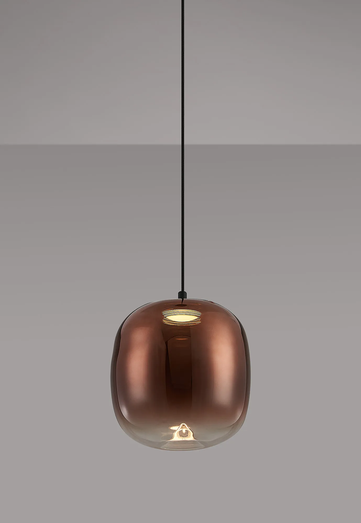 Paris Style AG Satin Black/Copper Fade Squoval Glass, 1 x 4W LED, 3000K, 730lm, 5m Assy Pendant With A DC Plug