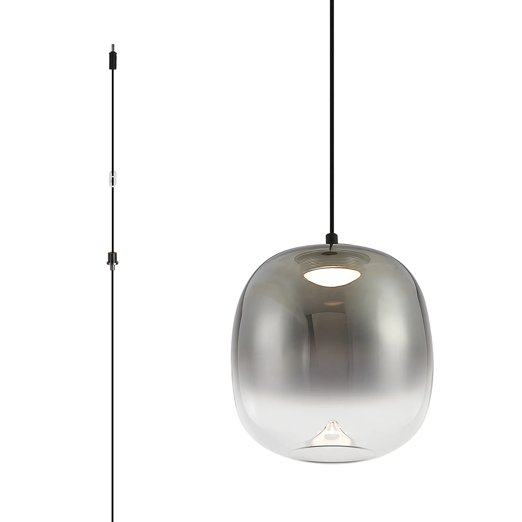 Paris Style AG Satin Black/Smoke Fade Squoval Glass, 1 x 4W LED, 3000K, 730lm, 5m Assy Pendant With A DC Plug