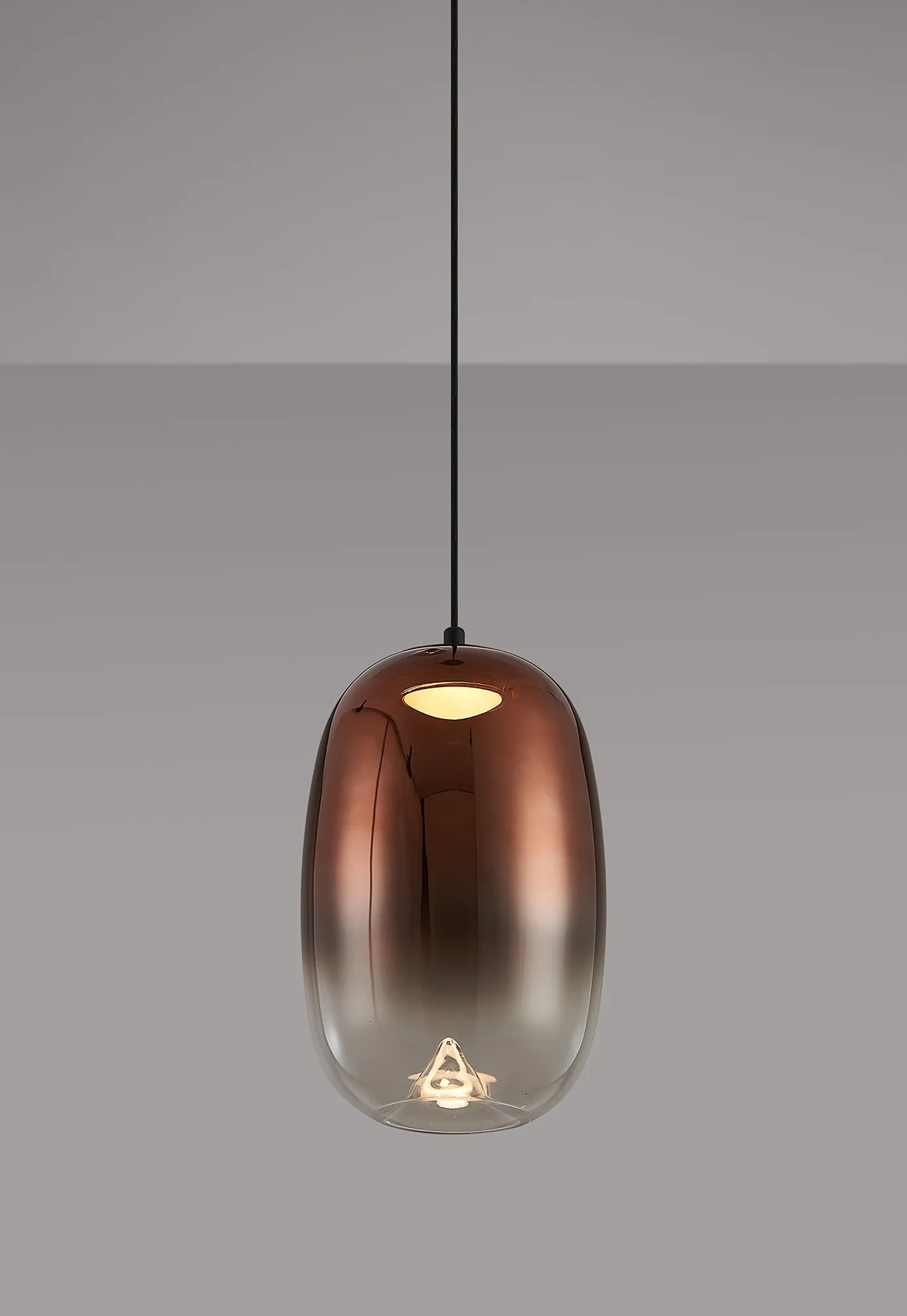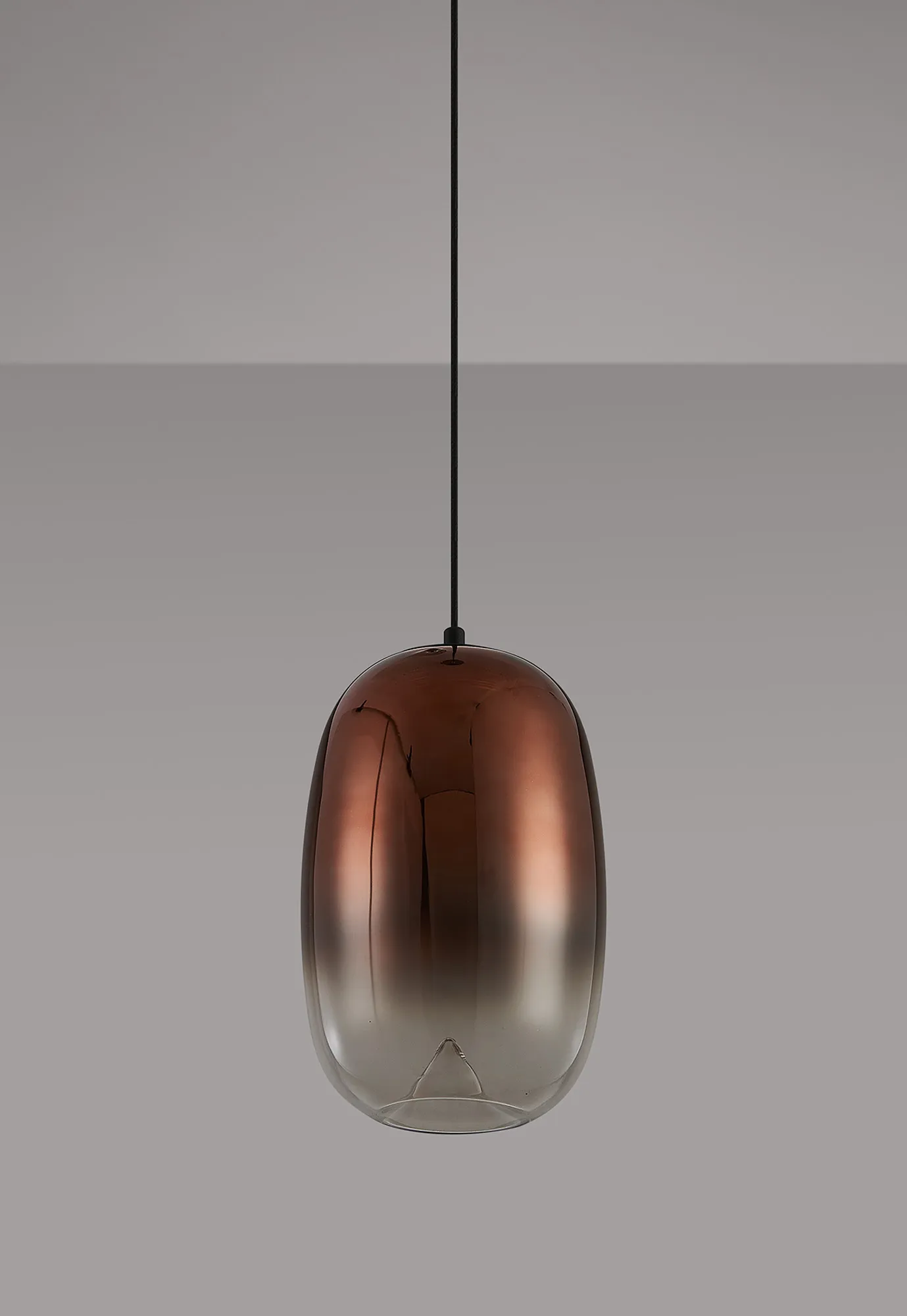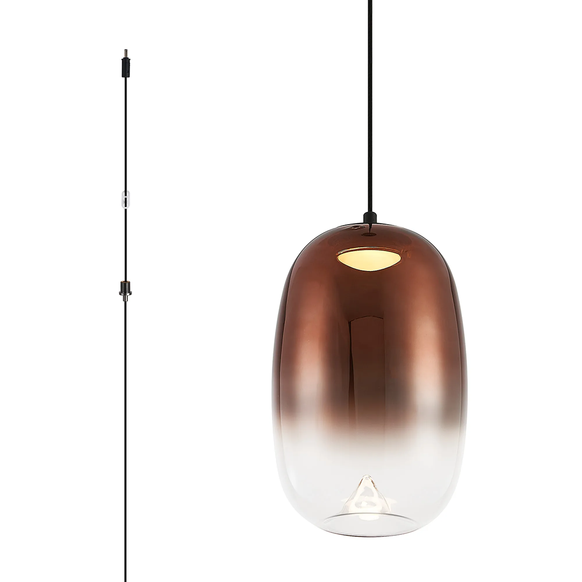 Paris Style AG Satin Black/Copper Fade Oval Glass, 1 x 4W LED, 3000K, 730lm, 5m Assy Pendant With A DC Plug