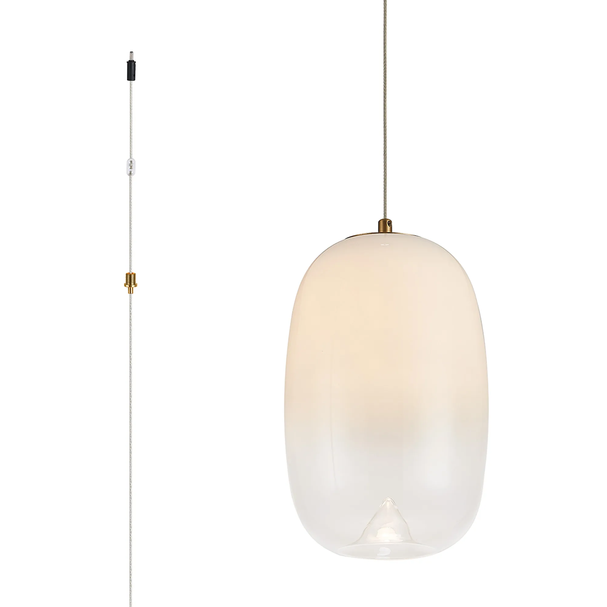 Paris Style AG Brass/White Fade Oval Glass, 1 x 4W LED, 3000K, 730lm, 5m Assy Pendant With A DC Plug