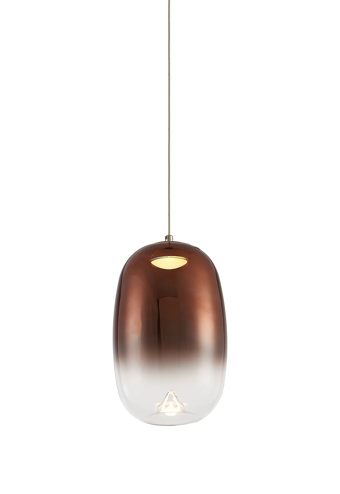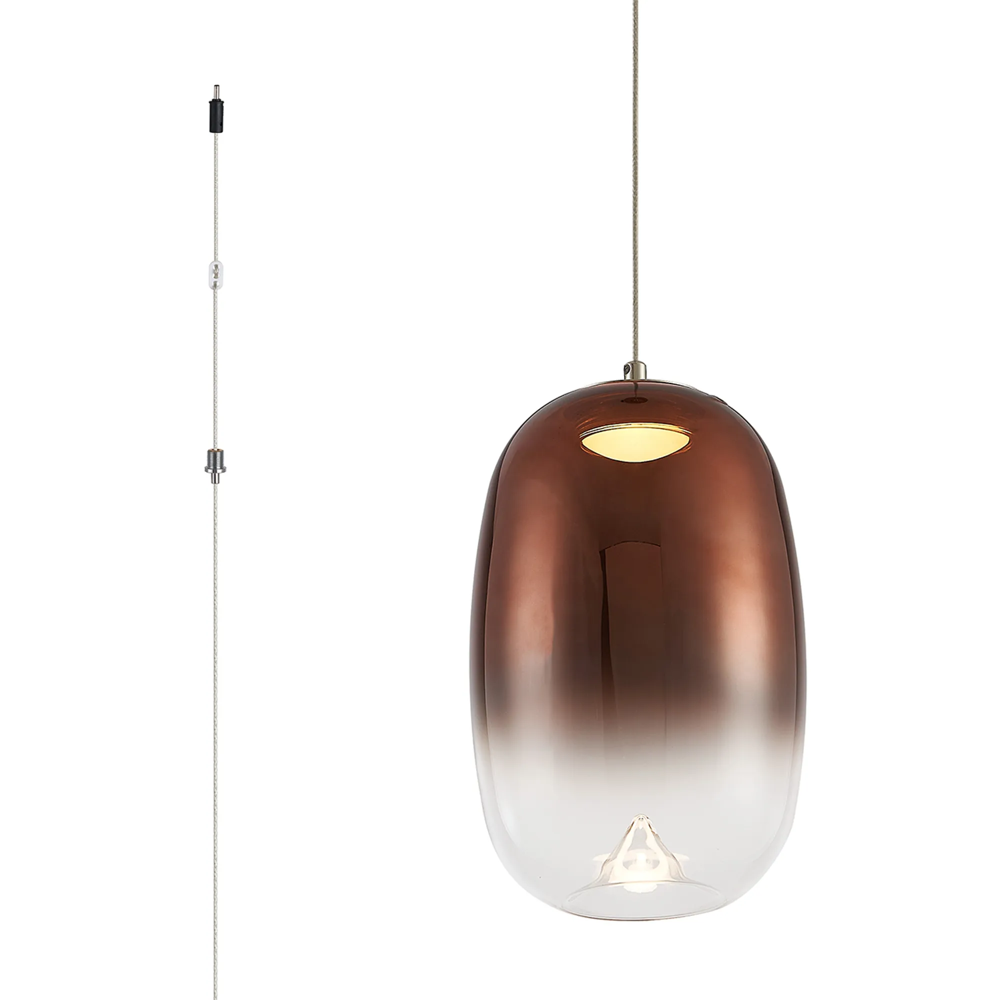 Paris Style AG Polished Nickel/Copper Fade Oval Glass, 4W LED, 3000K, 730lm, 5m Assy Pendant With A DC Plug