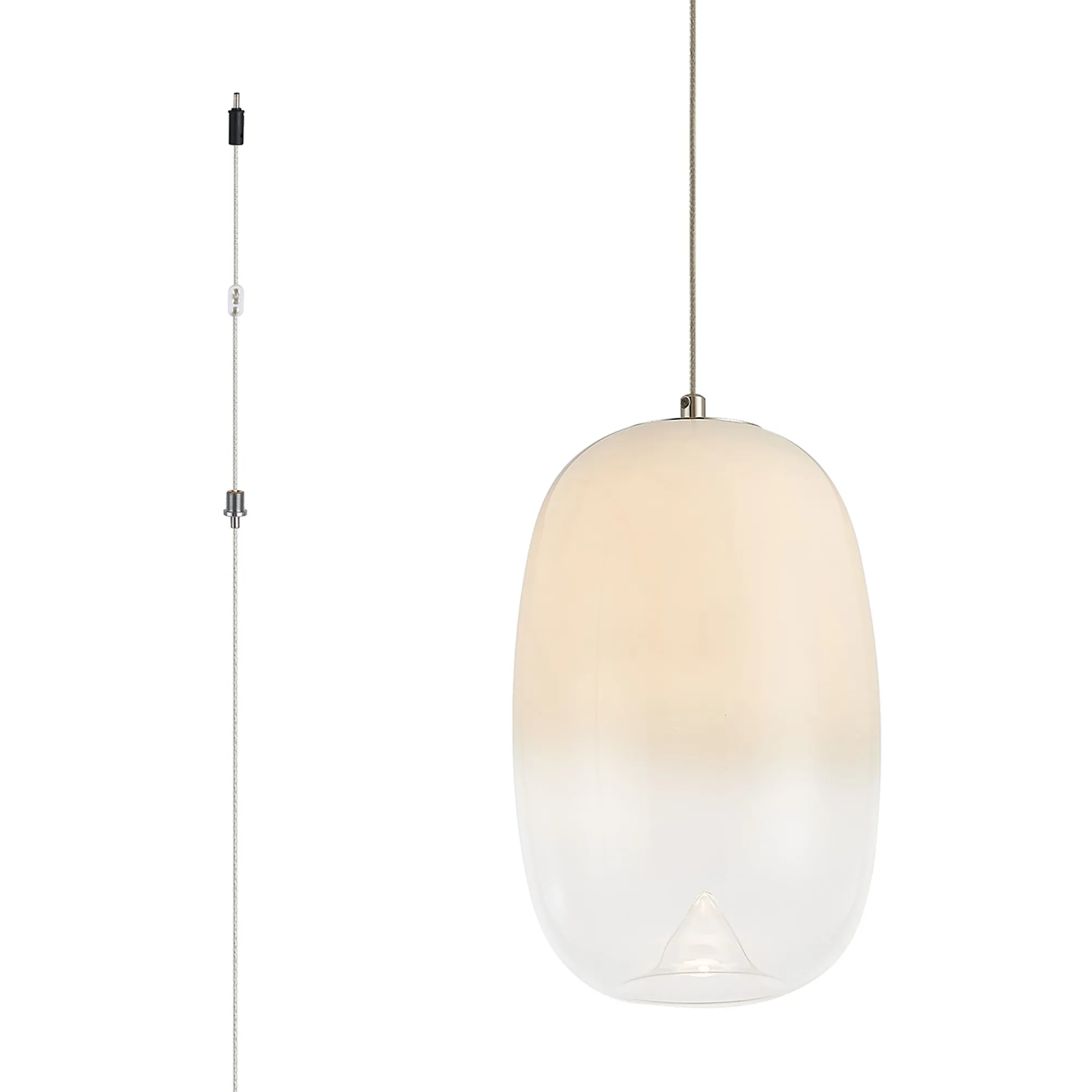 Paris Style AG Polished Nickel/White Fade Oval Glass, 4W LED, 3000K, 730lm, 5m Assy Pendant With A DC Plug