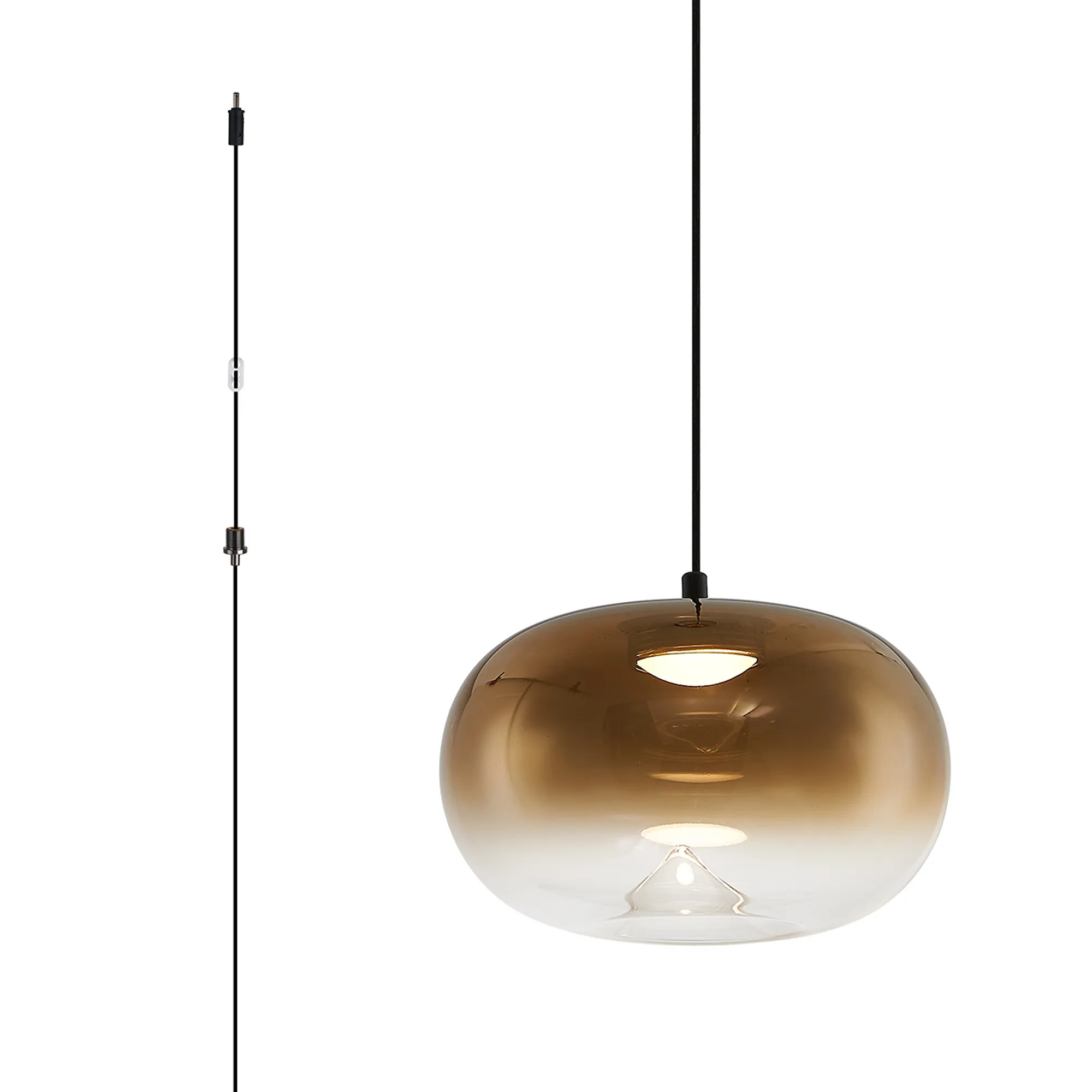 Paris Style AG Satin Black/Gold Fade Ellipse Glass, 1 x 4W LED, 3000K, 730lm, 5m Assembly Pendant With A DC Plug