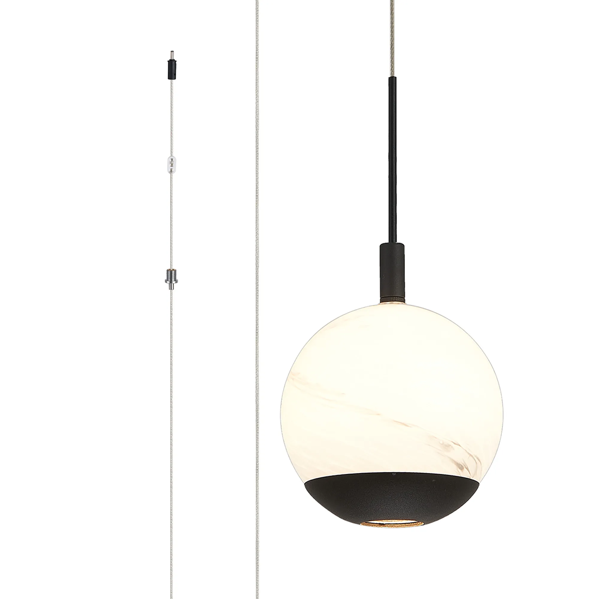 Paris Style AK, Satin Black/Marble Effect, 10W LED, 3000K, 600lm, 5m Assembly Pendant With A DC Plug