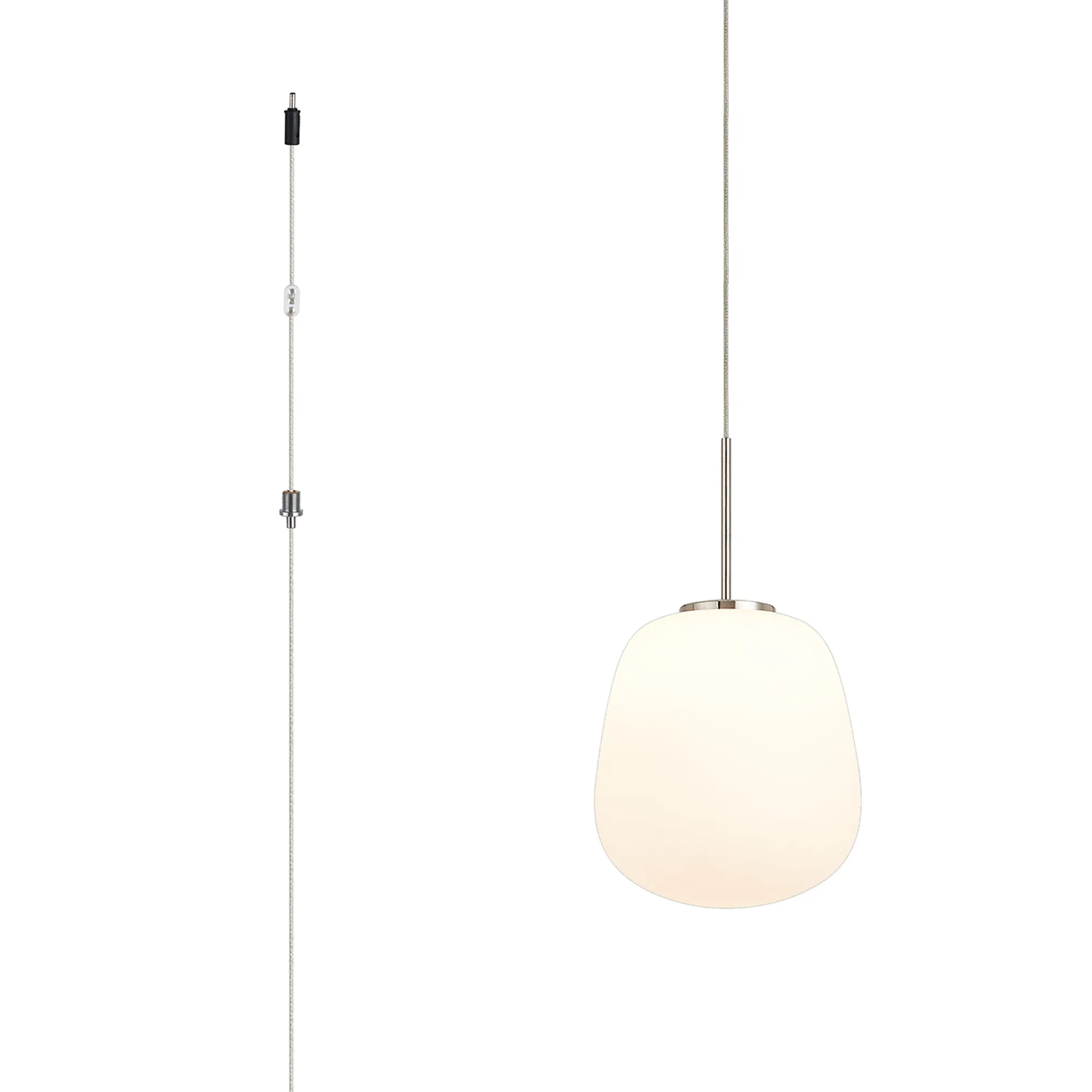 Paris Style AN Polished Nickel/White Trapezium Glass, 1 x 5W LED, 3000K, 550lm, 5m Assembly Pendant With A DC Plug