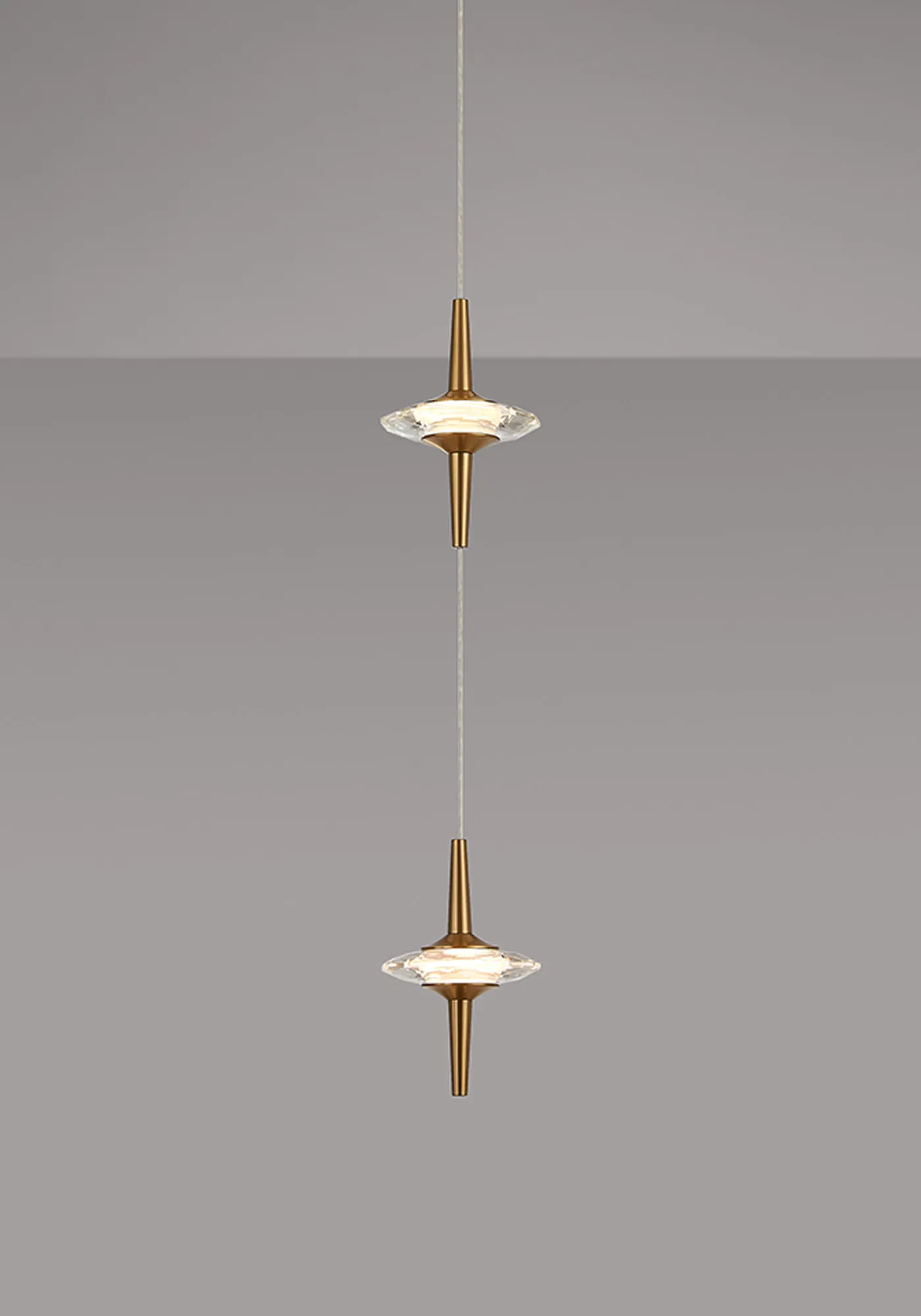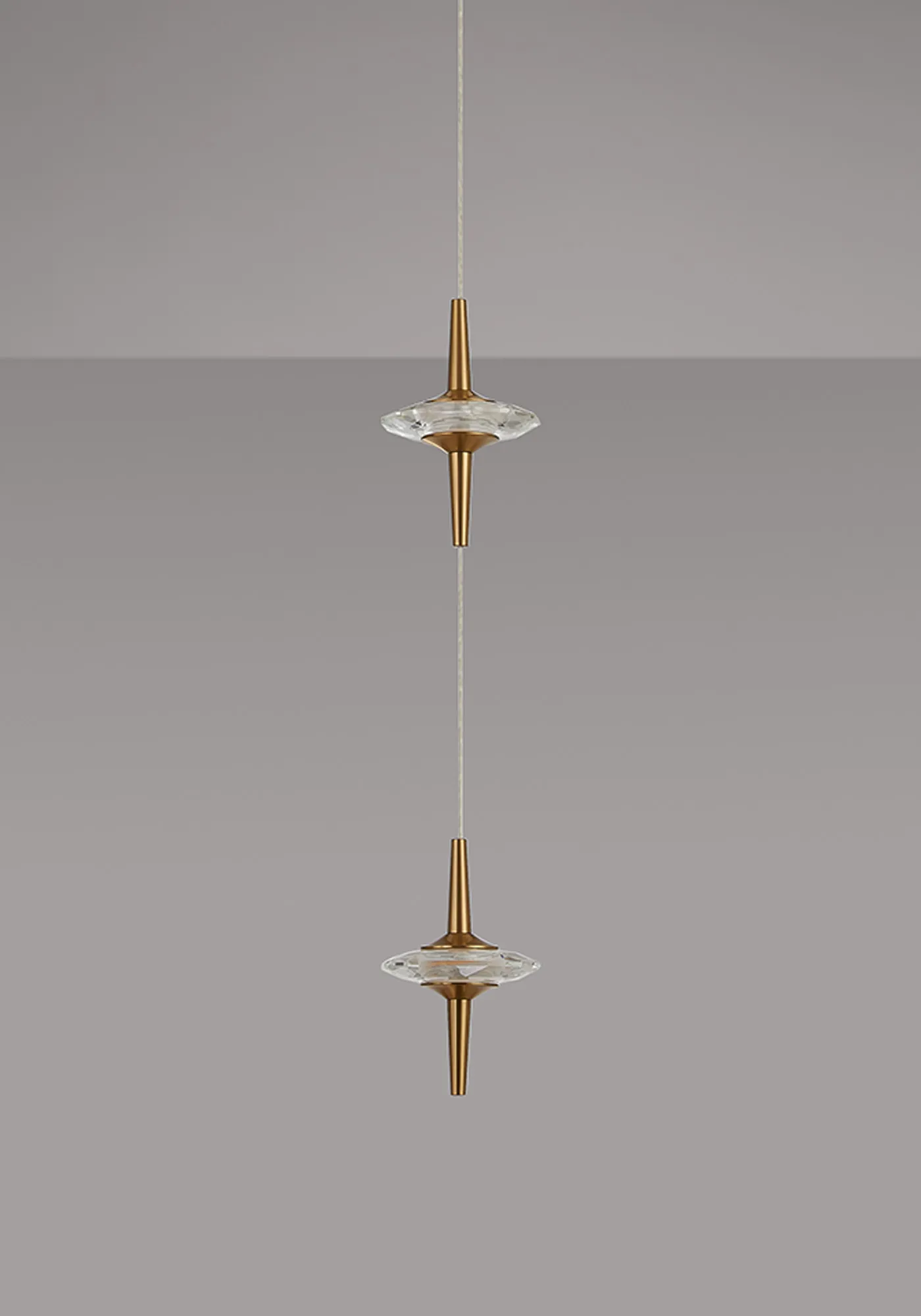 Paris Style AO Brass/2 x Clear Inline LED Modules, 2 x 5W LED, 3000K, 500lm, 5m Assembly Pendant With A DC Plug