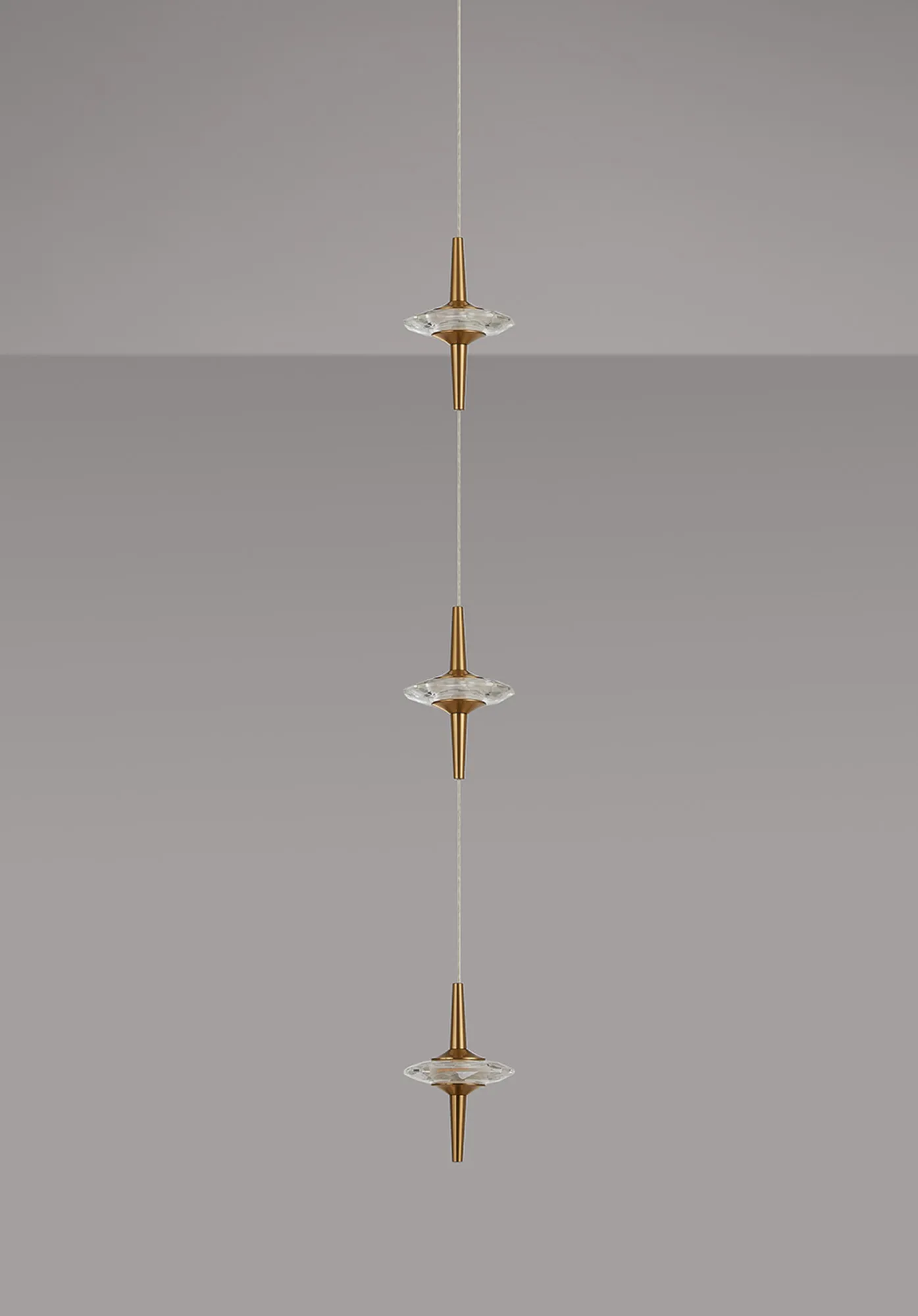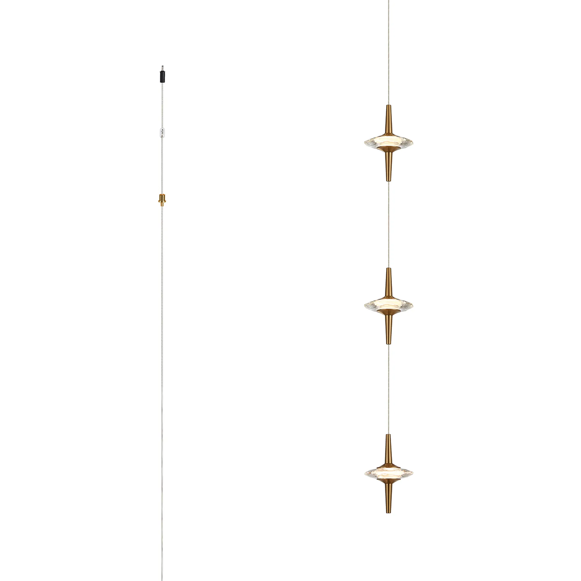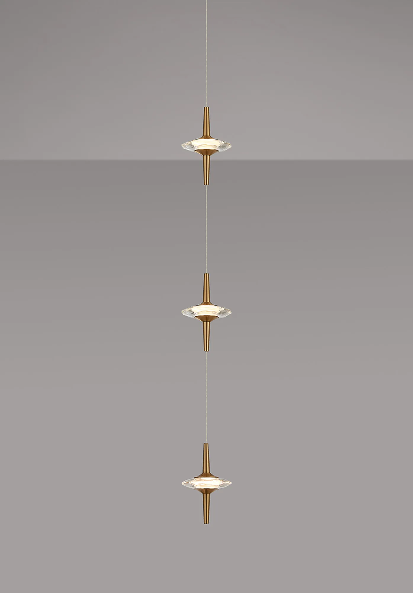 Paris Style AO Brass/3 x Clear Inline LED Modules, 3 x 5W LED, 3000K, 750lm, 5m Assembly Pendant With A DC Plug