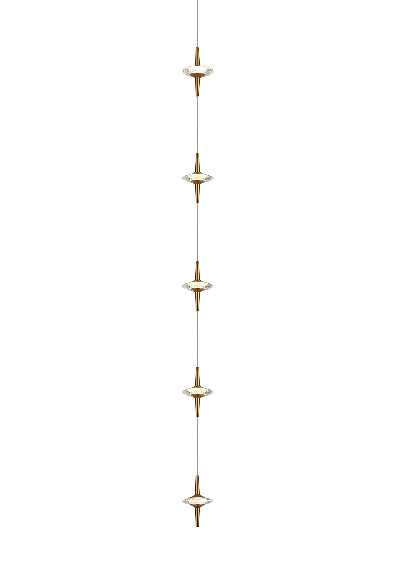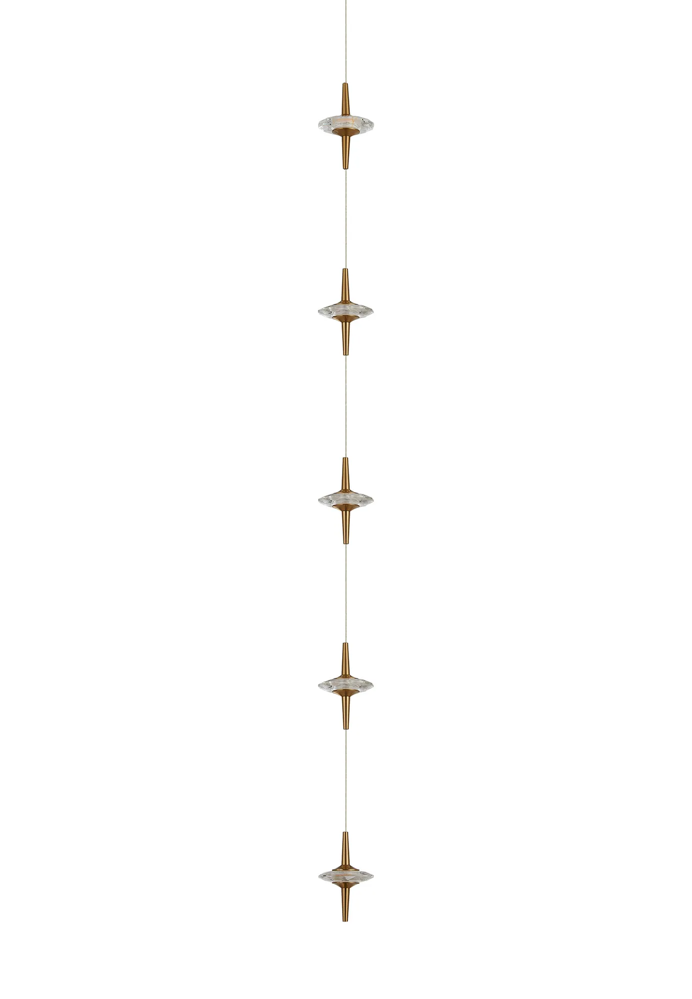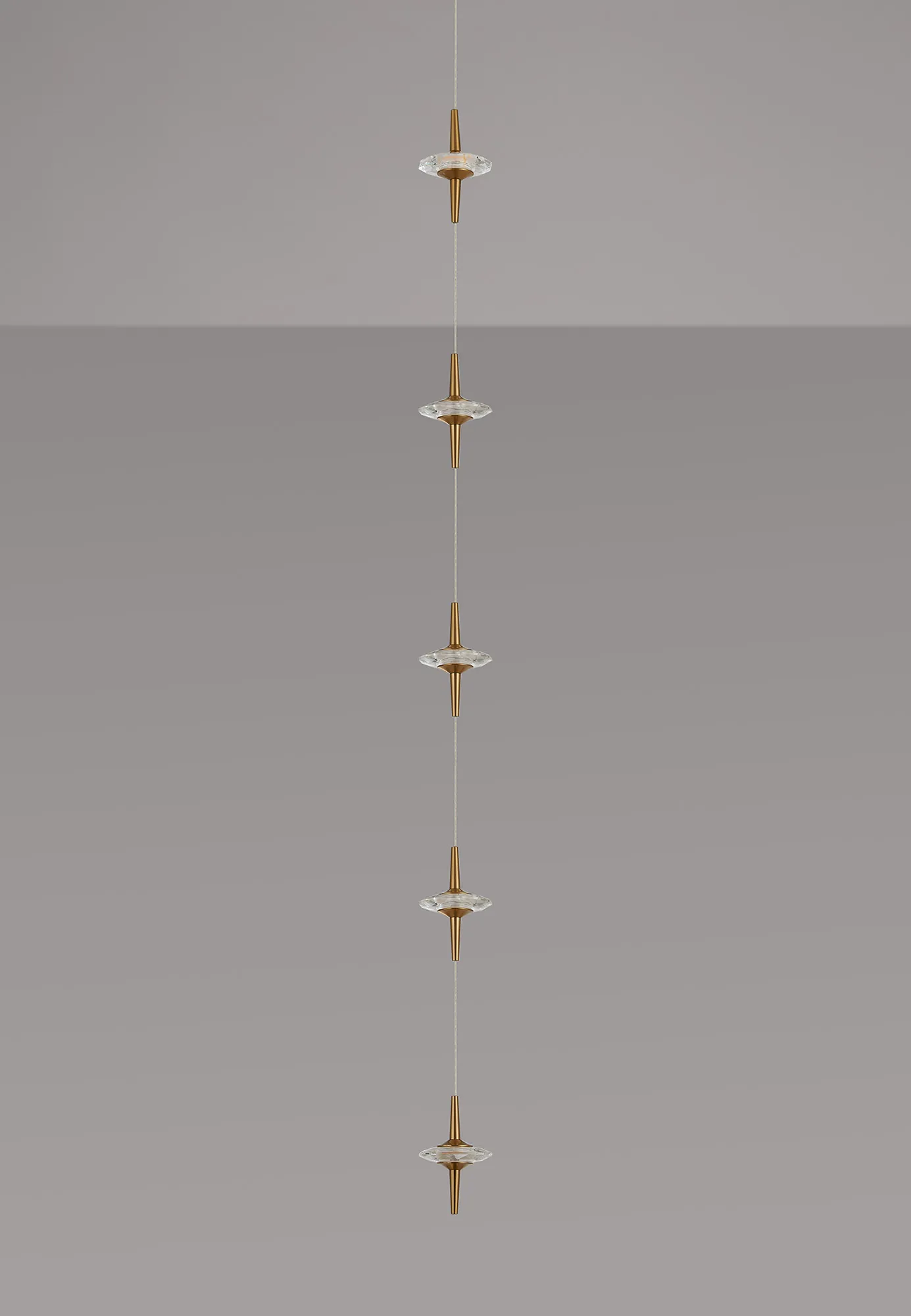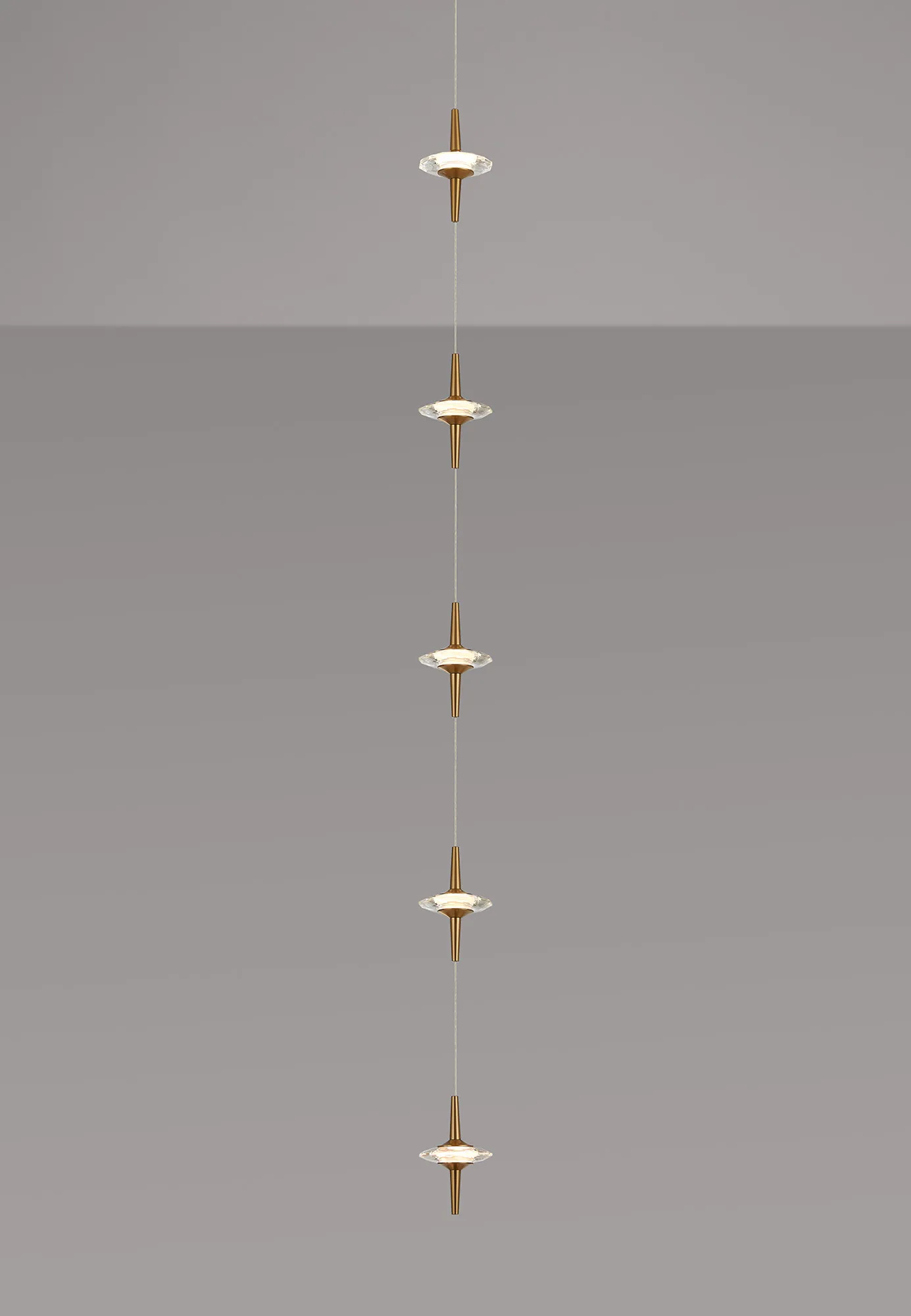 Paris Style AO Brass/5 x Clear Inline LED Modules, 5 x 5W LED, 3000K, 1250lm, 5m Assembly Pendant With A DC Plug