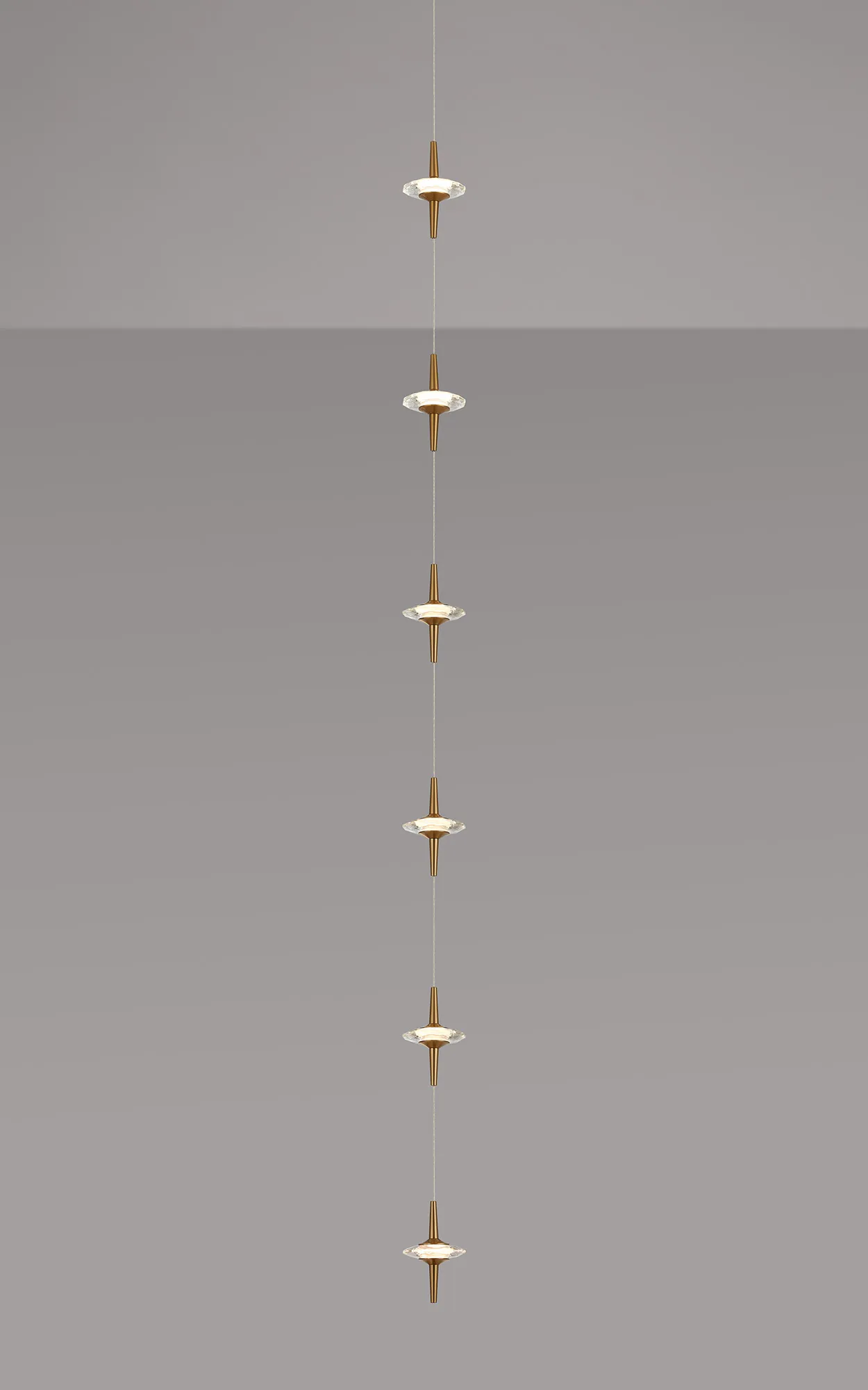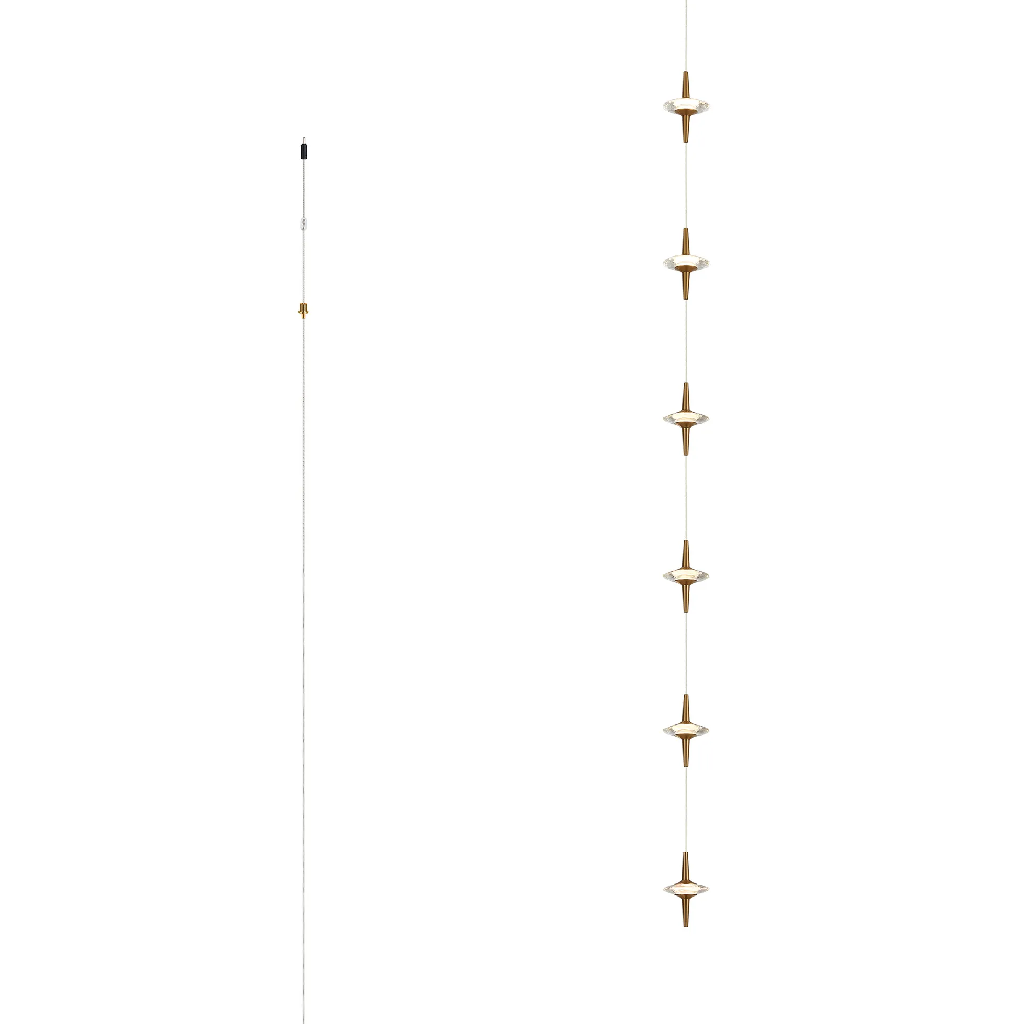 Paris Style AO Brass/6 x Clear Inline LED Modules, 6 x 5W LED, 3000K, 1500lm, 5m Assembly Pendant With A DC Plug