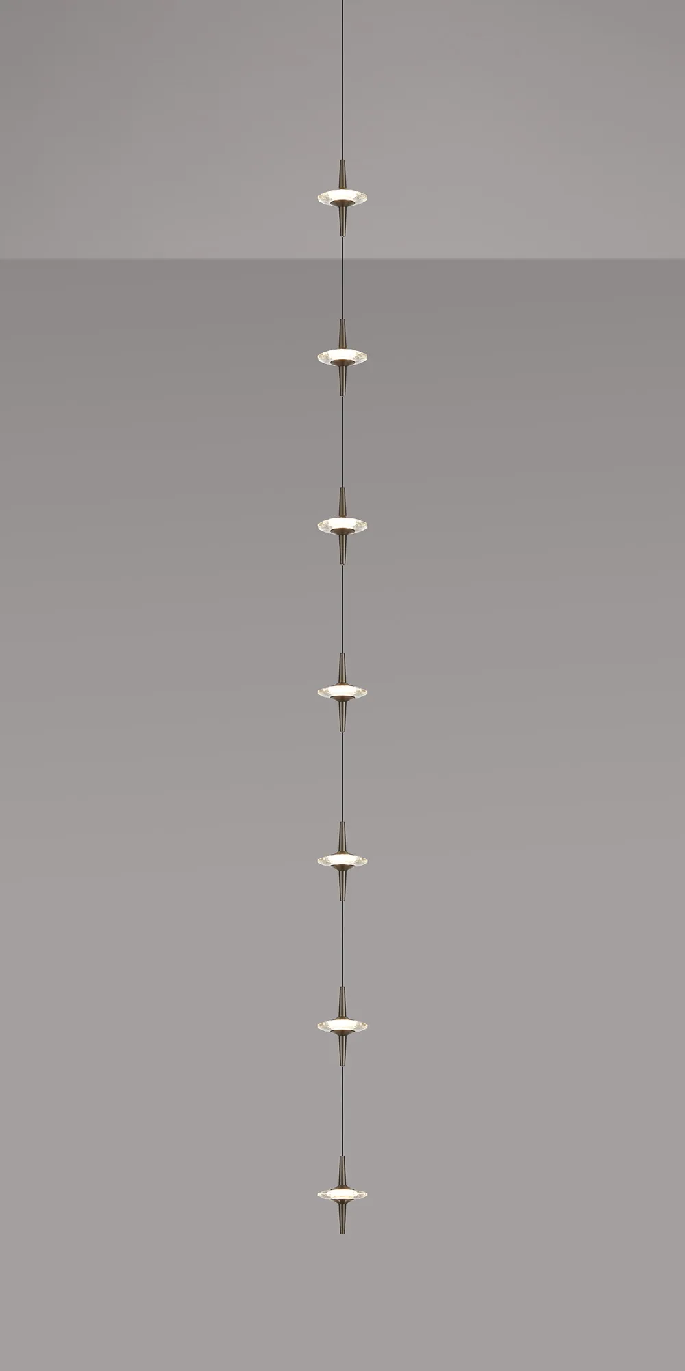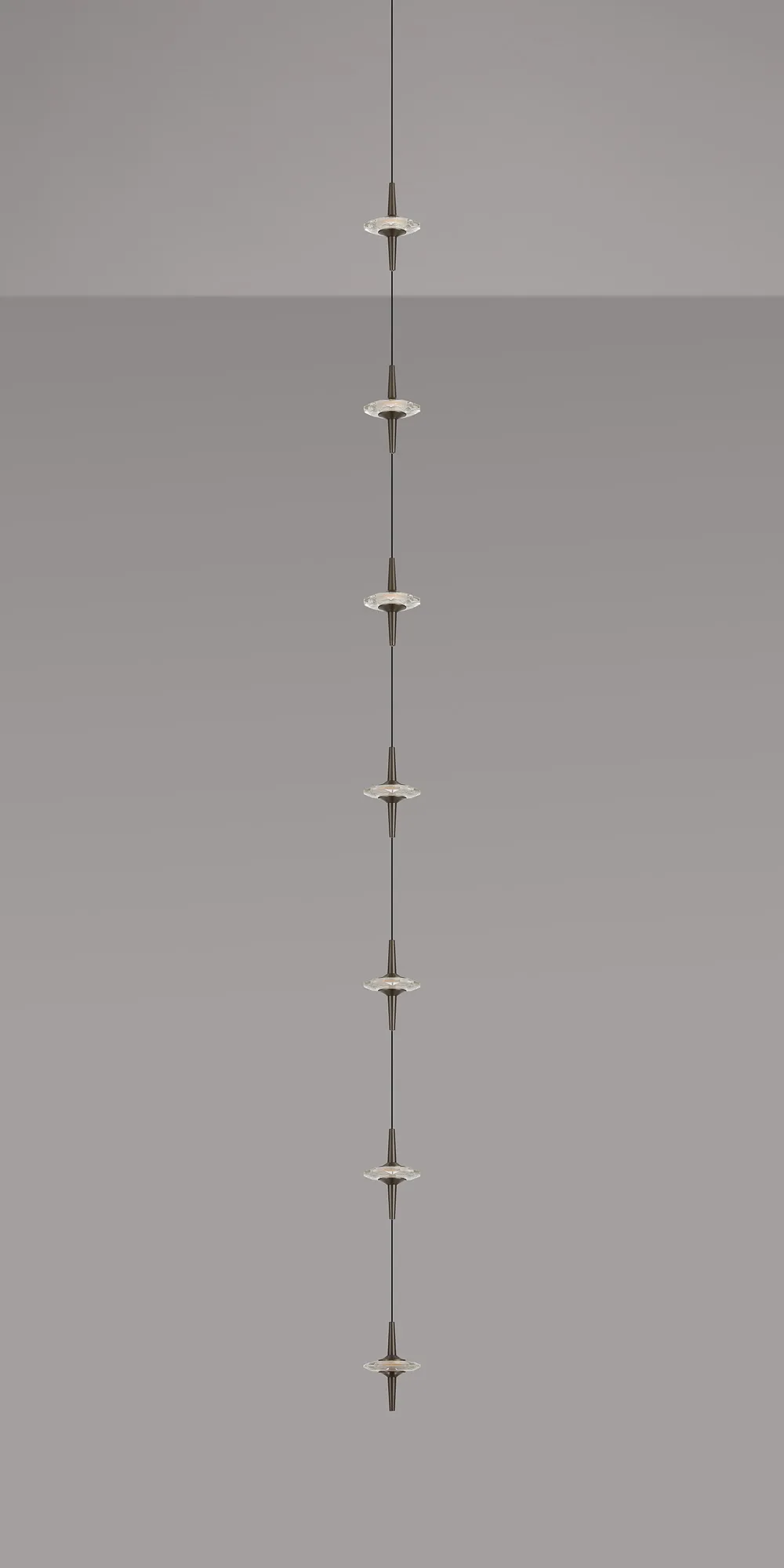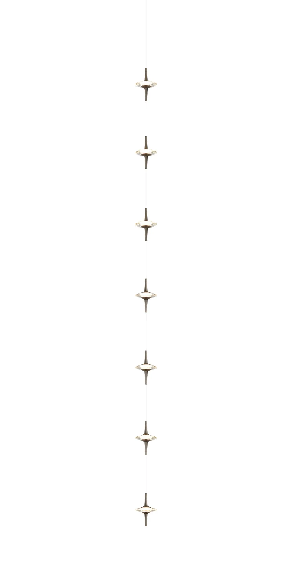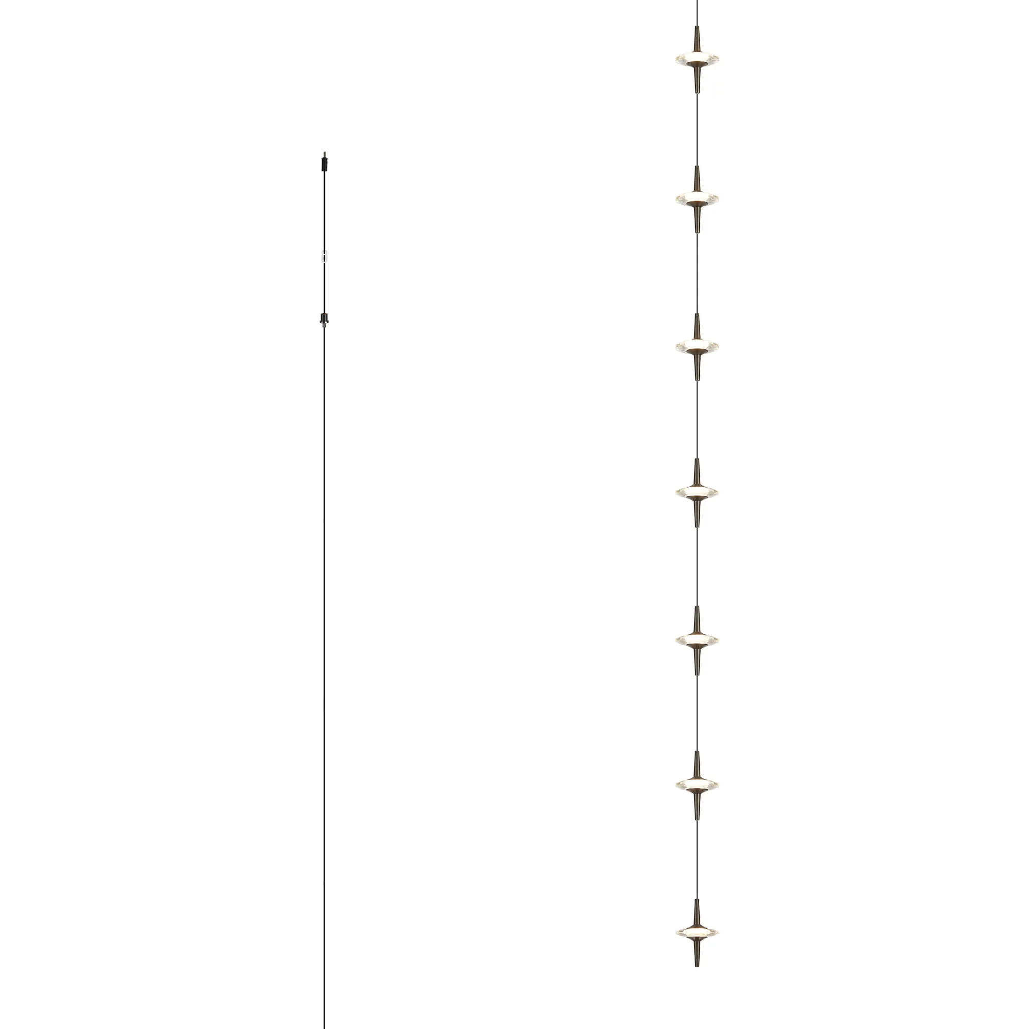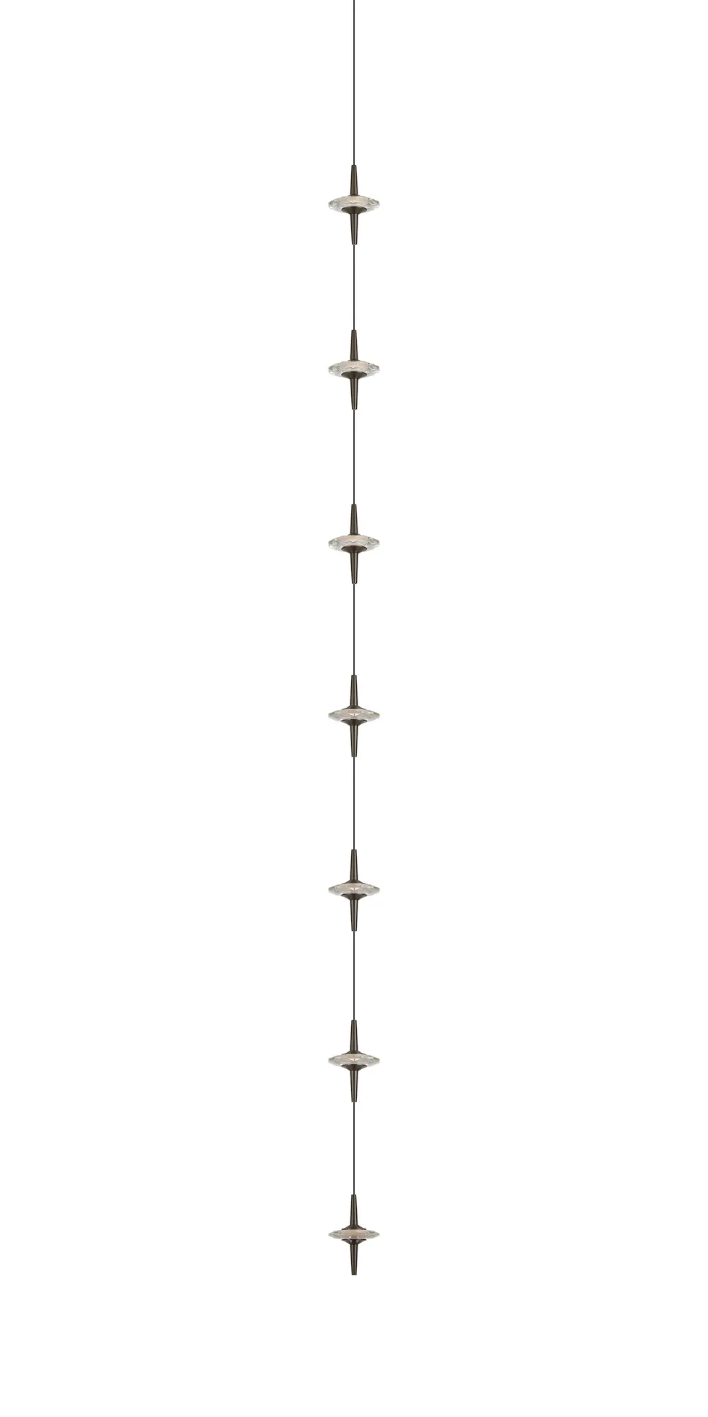 Paris Style AO Gunmetal/7 x Clear Inline LED Modules/Black Cable, 7 x 5W LED, 3000K, 1750lm, 5m Assembly Pendant With A DC Plug
