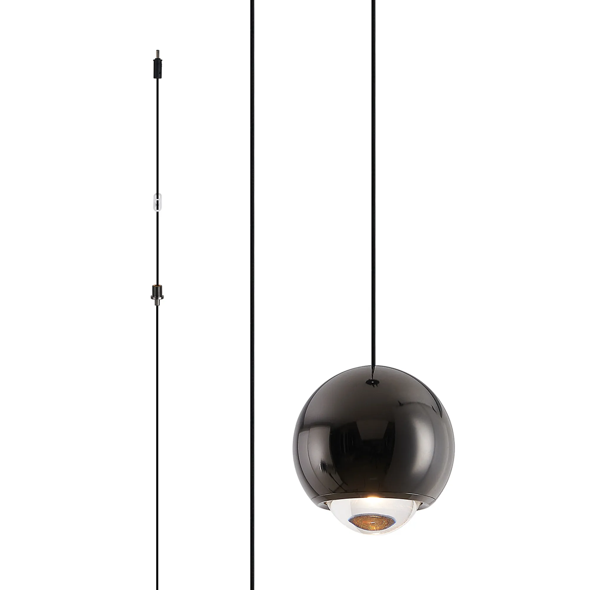 Paris Style AQ, Black Chrome/Clear 100mm Globe, 7W LED, 3000K, 400lm, 5m Assembly Pendant With A DC Plug