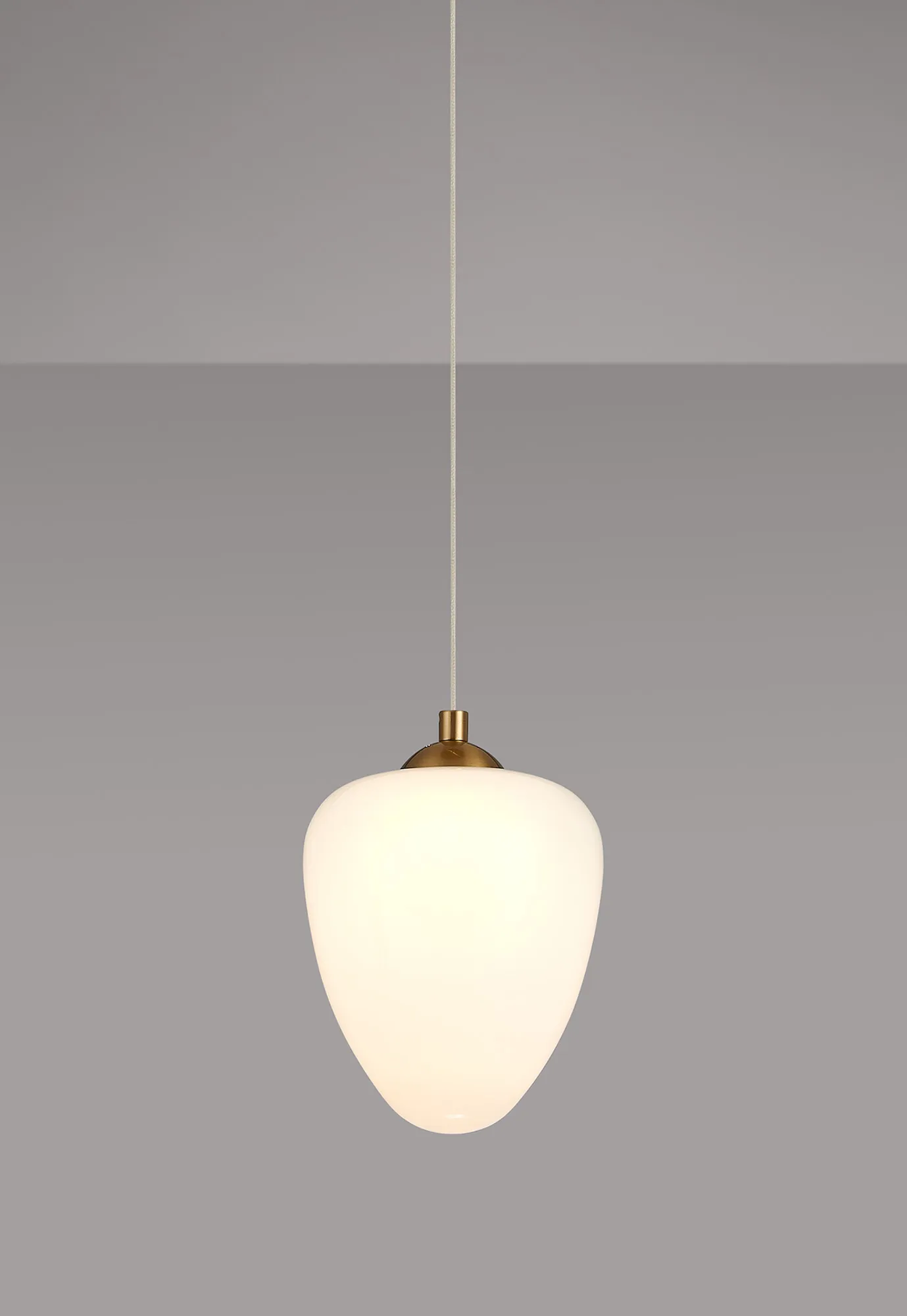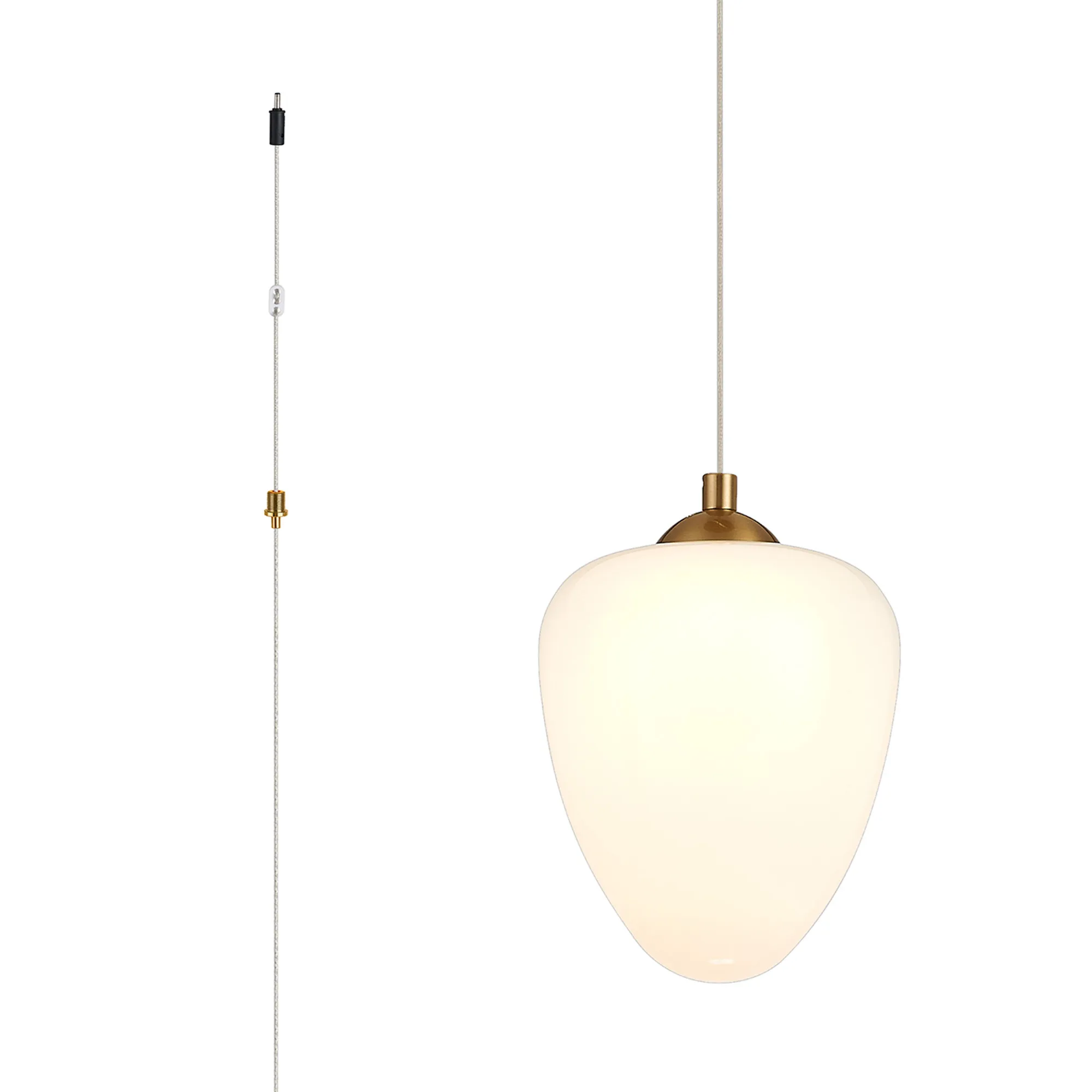 Paris Style AR Brass/White Acorn Glass, 1 x 5W LED, 3000K, 700lm, 2.5m Assembly Pendant With A DC Plug