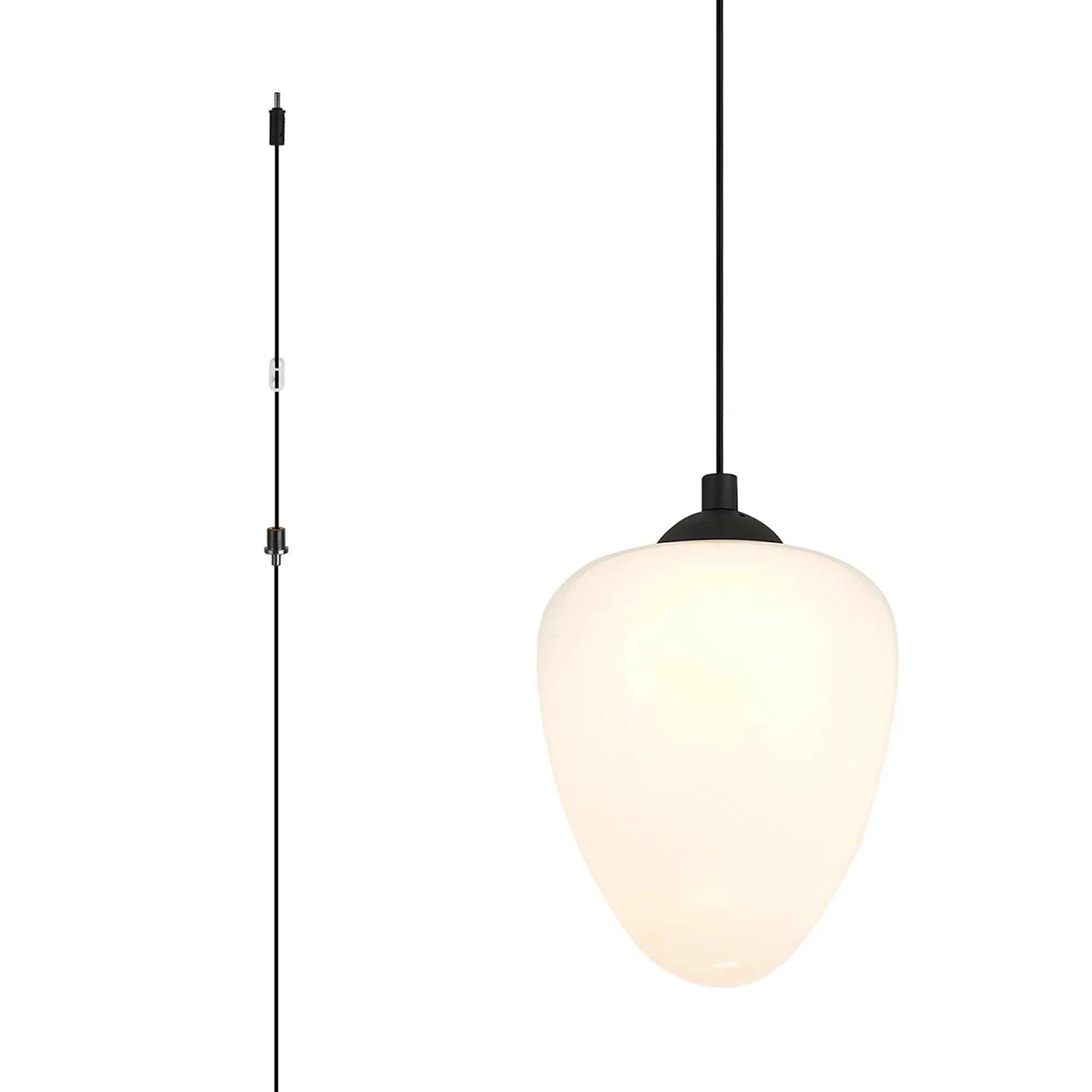 Paris Style AR Satin Black/White Acorn Glass, 1 x 5W LED, 3000K, 700lm, 2.5m Assembly Pendant With A DC Plug
