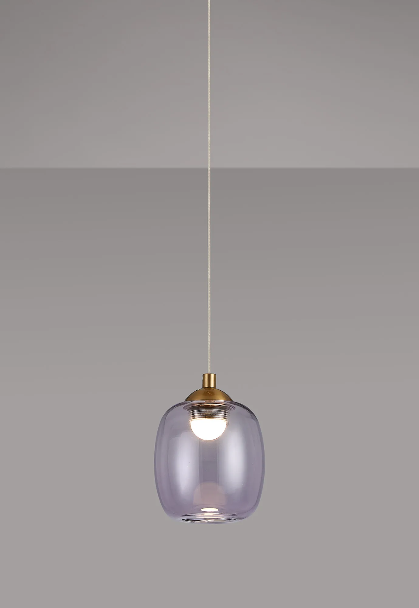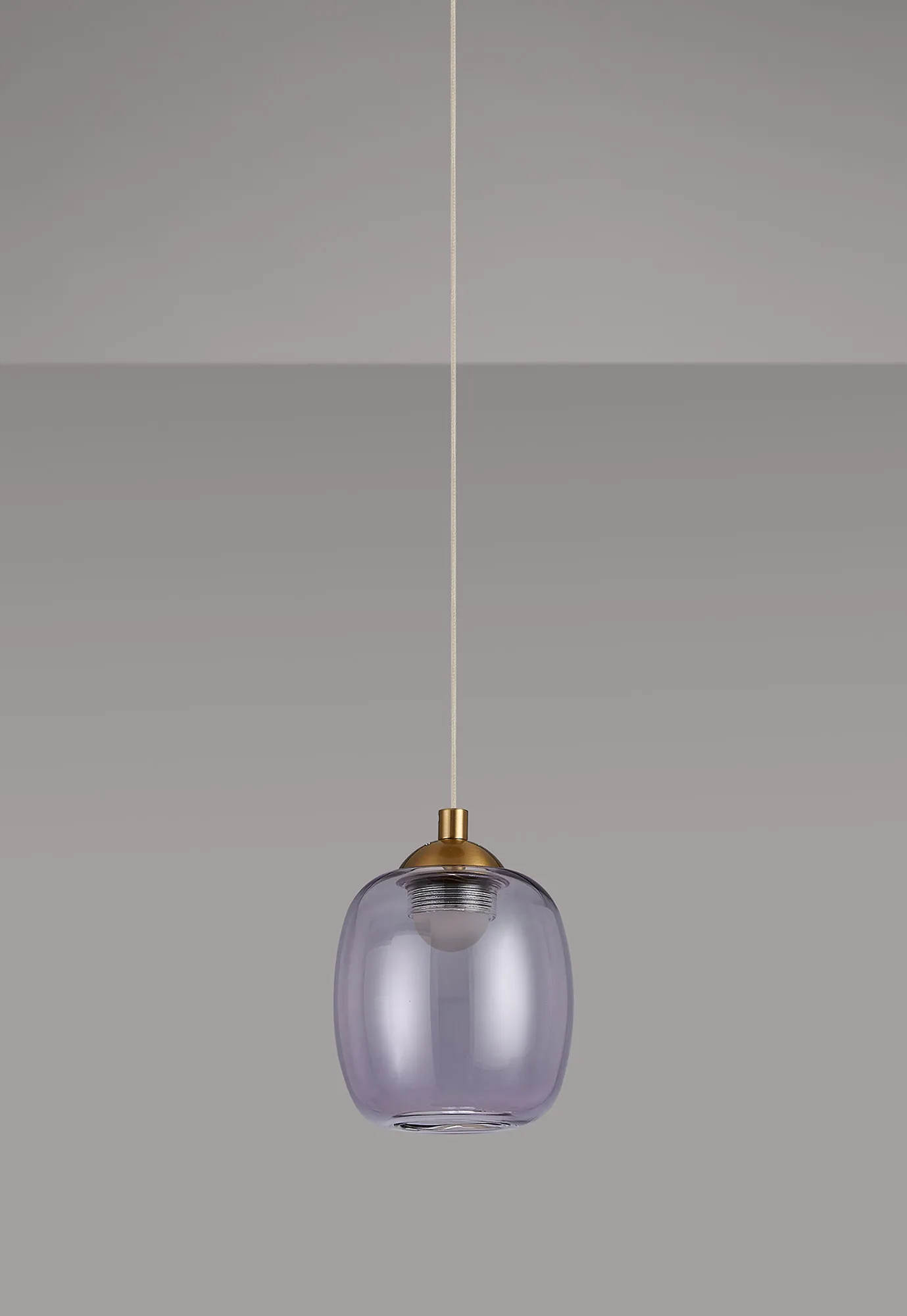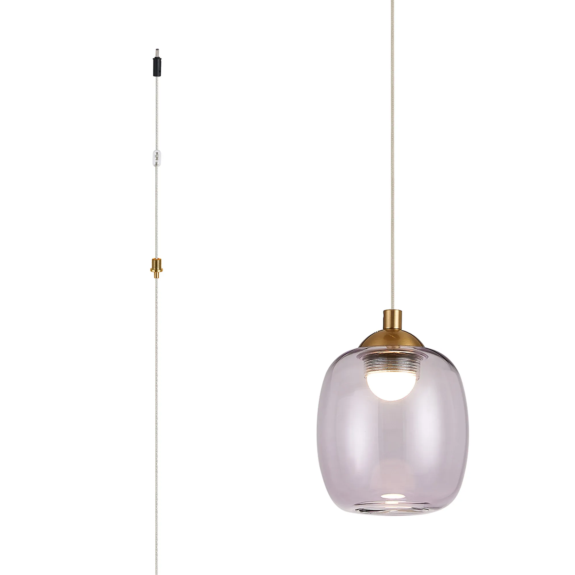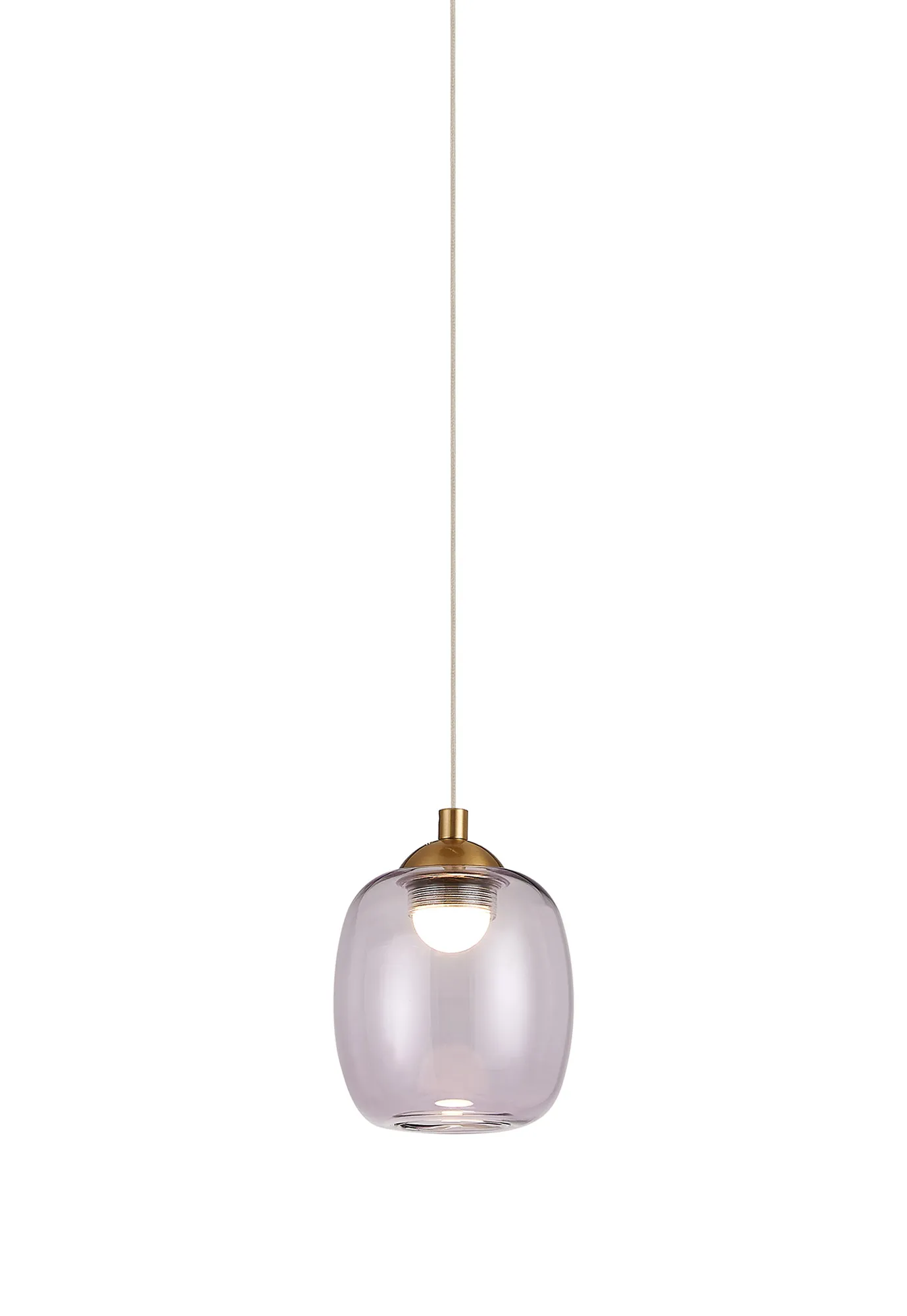 Paris Style AR Brass/Lilac Squircle Glass, 1 x 5W LED, 3000K, 700lm, 5m Assembly Pendant With A DC Plug