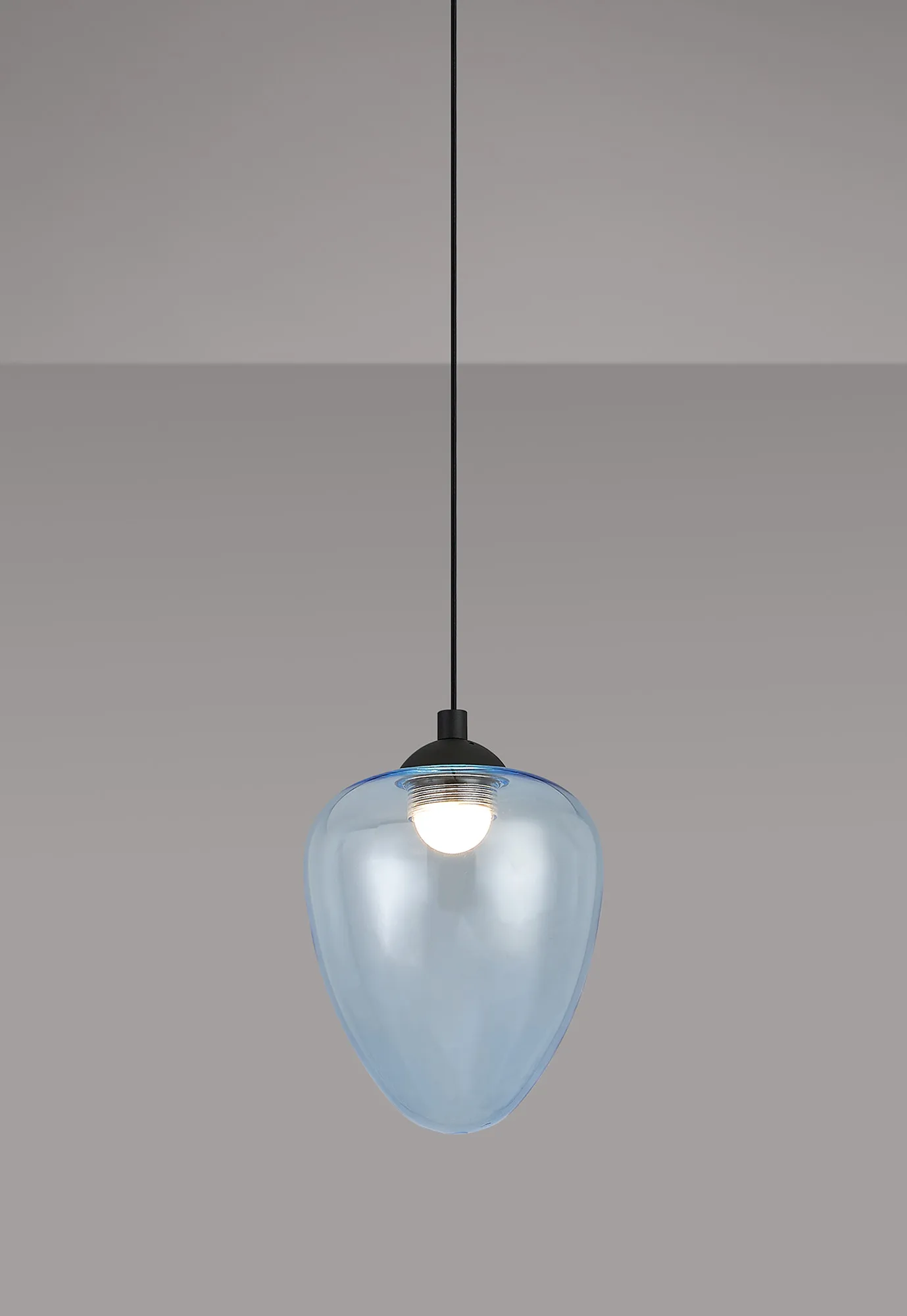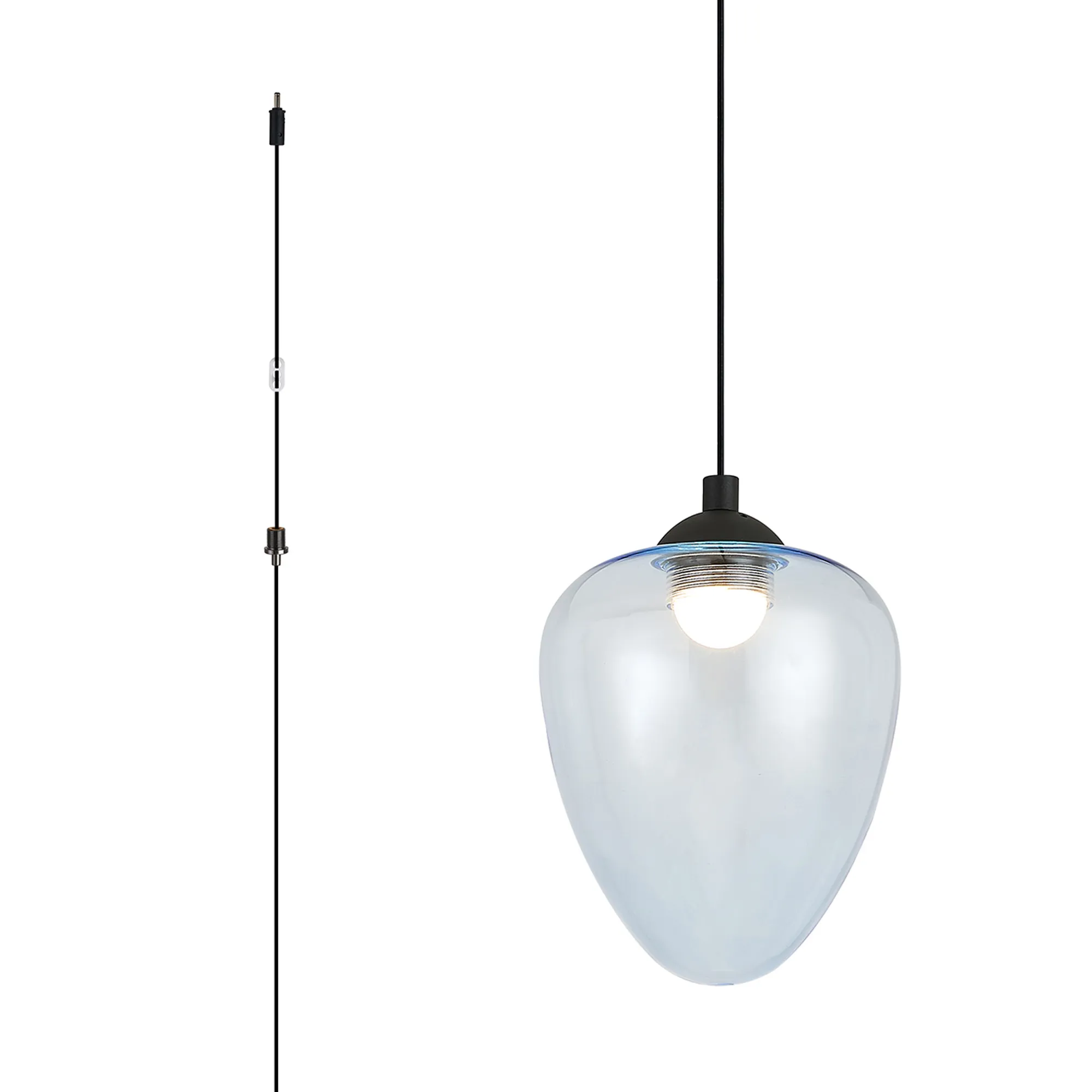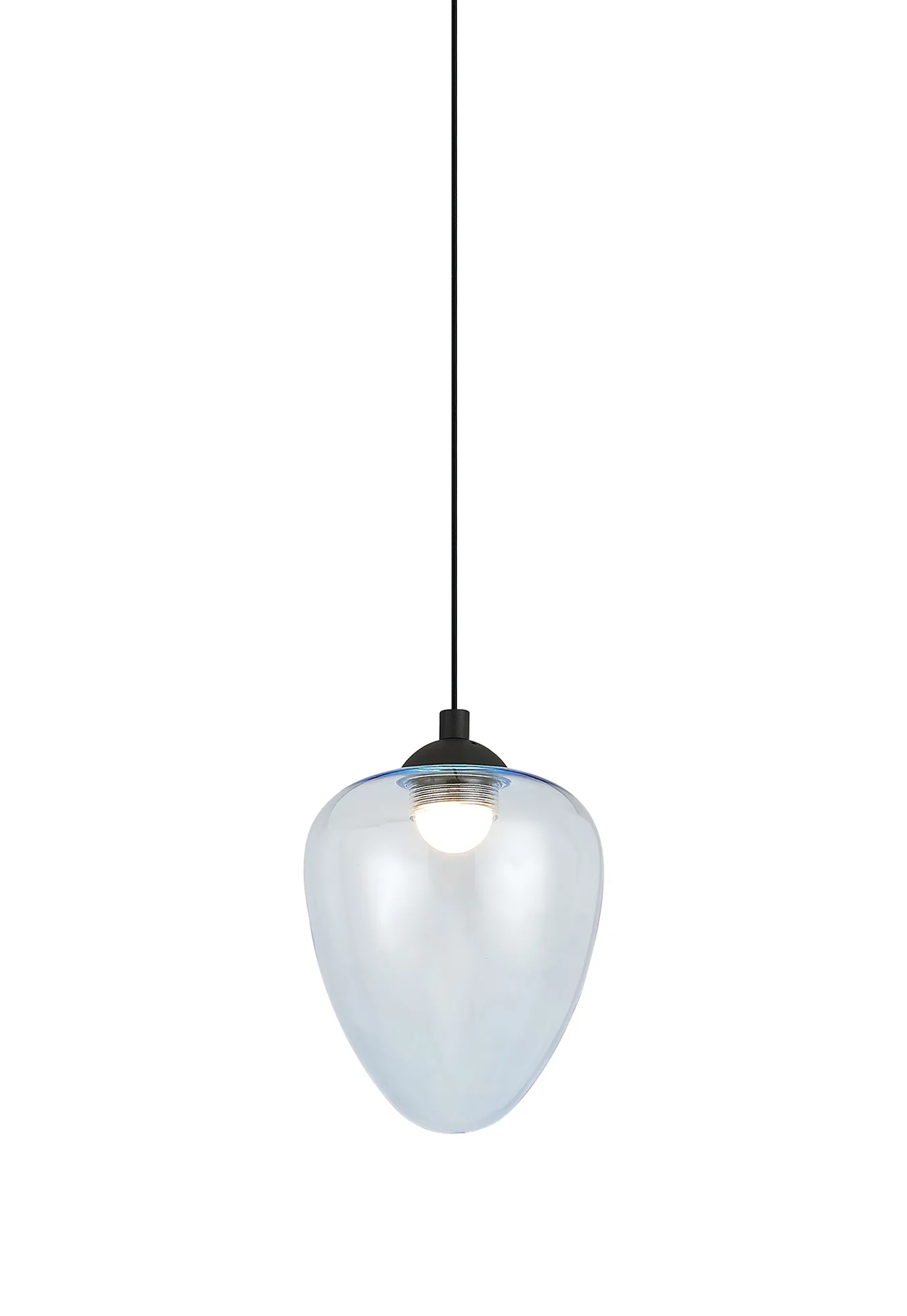 Paris Style AR Satin Black/Light Blue Acorn Glass, 1 x 5W LED, 3000K, 700lm, 5m Assembly Pendant With A DC Plug
