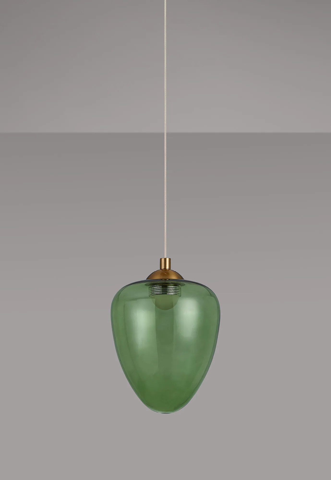 Paris Style AR Brass/Light Green Acorn Glass, 1 x 5W LED, 3000K, 700lm, 5m Assembly Pendant With A DC Plug