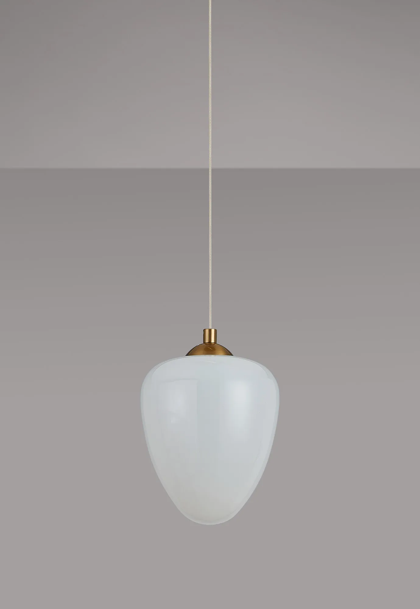Paris Style AR Brass/White Acorn Glass, 1 x 5W LED, 3000K, 700lm, 5m Assembly Pendant With A DC Plug