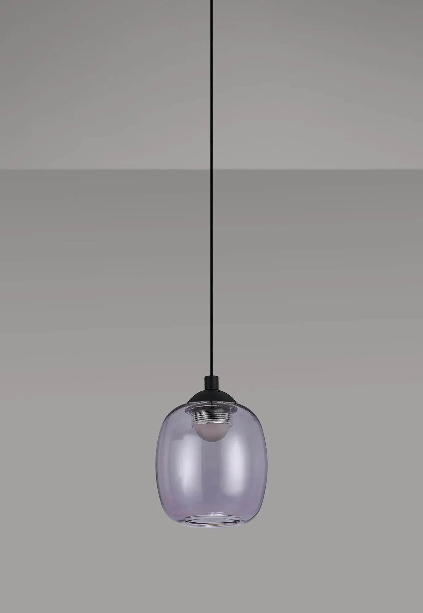 Paris Style AR Satin Black/Lilac Squircle Glass, 1 x 5W LED, 3000K, 700lm, 2.5m Assembly Pendant With A DC Plug