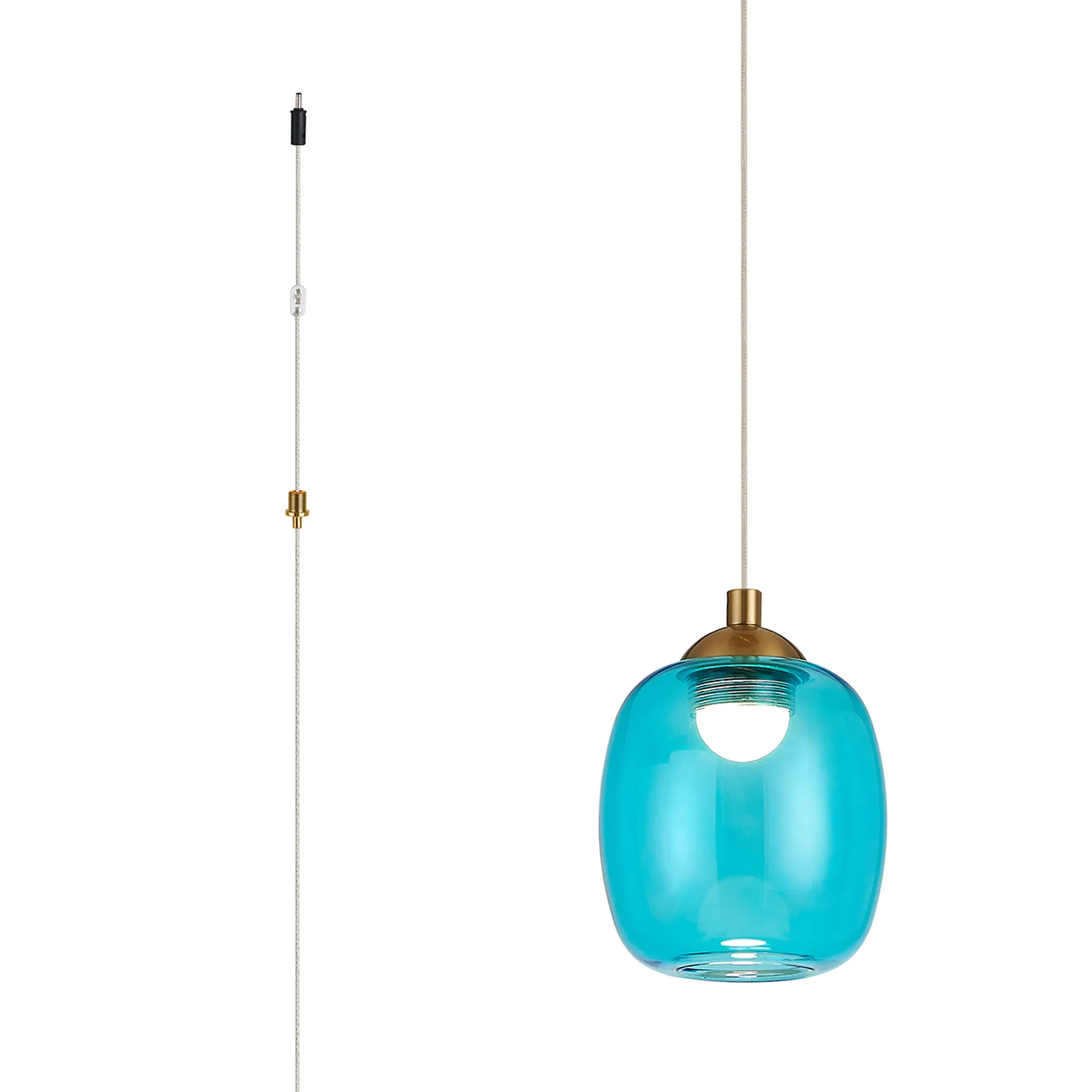 Paris Style AR Brass/Blue Squircle Glass, 1 x 5W LED, 3000K, 700lm, 2.5m Assembly Pendant With A DC Plug