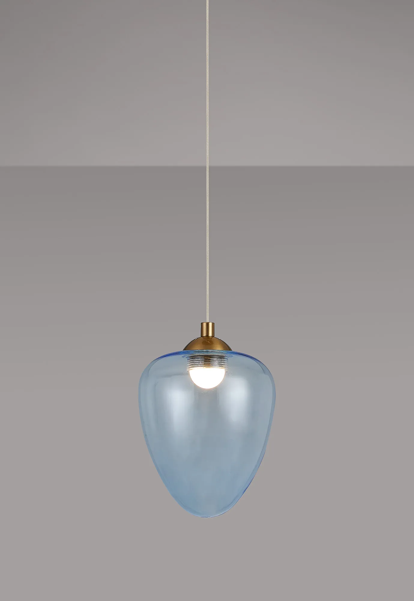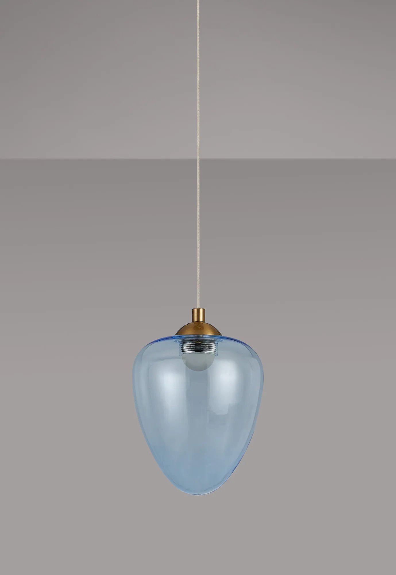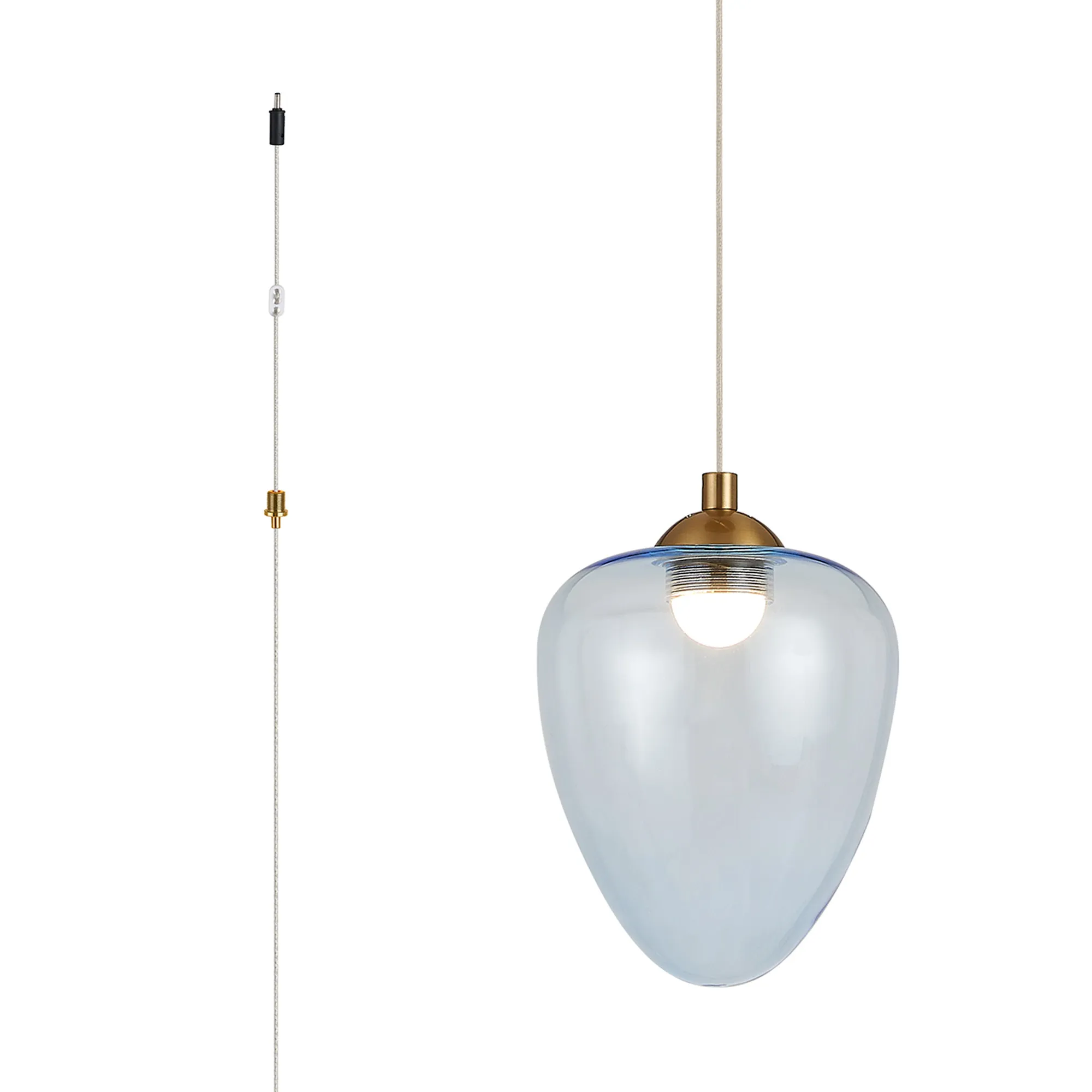 Paris Style AR Brass/Light Blue Acorn Glass, 1 x 5W LED, 3000K, 700lm, 2.5m Assembly Pendant With A DC Plug