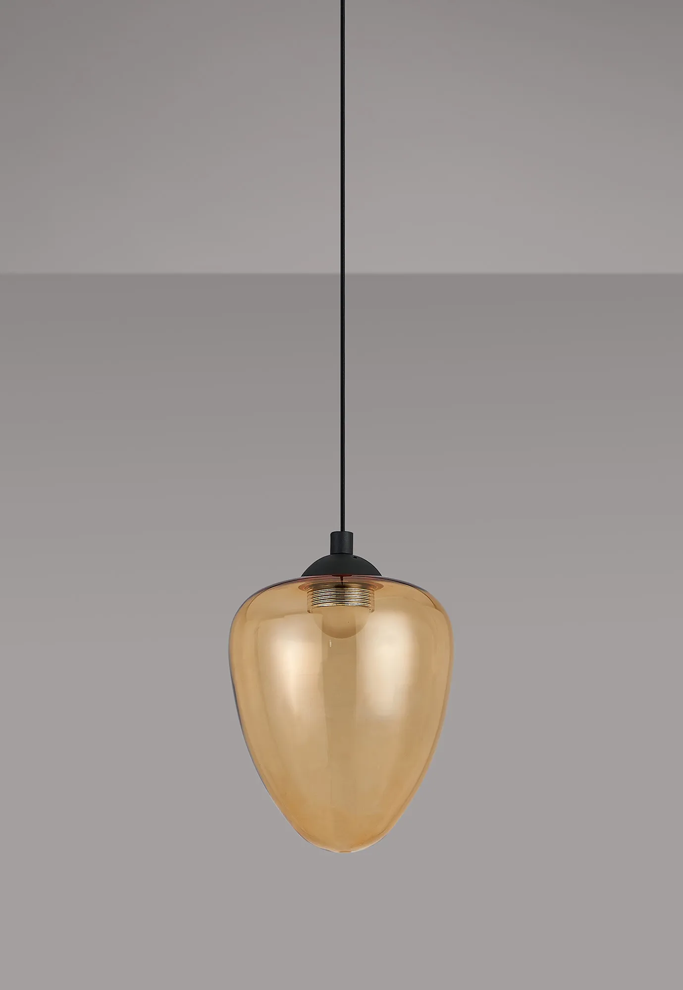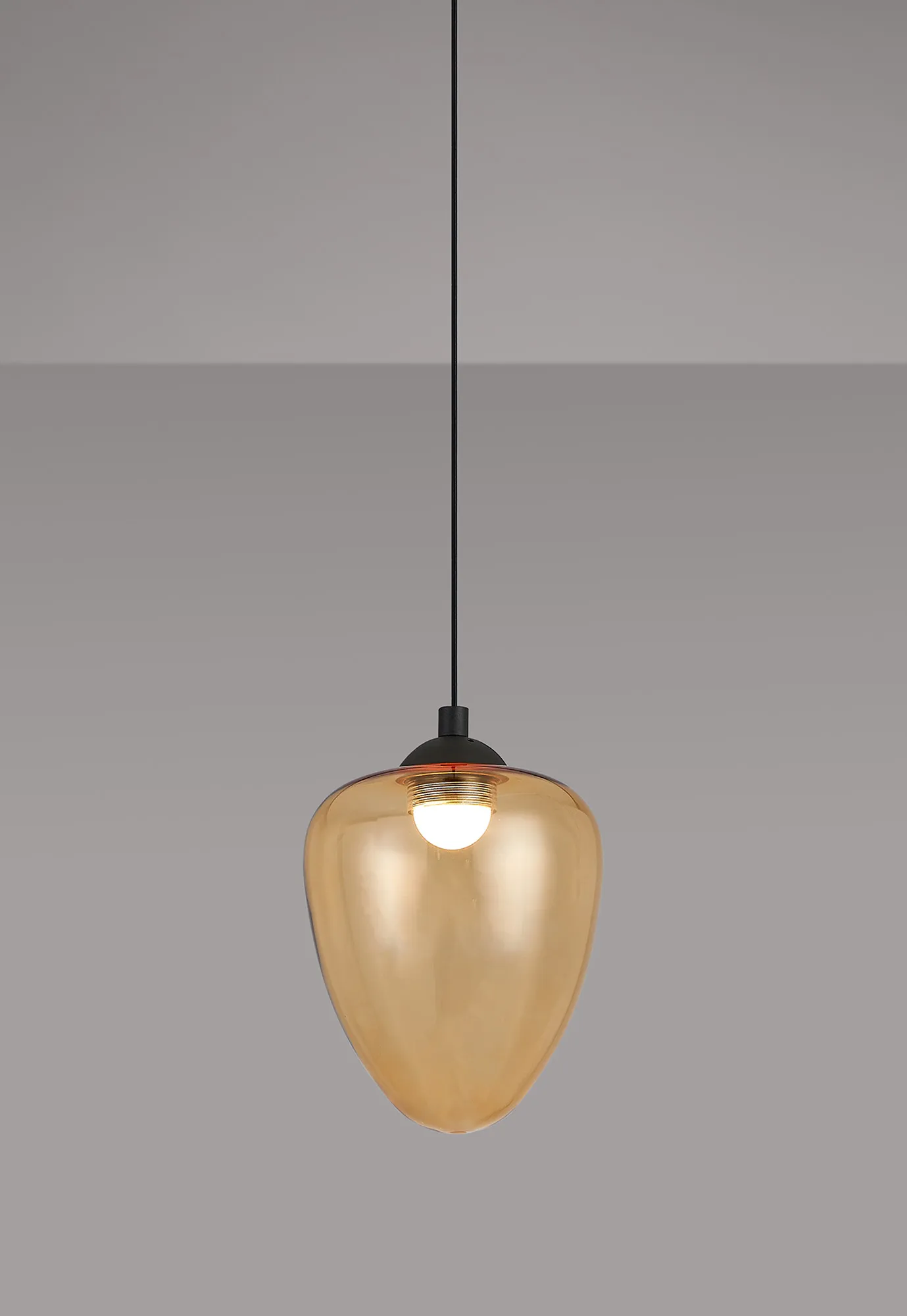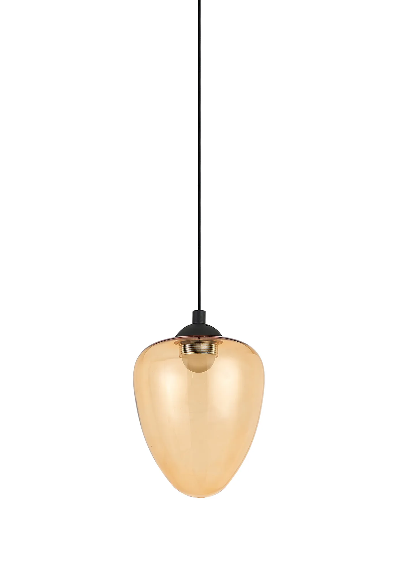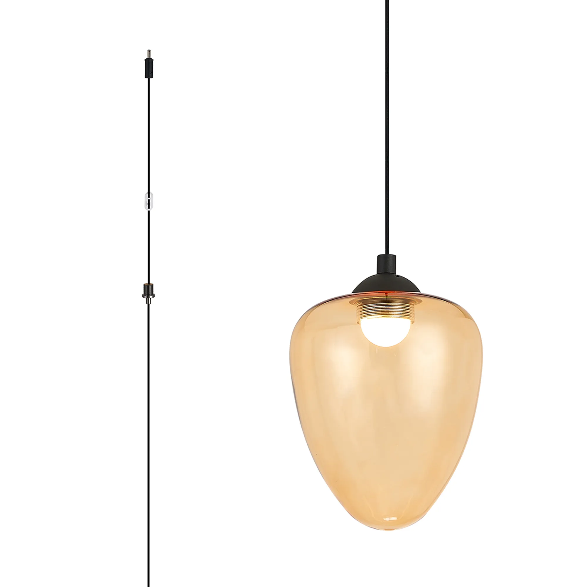 Paris Style AR Satin Black/Amber Acorn Glass, 1 x 5W LED, 3000K, 700lm, 2.5m Assembly Pendant With A DC Plug