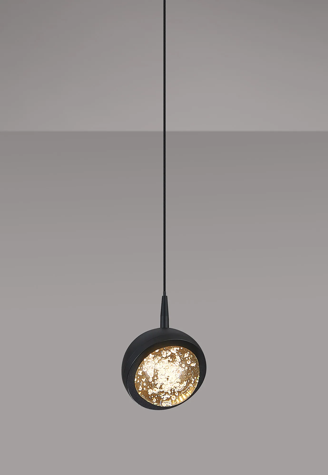 Paris Style AT, Satin Black/Clear Waning Moon, 6W LED, 3000K, 360lm, 2.5m Assembly Pendant With A DC Plug