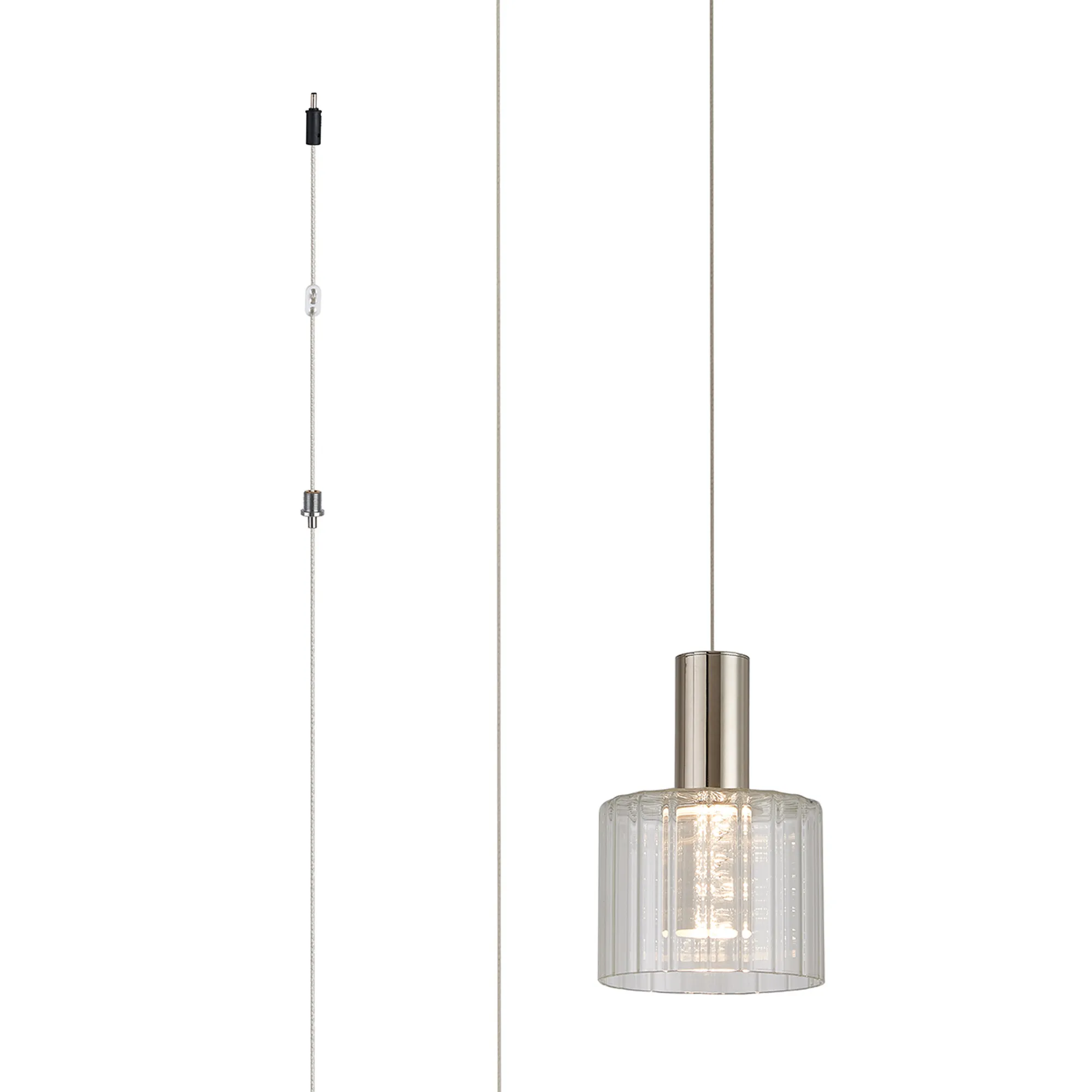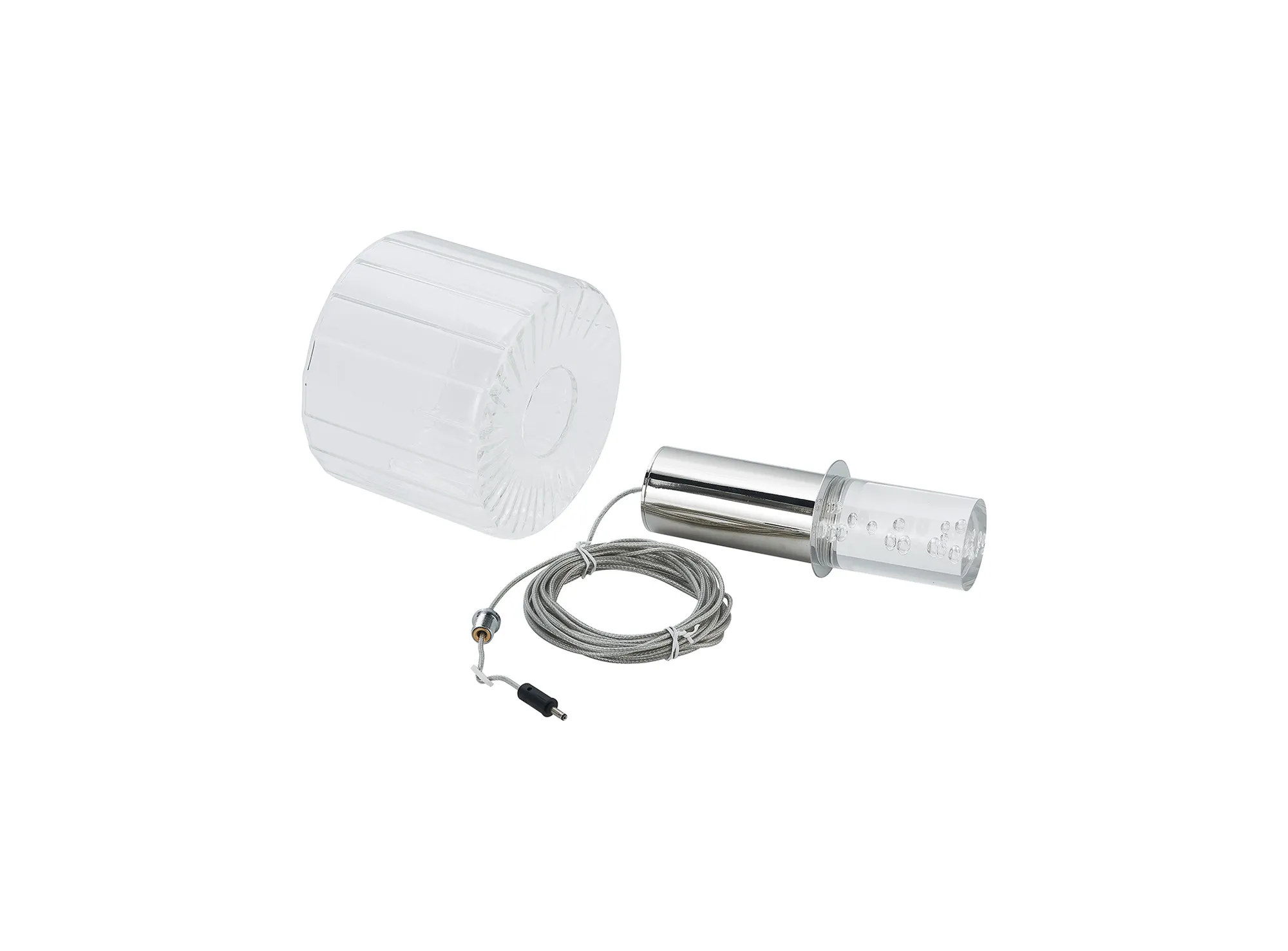 Paris Style B, Polished Nickel/Clear Ribbed Glass, Bubble Acrylic, 5W, 3000K, 320lm, 5m Assembly Pendant With A DC Plug