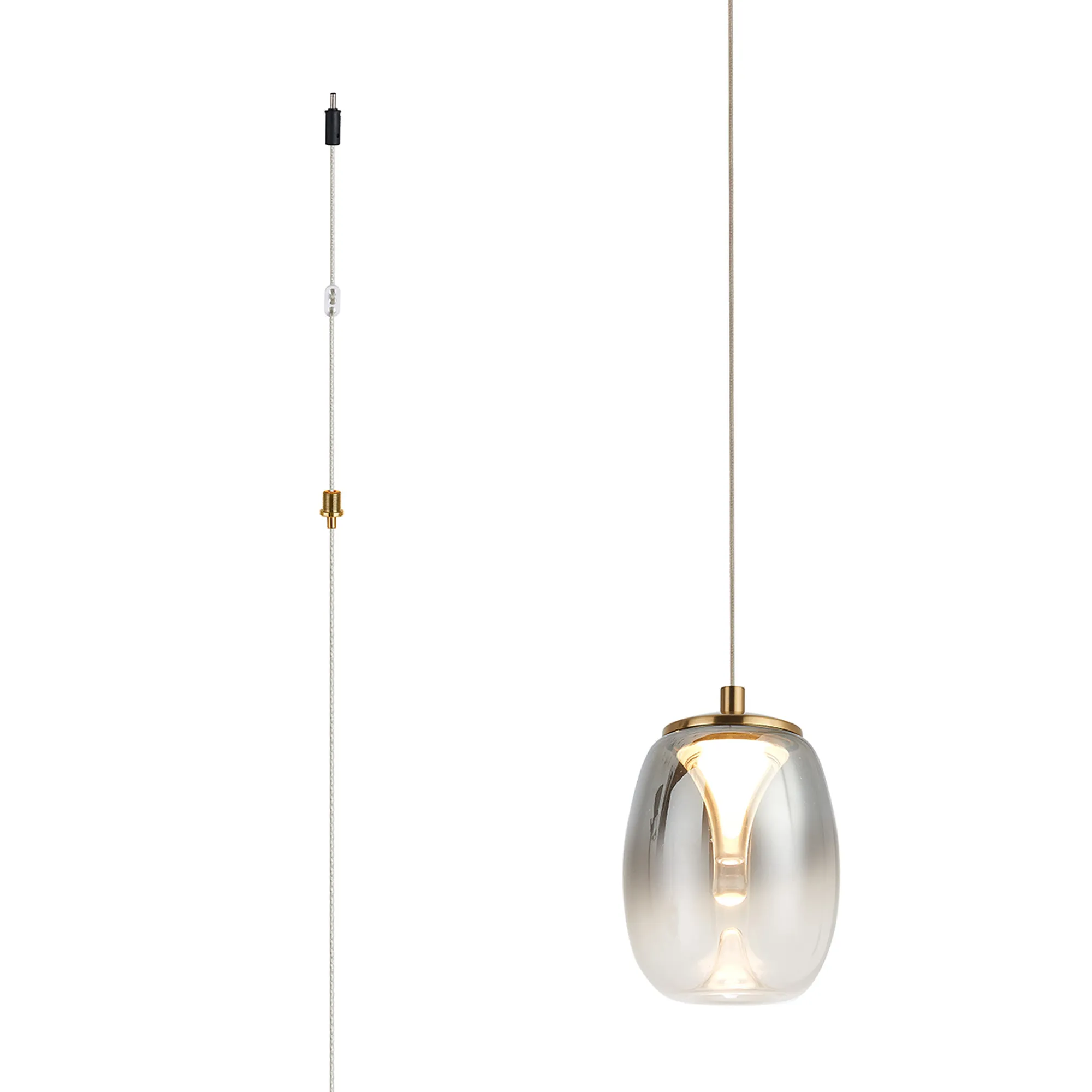 Paris Style D Brass/Smoke Fade Squircle Glass, 1 x 5W LED, 3000K, 440lm, 5m Assembly Pendant With A DC Plug