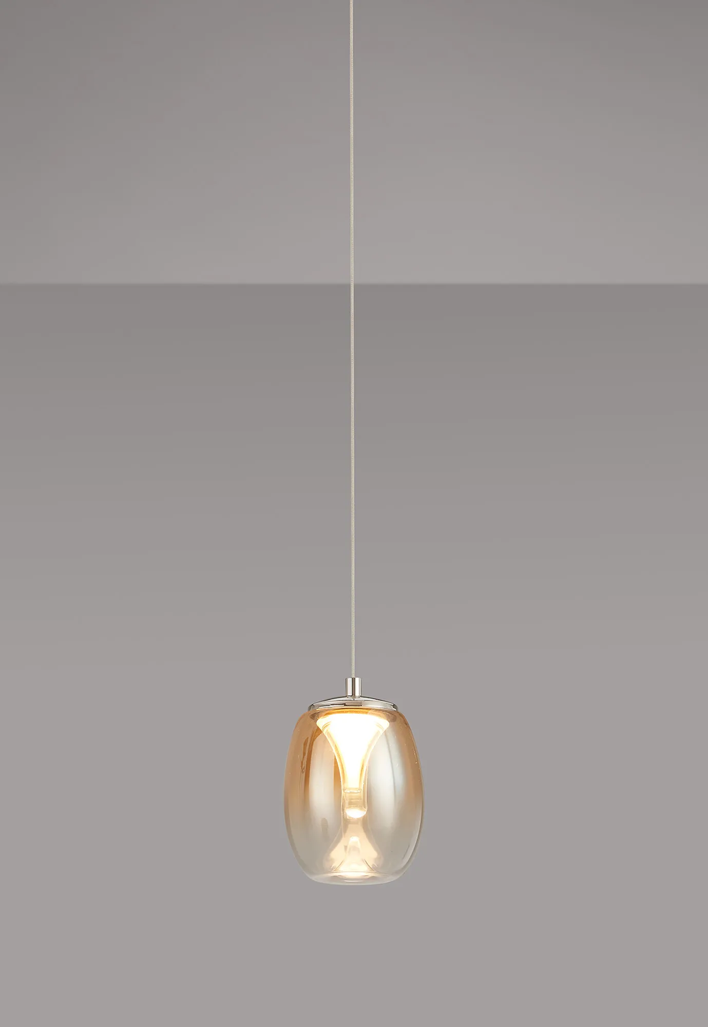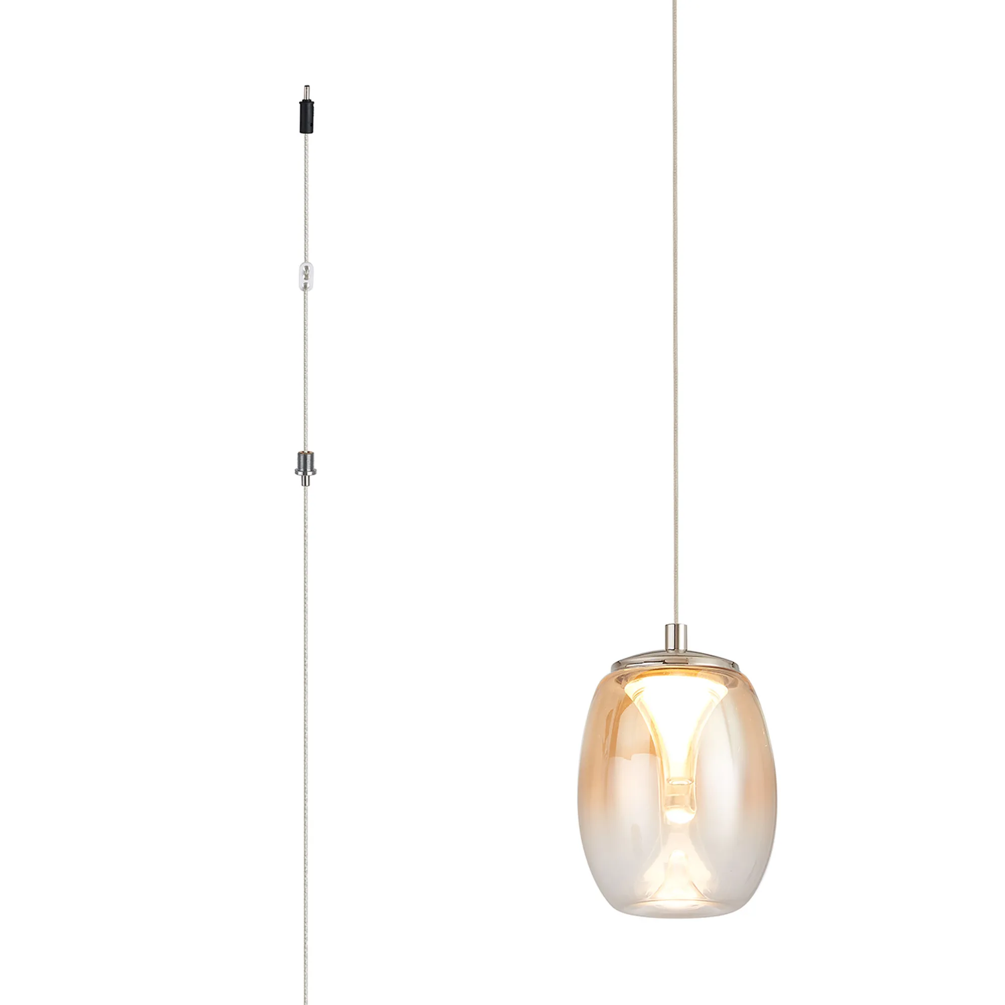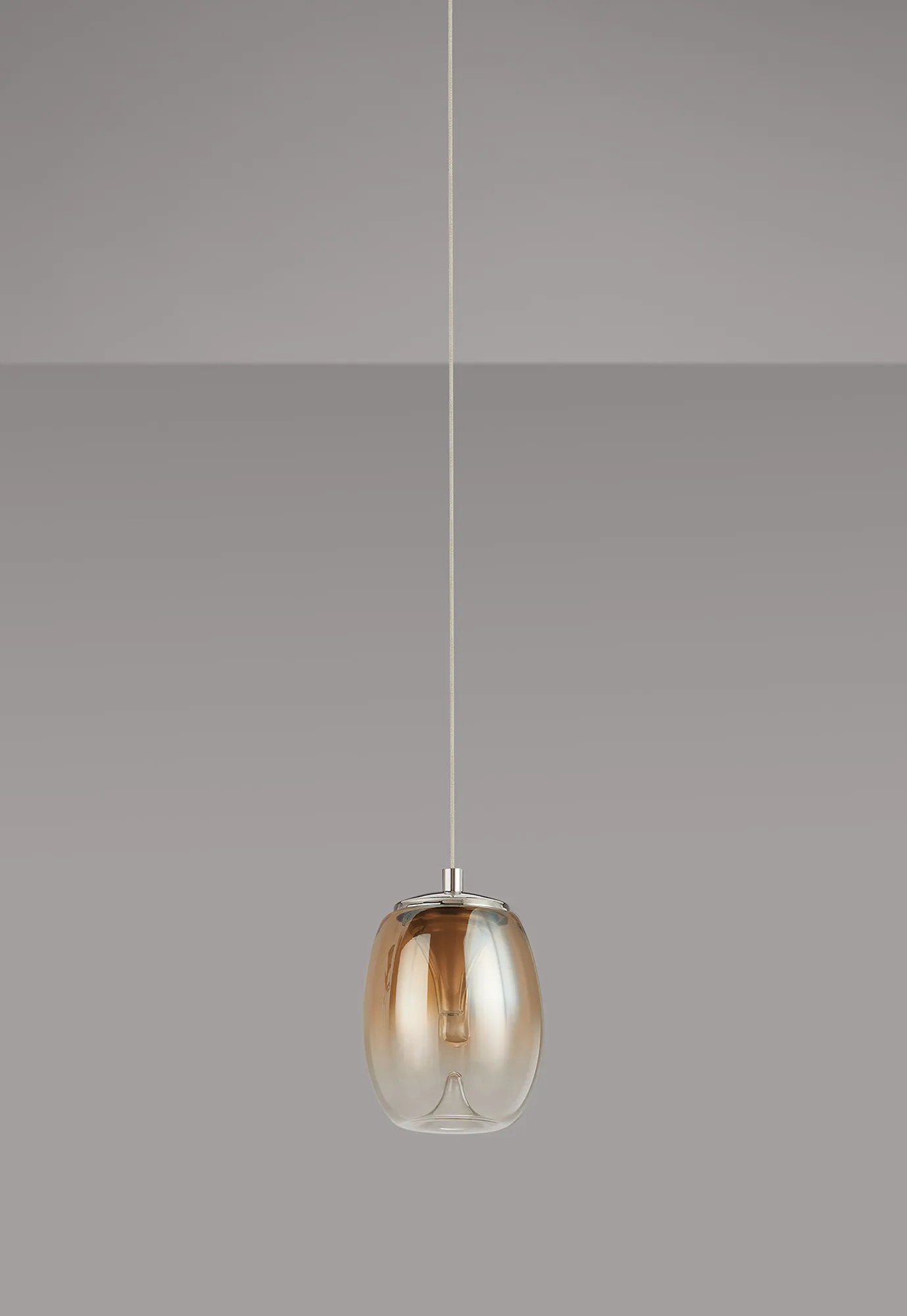 Paris Style D Polished Nickel/Amber Fade Squircle Glass, 1 x 5W LED, 3000K, 440lm, 5m Assembly Pendant With A DC Plug