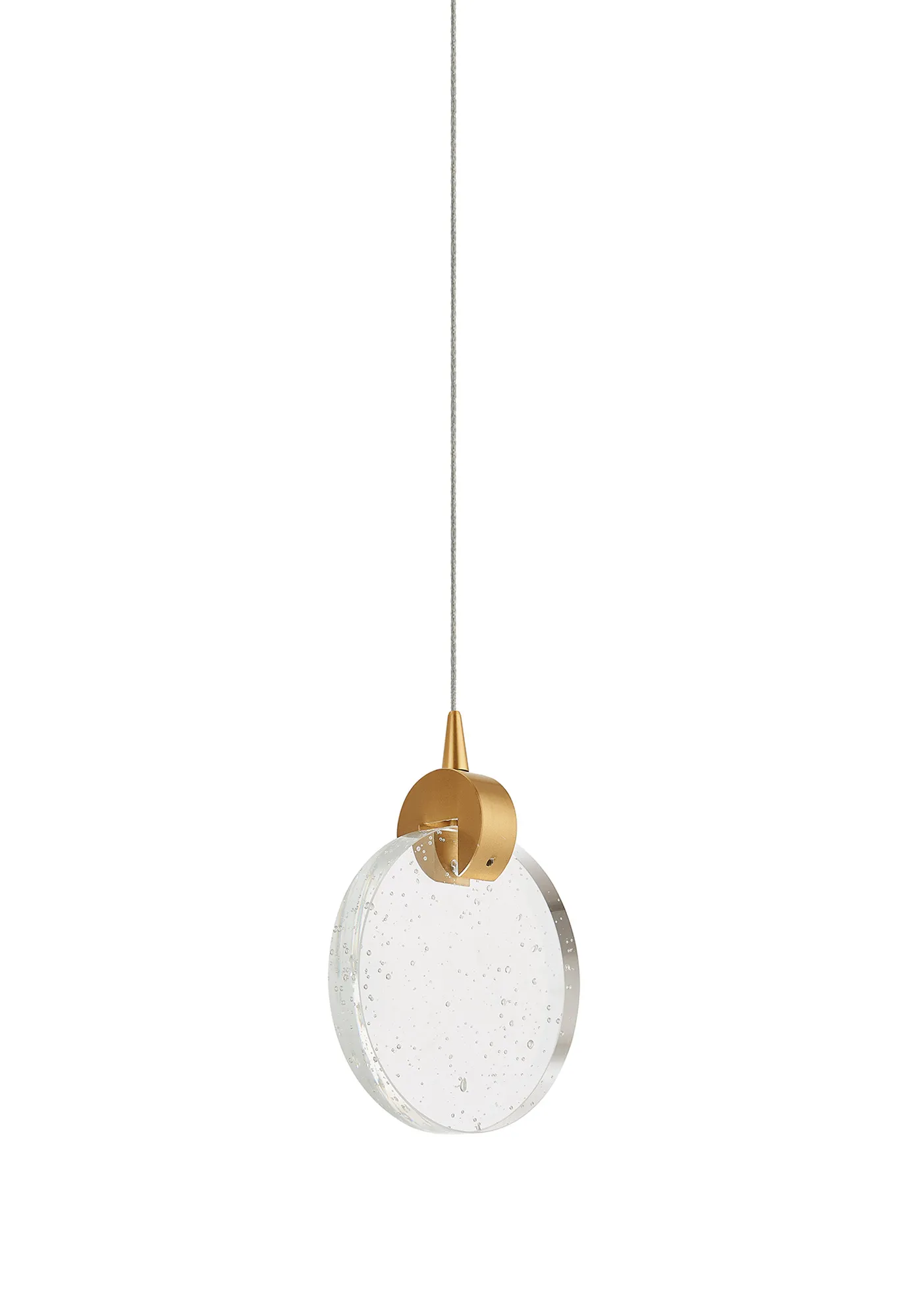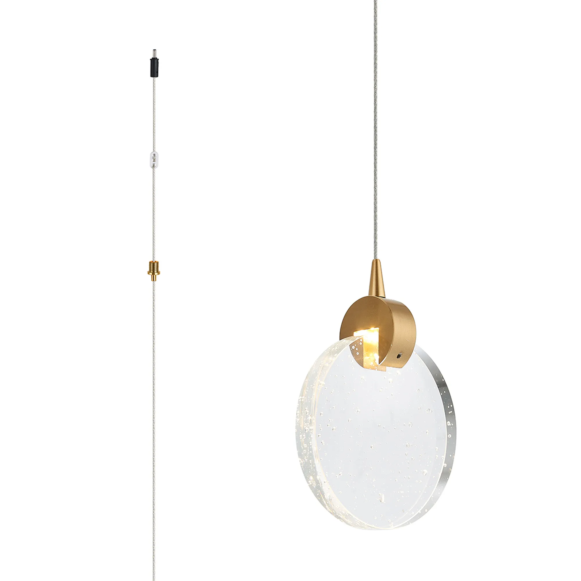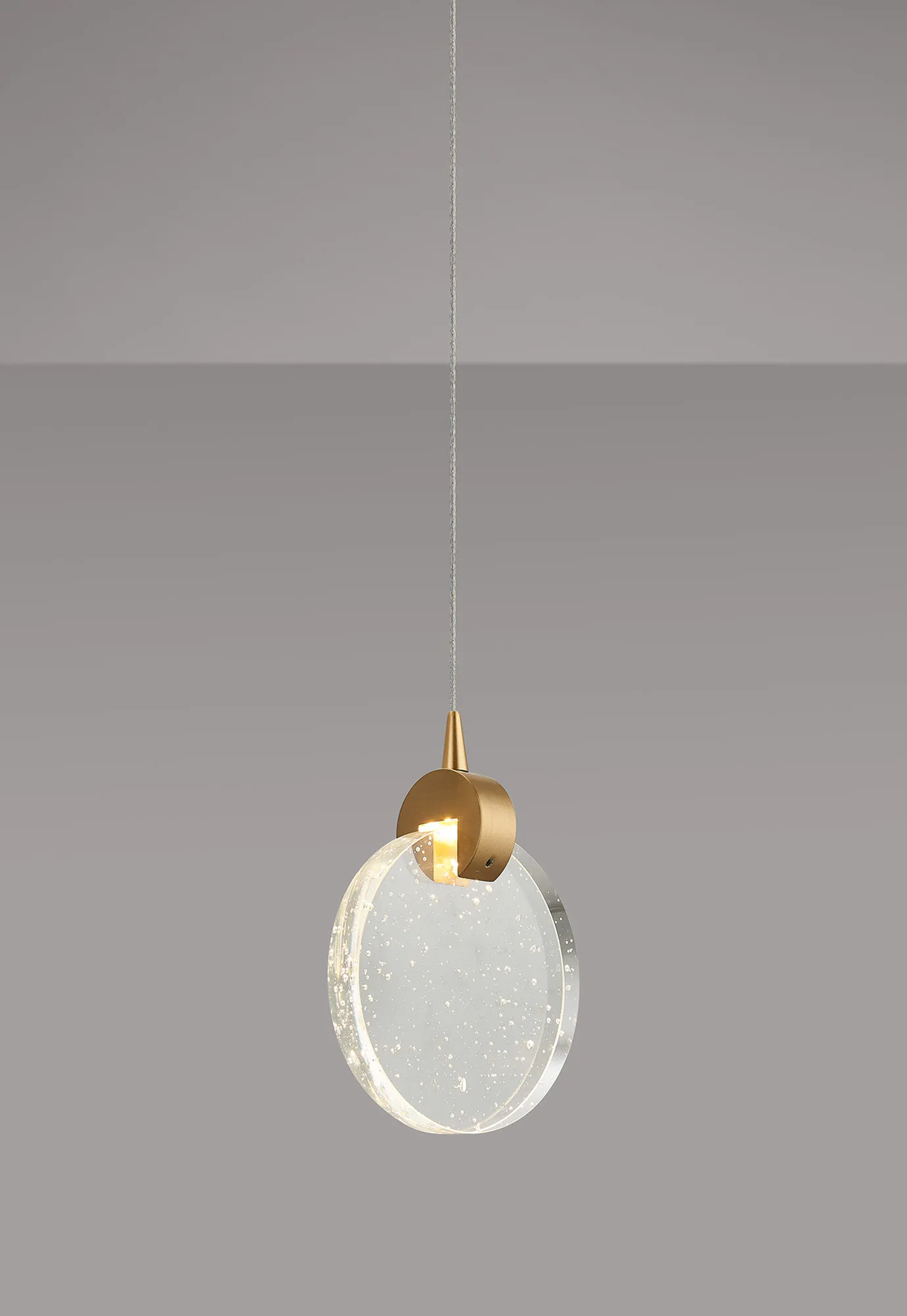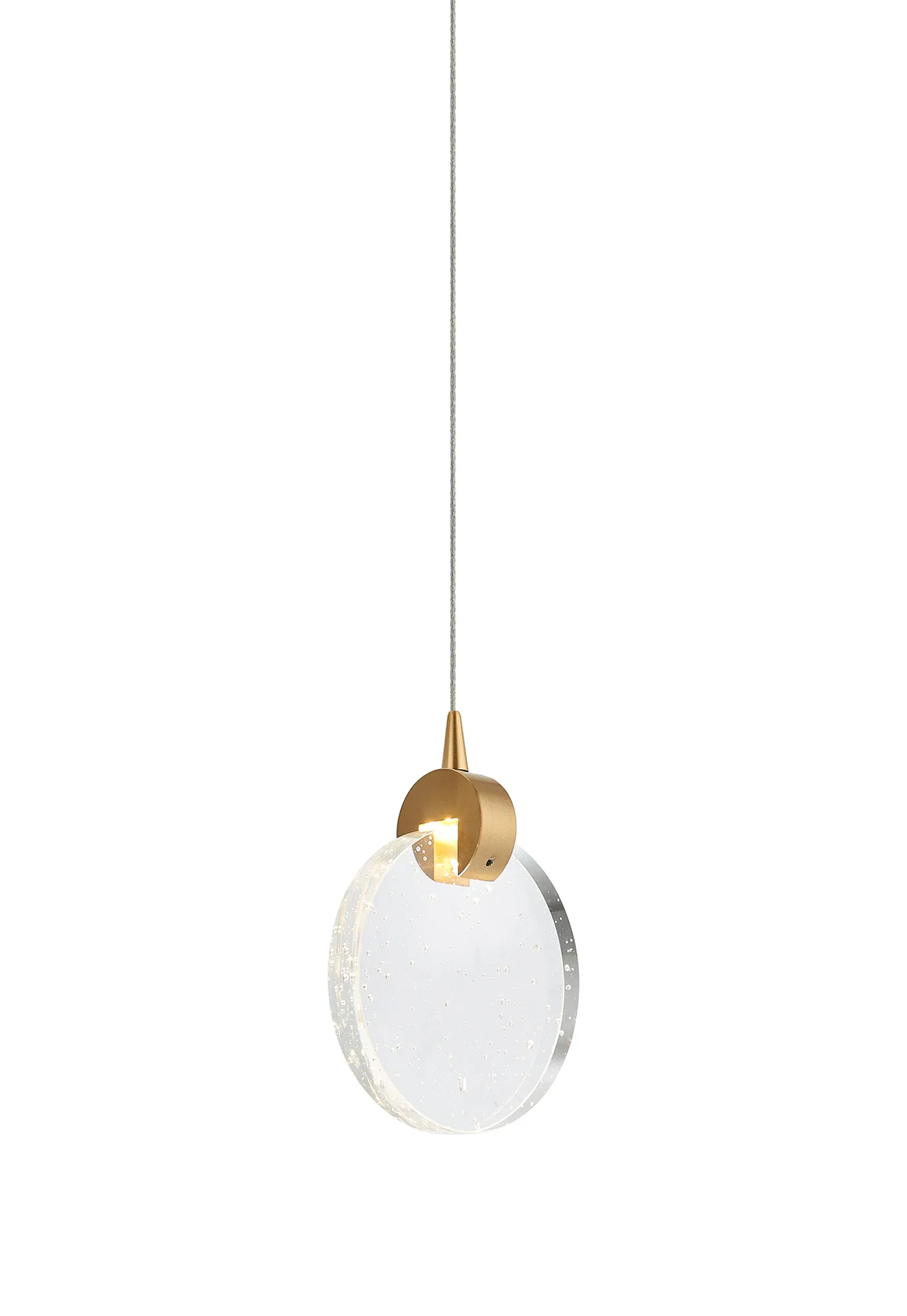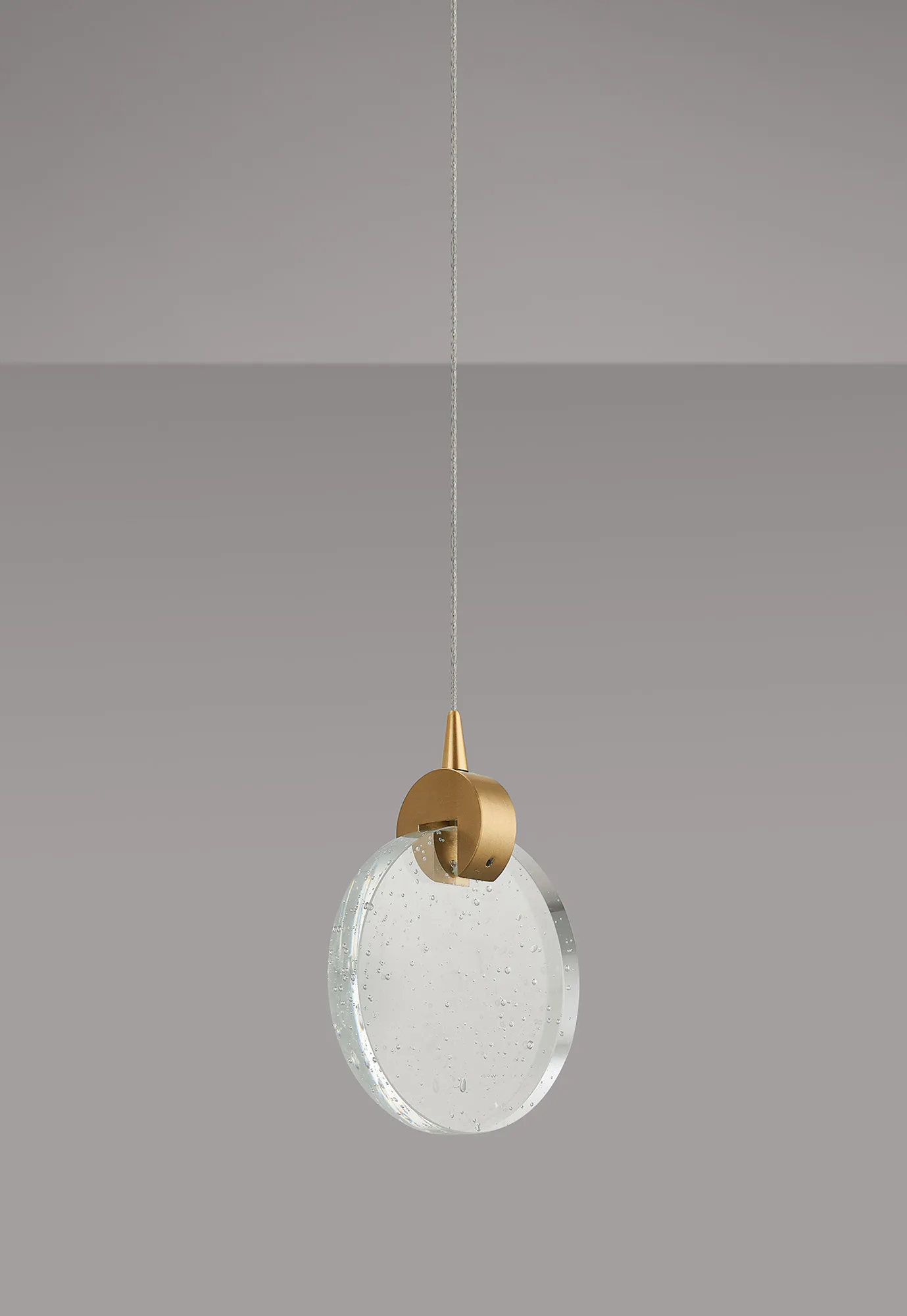 Paris Style E Brass/15cm Seeded Glass Disc, 3W LED, 3000K, 160lm, 5m Assembly Pendant With A DC Plug