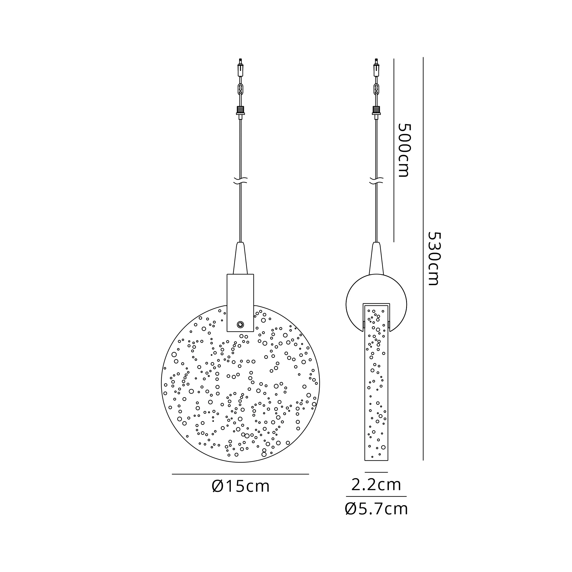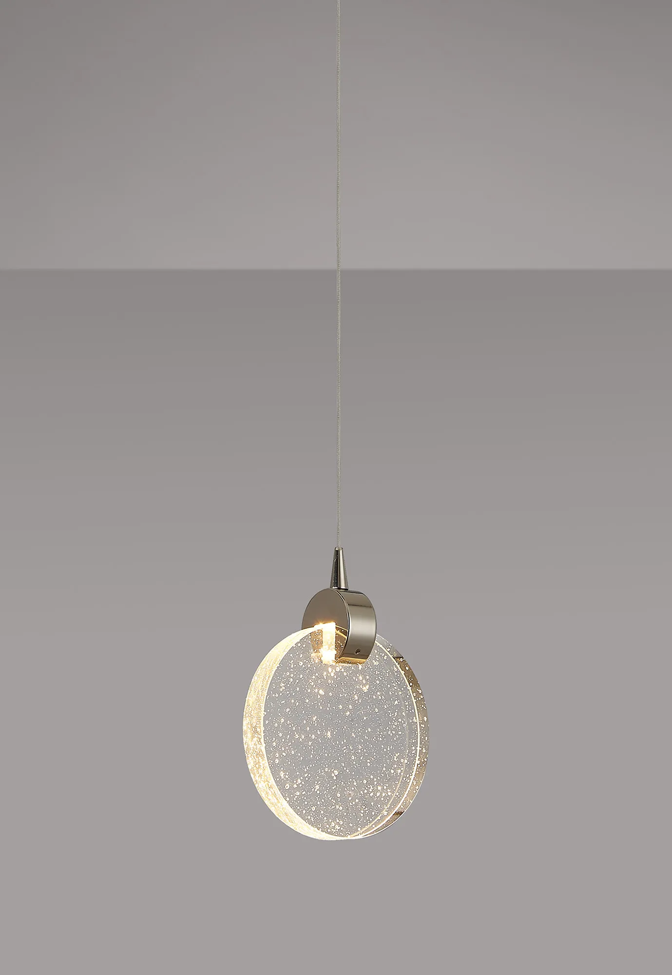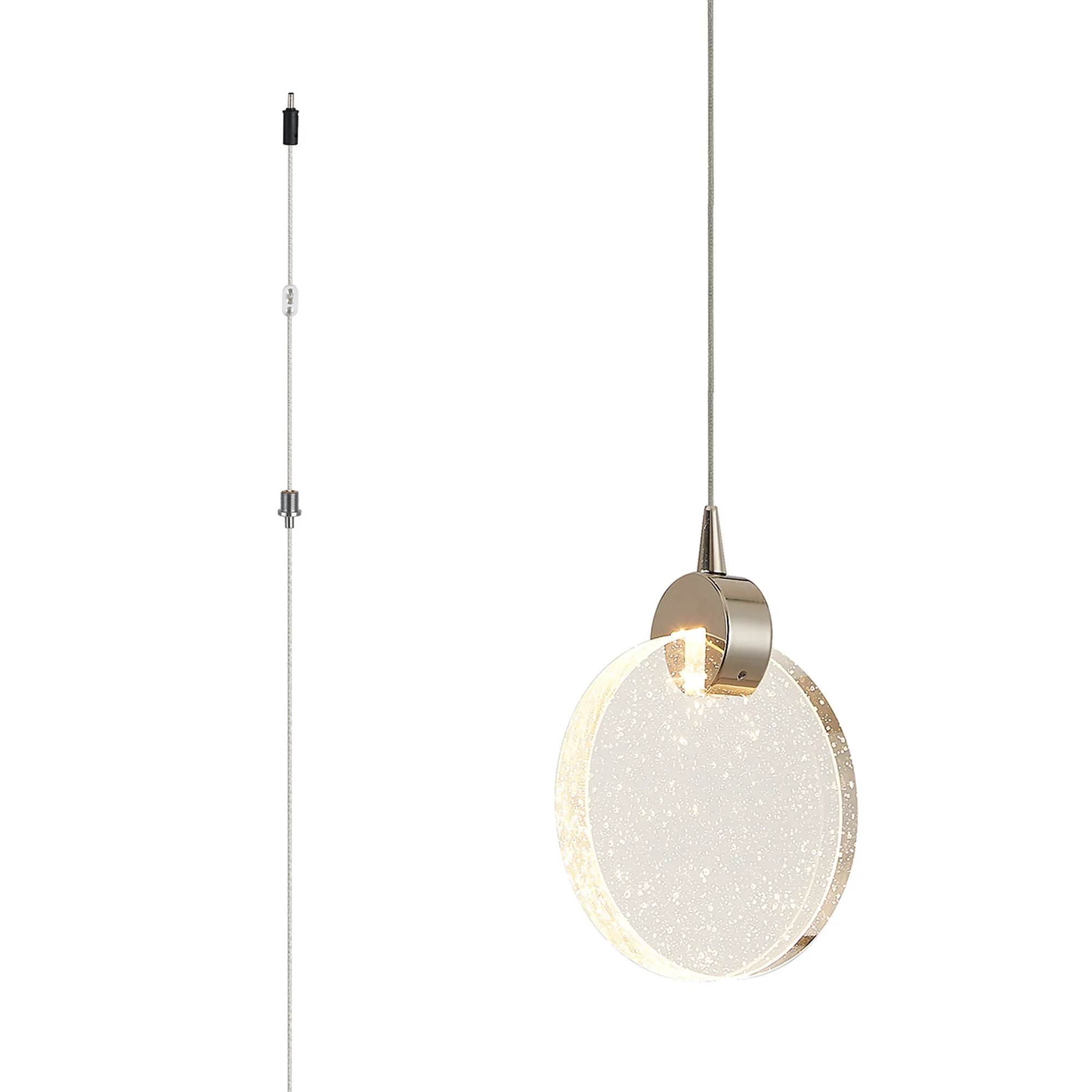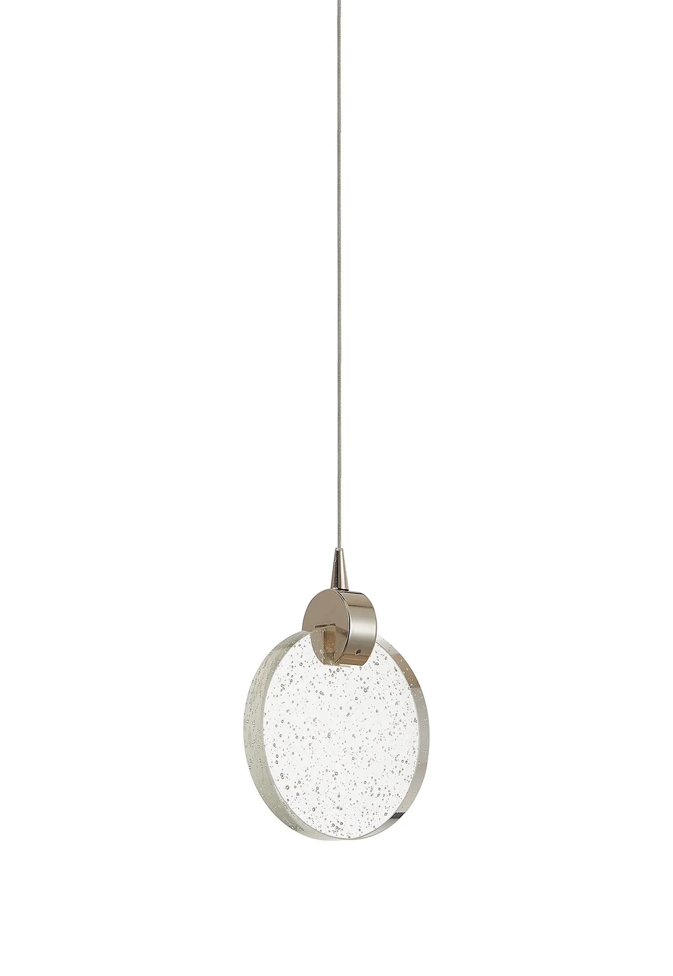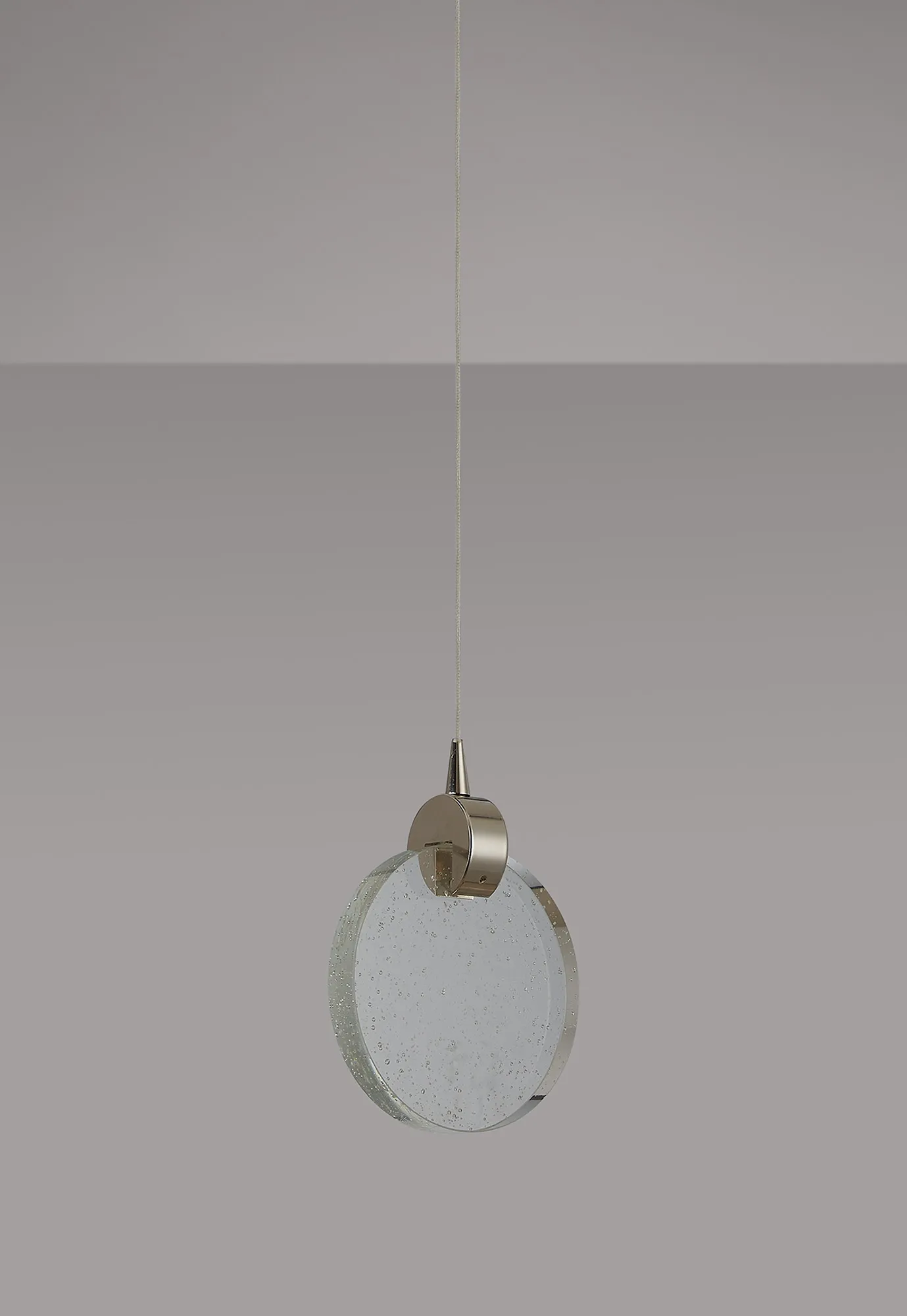 Paris Style E Polished Nickel/15cm Seeded Glass Disc, 3W LED, 3000K, 160lm, 5m Assembly Pendant With A DC Plug
