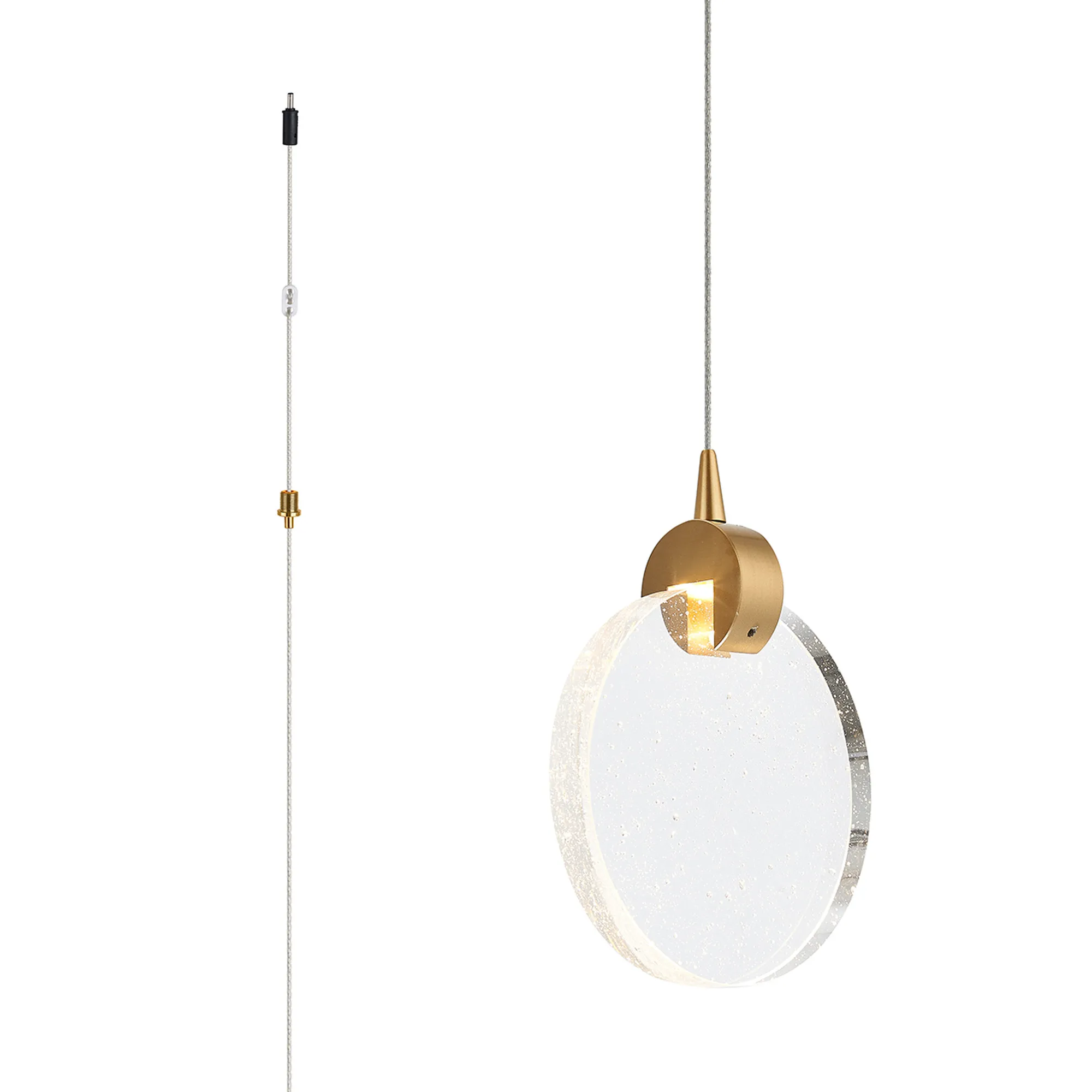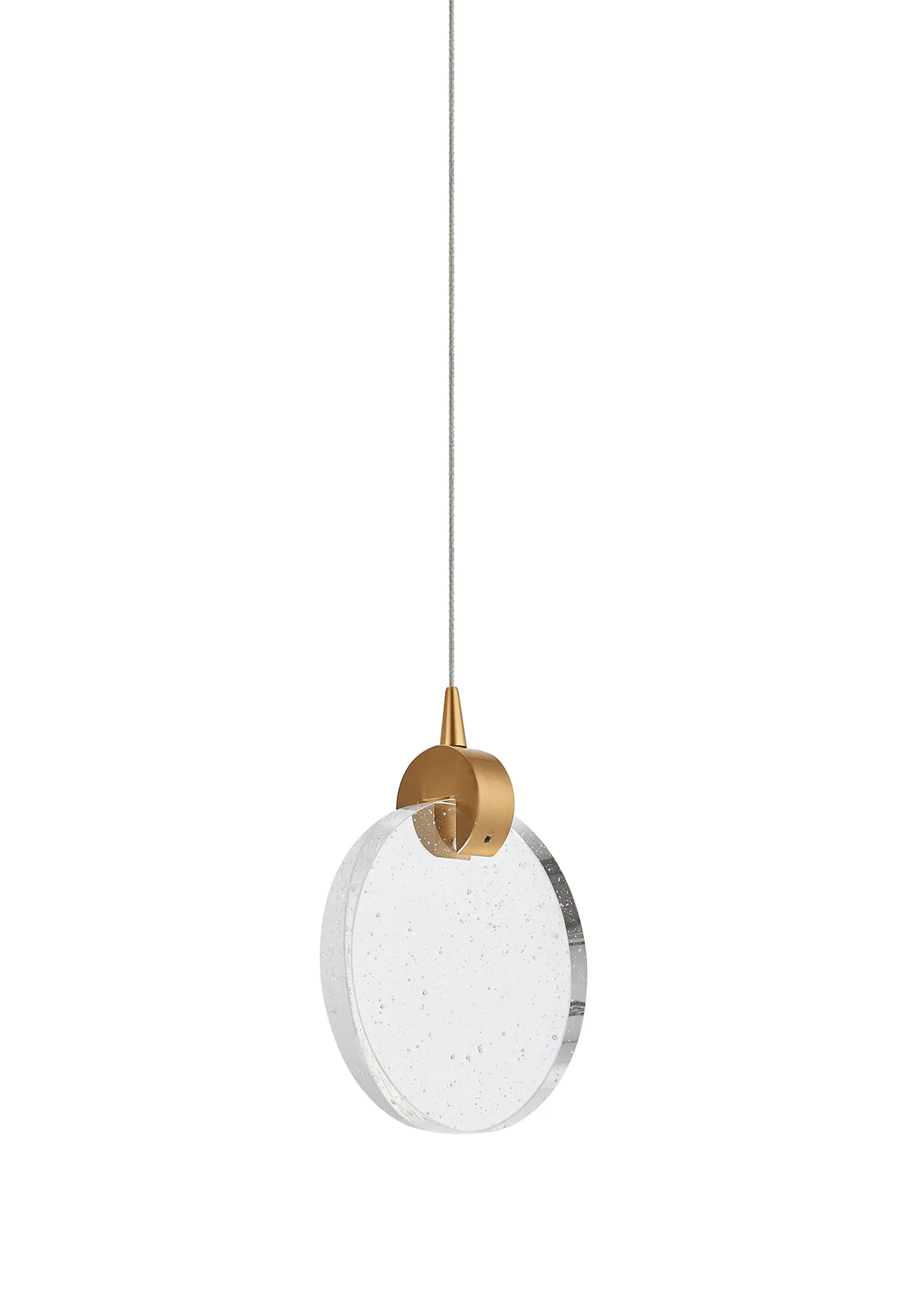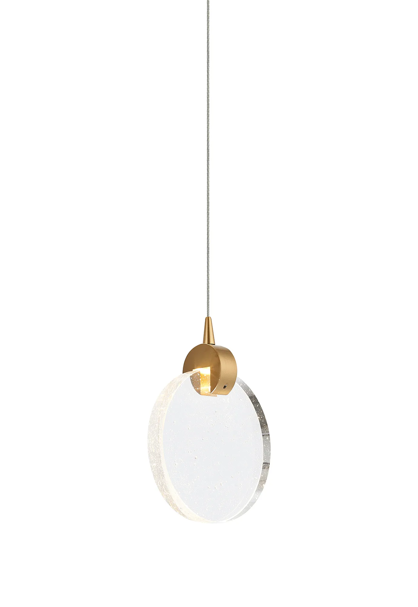 Paris Style E Brass/16cm Seeded Glass Disc, 3W LED, 3000K, 160lm, 5m Assembly Pendant With A DC Plug