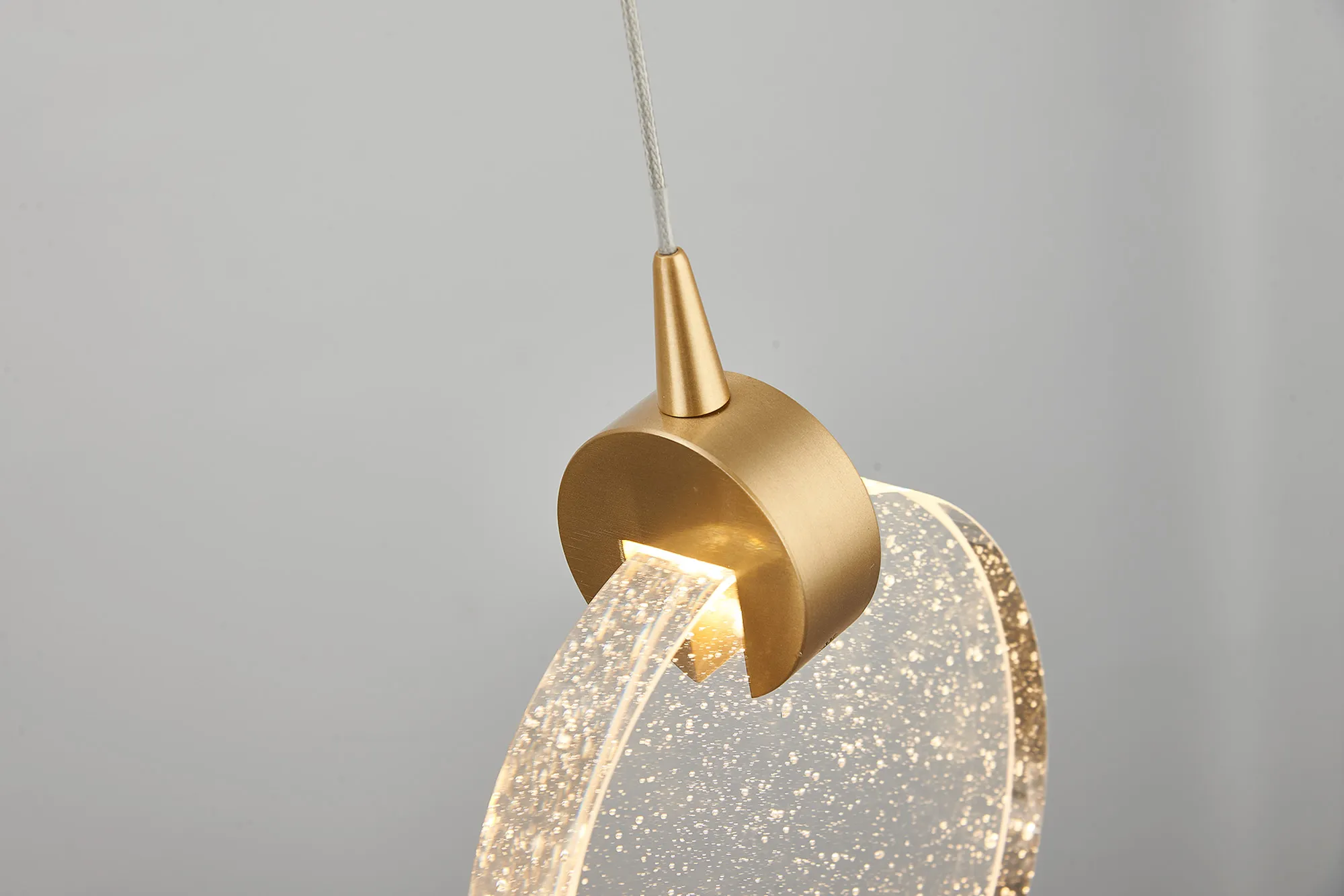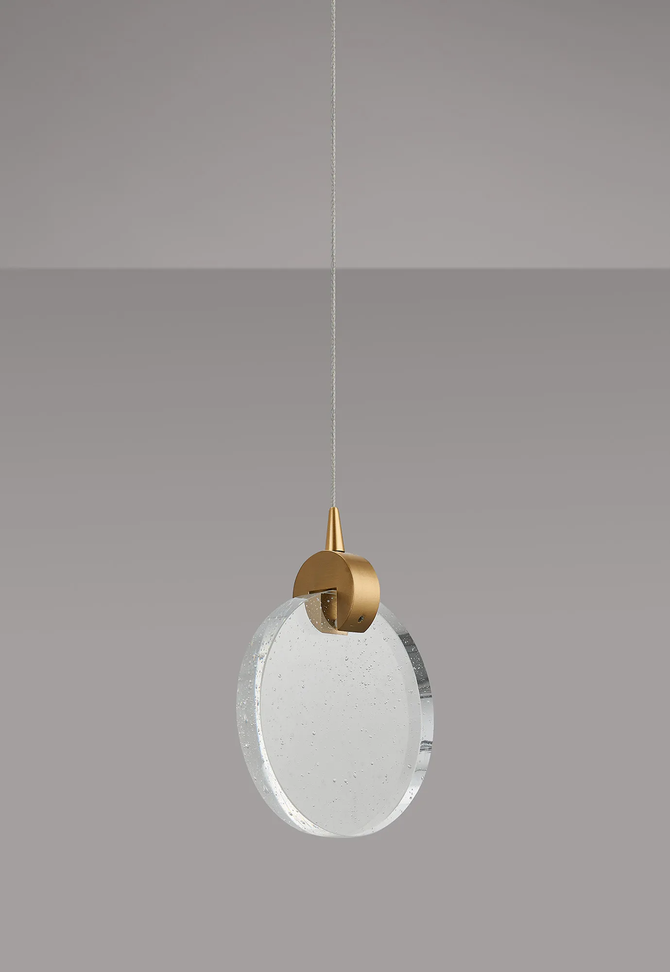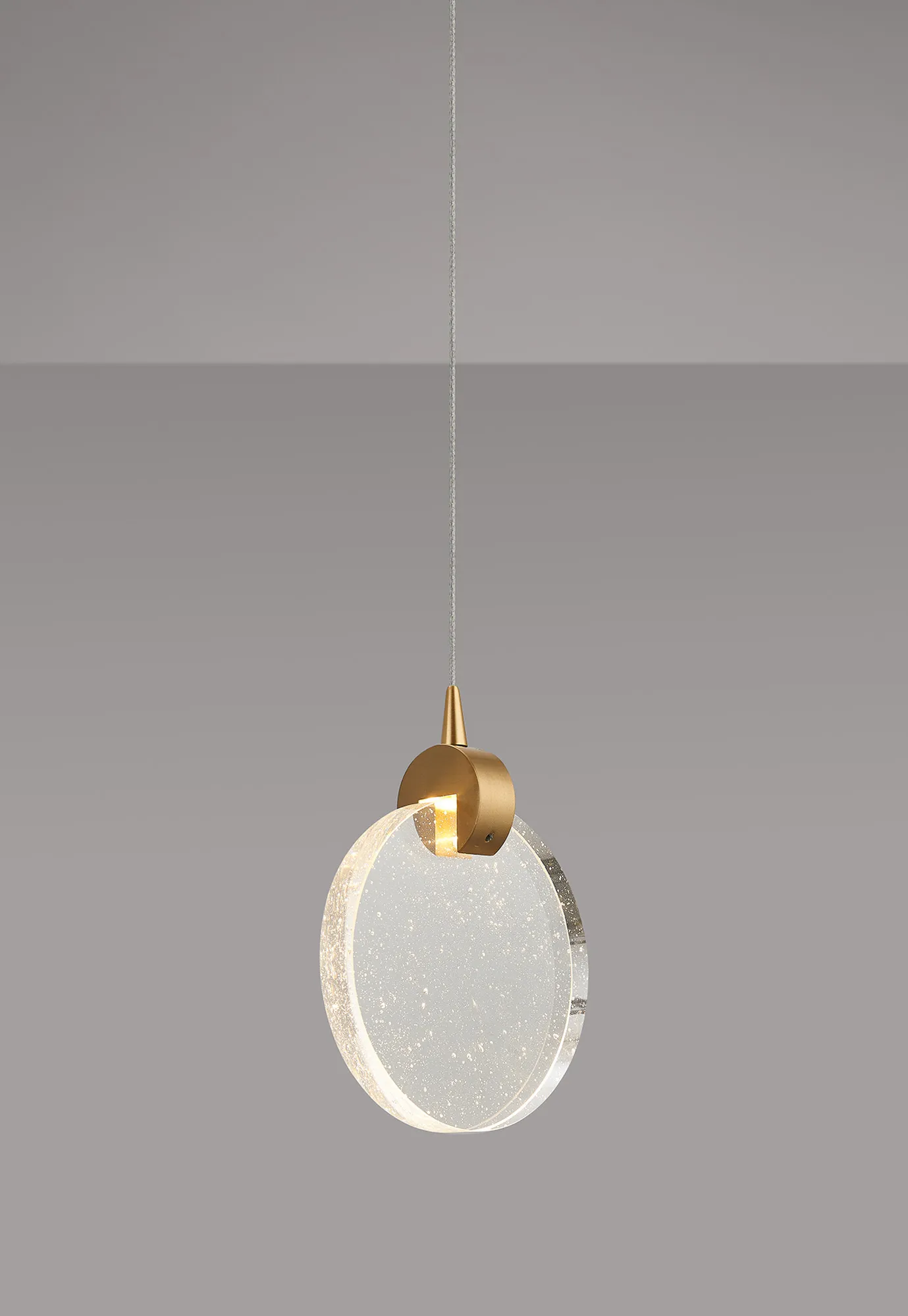 Paris Style E Brass/16cm Seeded Glass Disc, 3W LED, 3000K, 160lm, 5m Assembly Pendant With A DC Plug