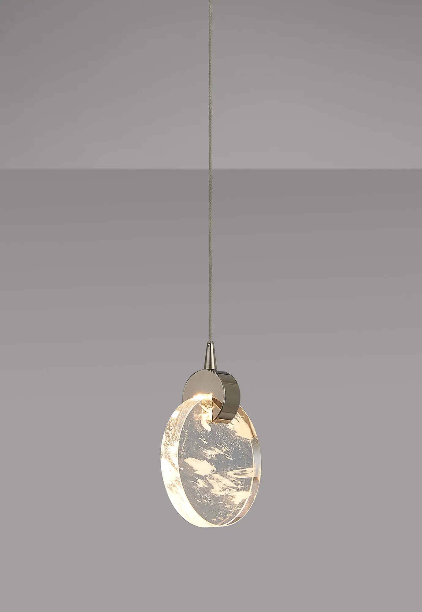 Paris Style E Polsihed Nickel/13cm Cloud Effect Glass Disc, 3W LED, 3000K, 160lm, 5m Assembly Pendant With DC Plug