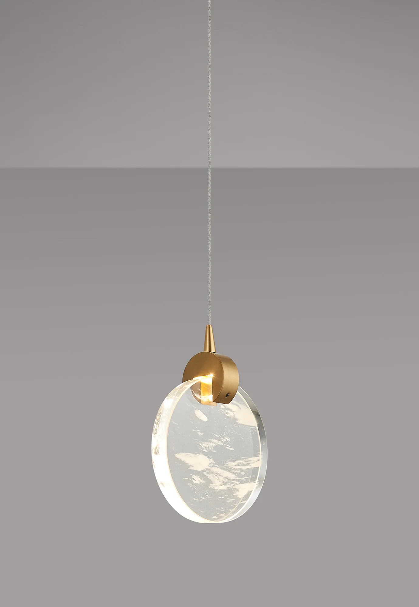 Paris Style E Brass/15cm Cloud Effect Glass Disc, 3W LED, 3000K, 160lm, 5m Assembly Pendant With A DC Plug