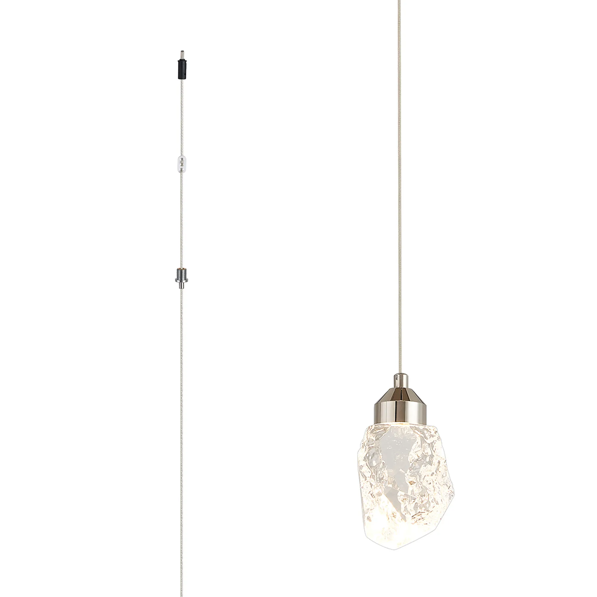 Paris Style G Polished Nickel/Clear Stone Crystal, 1 x 5W LED, 3000K, 360lm, 5m Assembly Pendant With A DC Plug