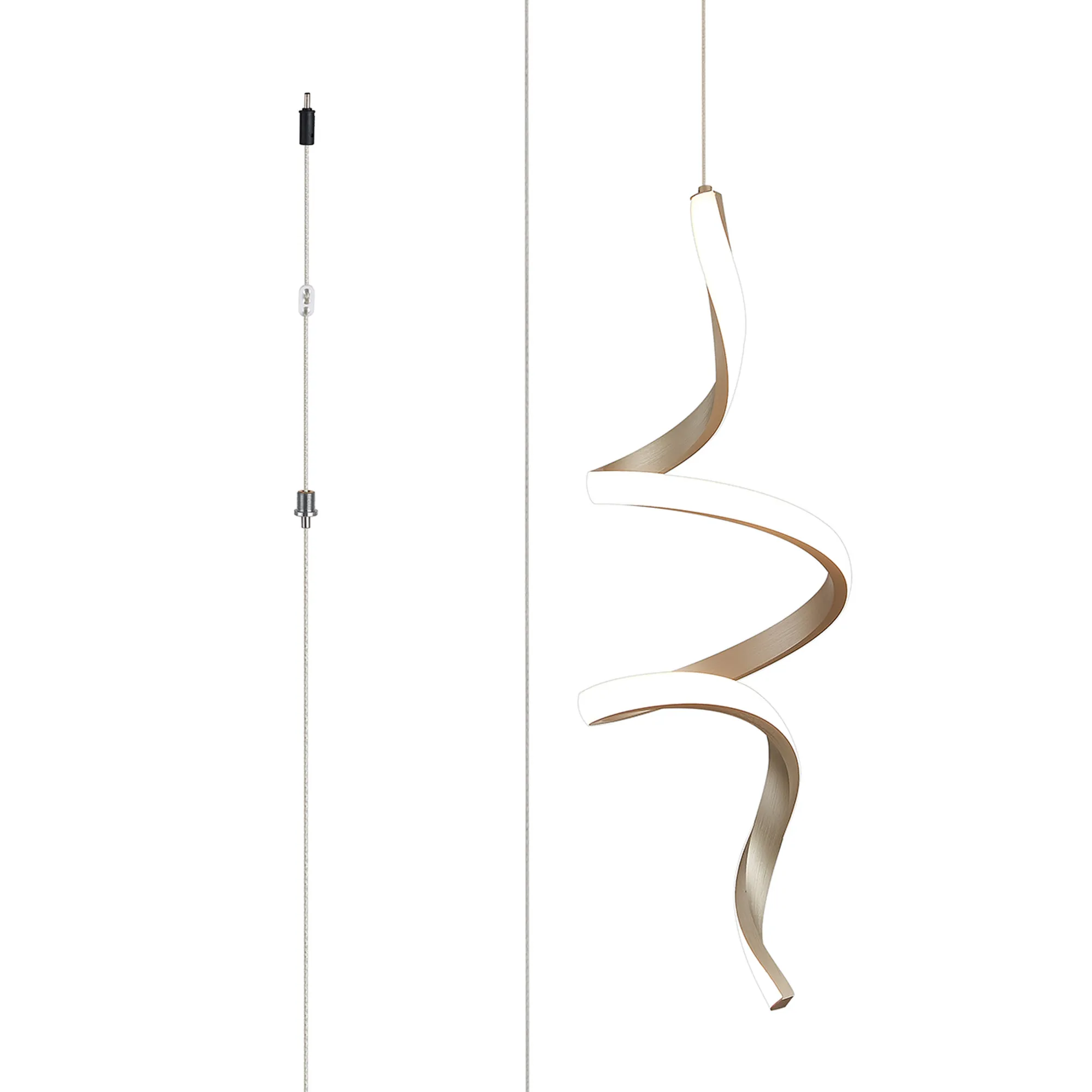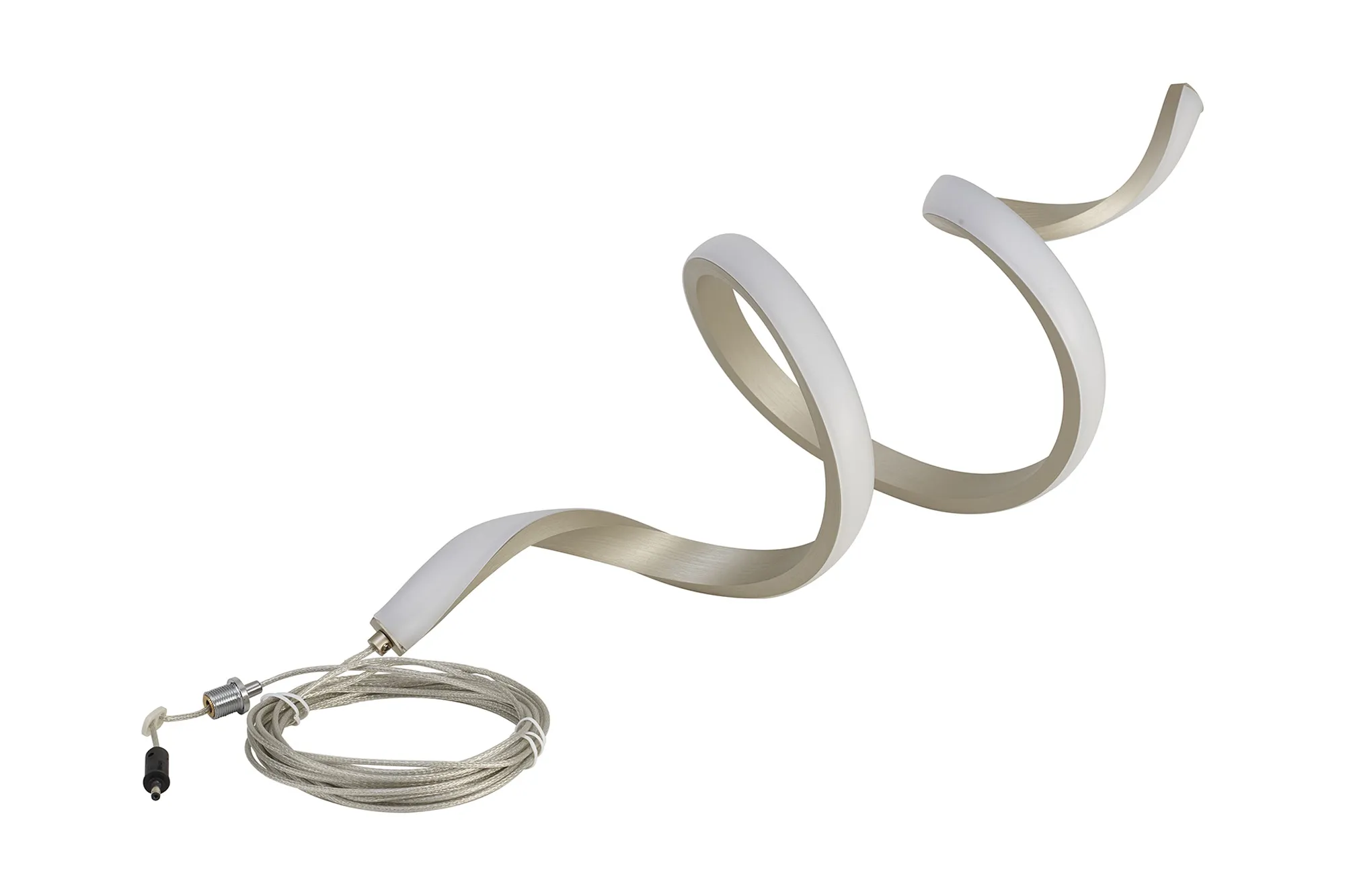 Paris Style H, Matt Satin Nickel, Spiral LED, 15W, 3000K, 730lm, 5m Assembly Pendant With A DC Plug