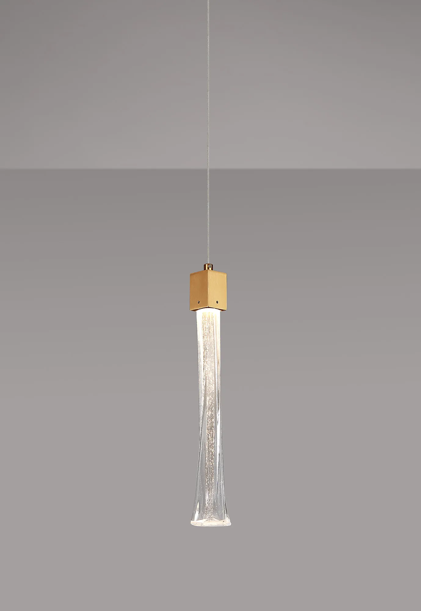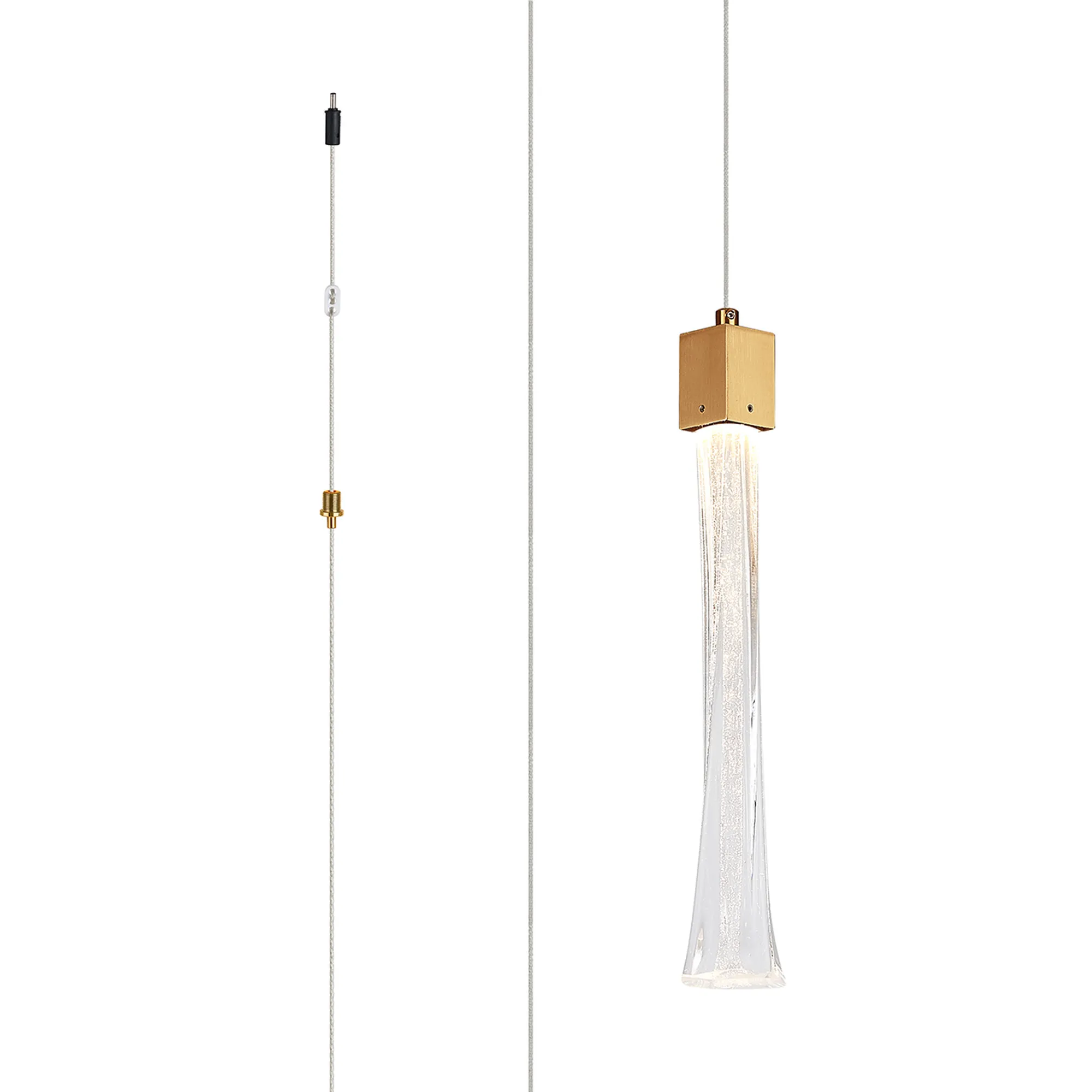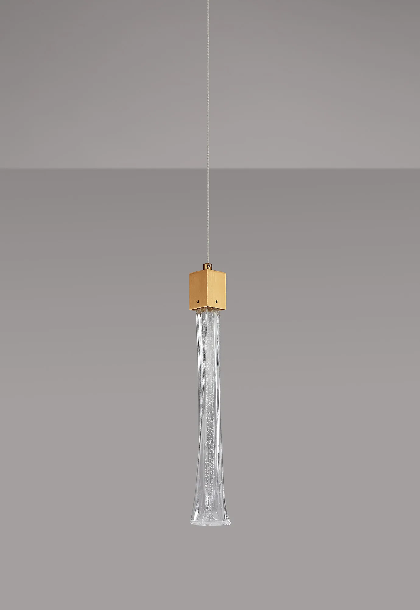 Paris Style P, Brass/Clear Twisted Glass, 3W LED, 3000K, 100lm, 5m Assembly Pendant With A DC Plug