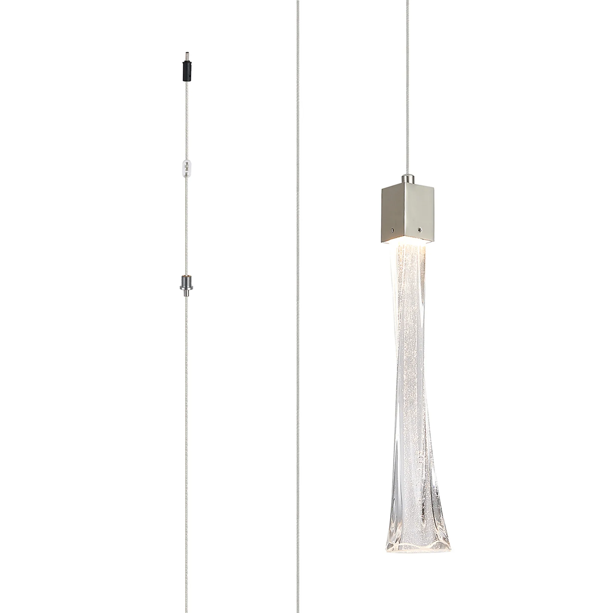 Paris Style P, Polished Nickel/Clear Twisted Glass, 3W LED, 3000K, 100lm, 5m Assembly Pendant With A DC Plug