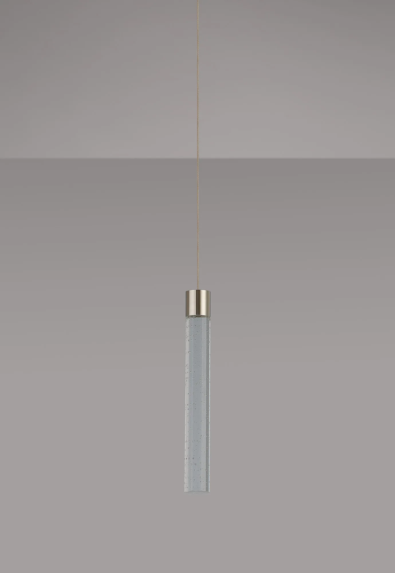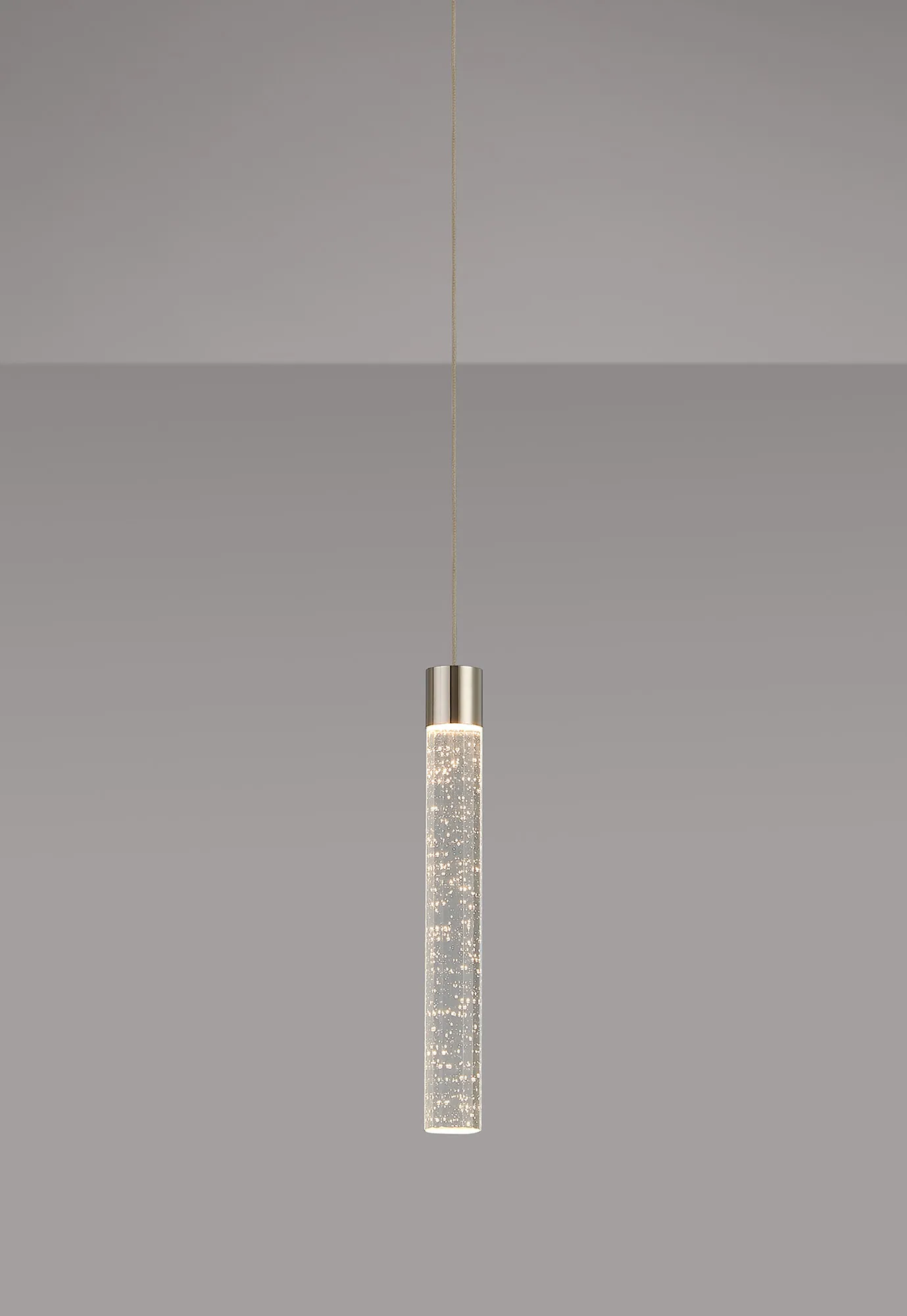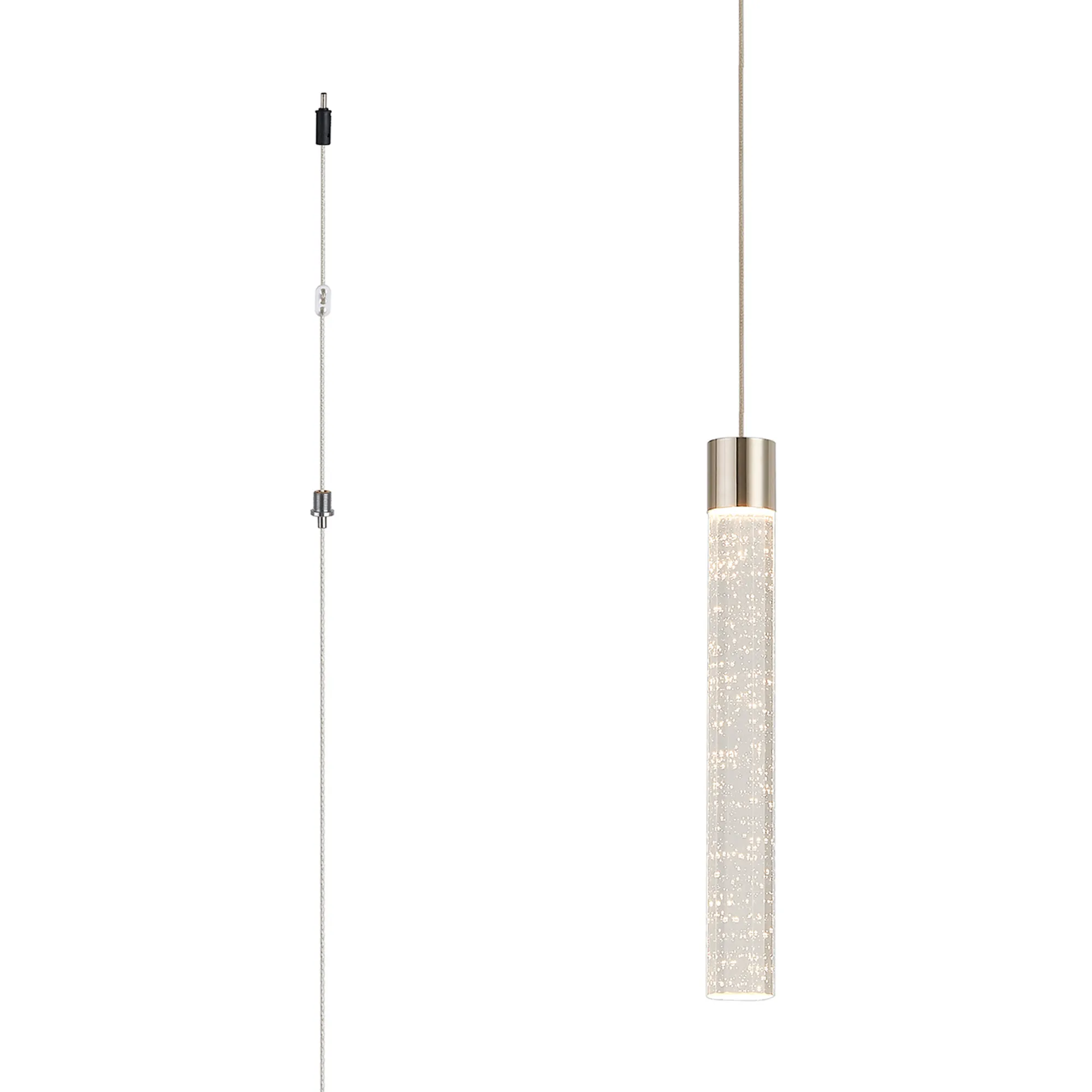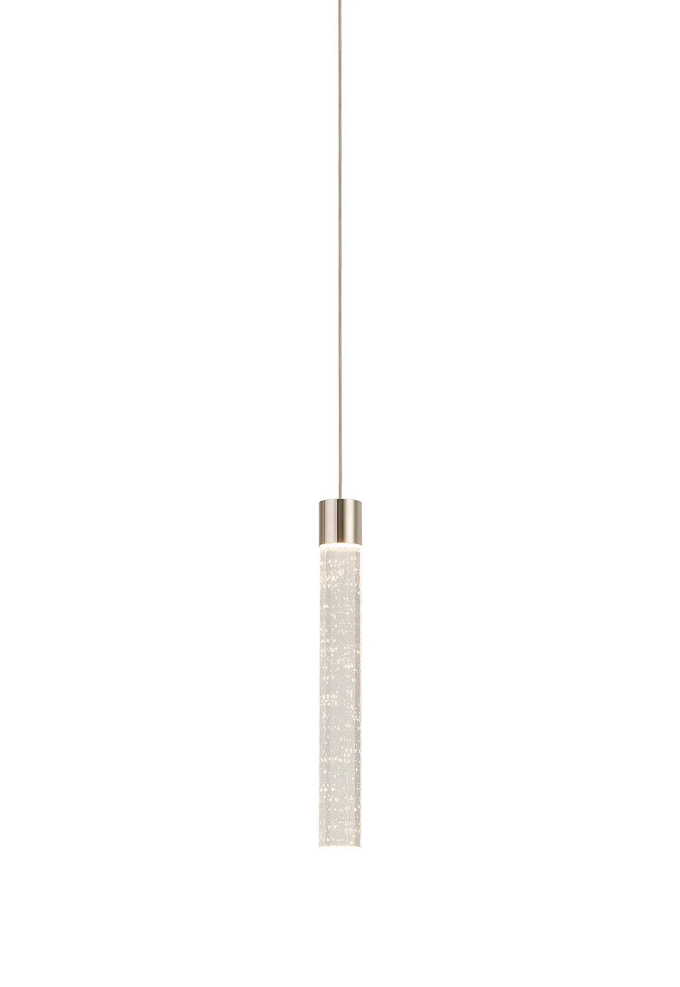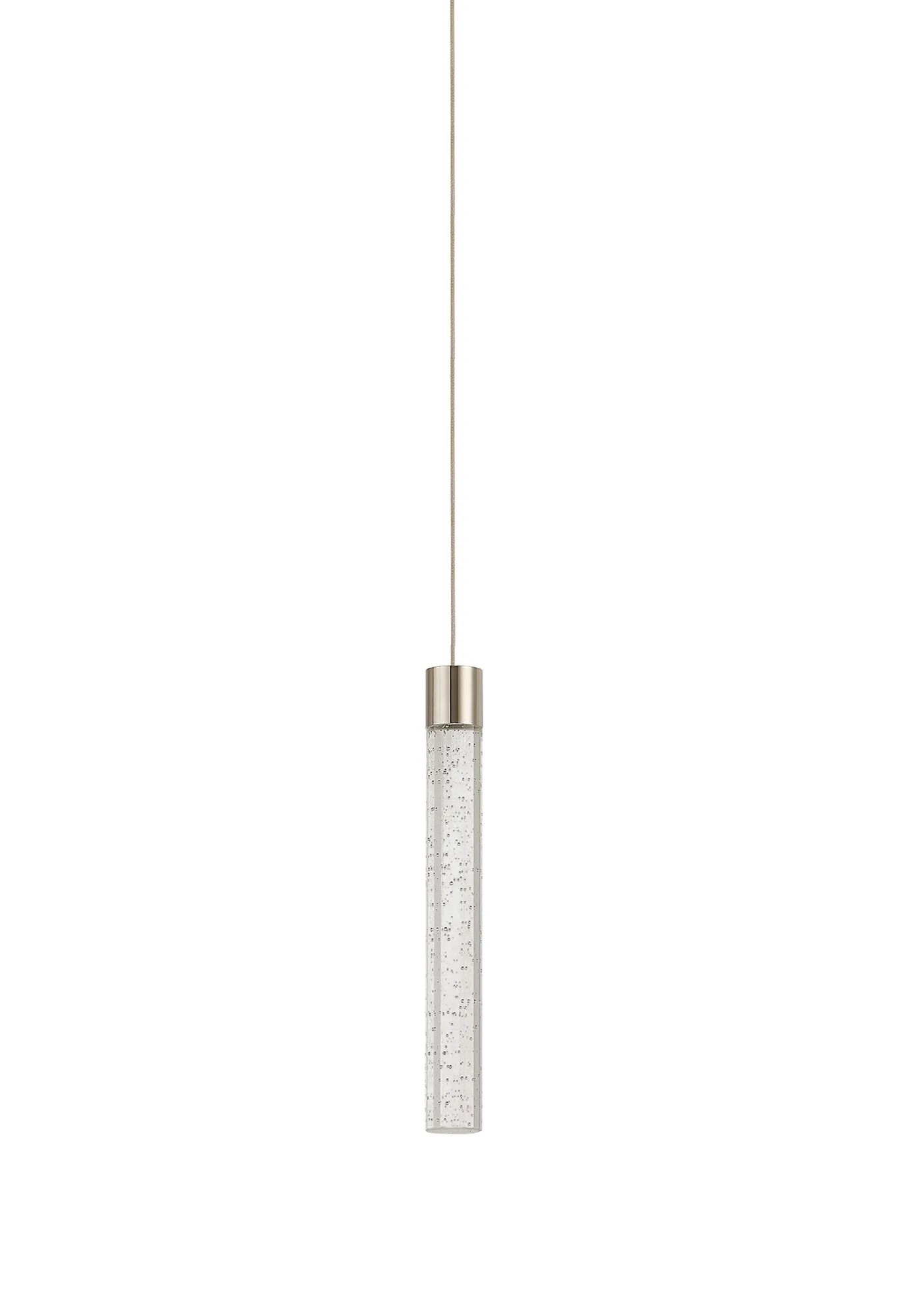 Paris Style S Polished Nickel/Seeded Tube Crystal, 1 x 3W LED, 3000K, 110lm, 5m Assembly Pendant With A DC Plug