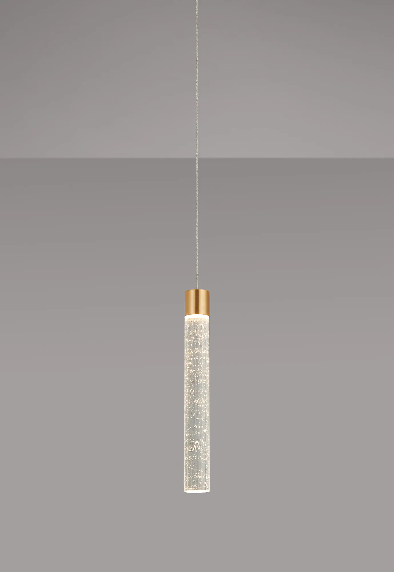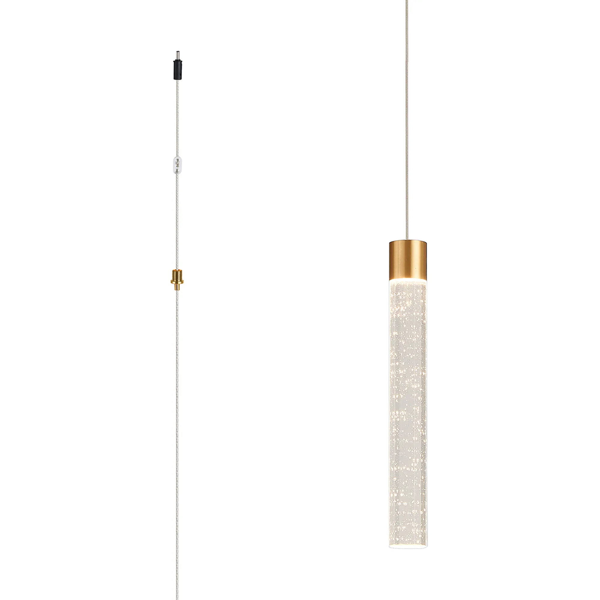 Paris Style S Brass/Seeded Tube Crystal, 1 x 3W LED, 3000K, 110lm, 5m Assembly Pendant With A DC Plug
