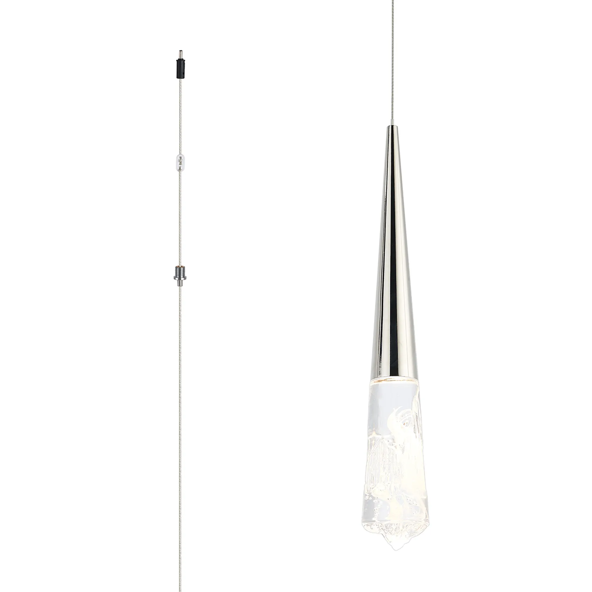 Paris Style T Polished Nickel/Stone Crystal, 1 x 5W LED, 3000K, 290lm, 5m Assembly Pendant With A DC Plug