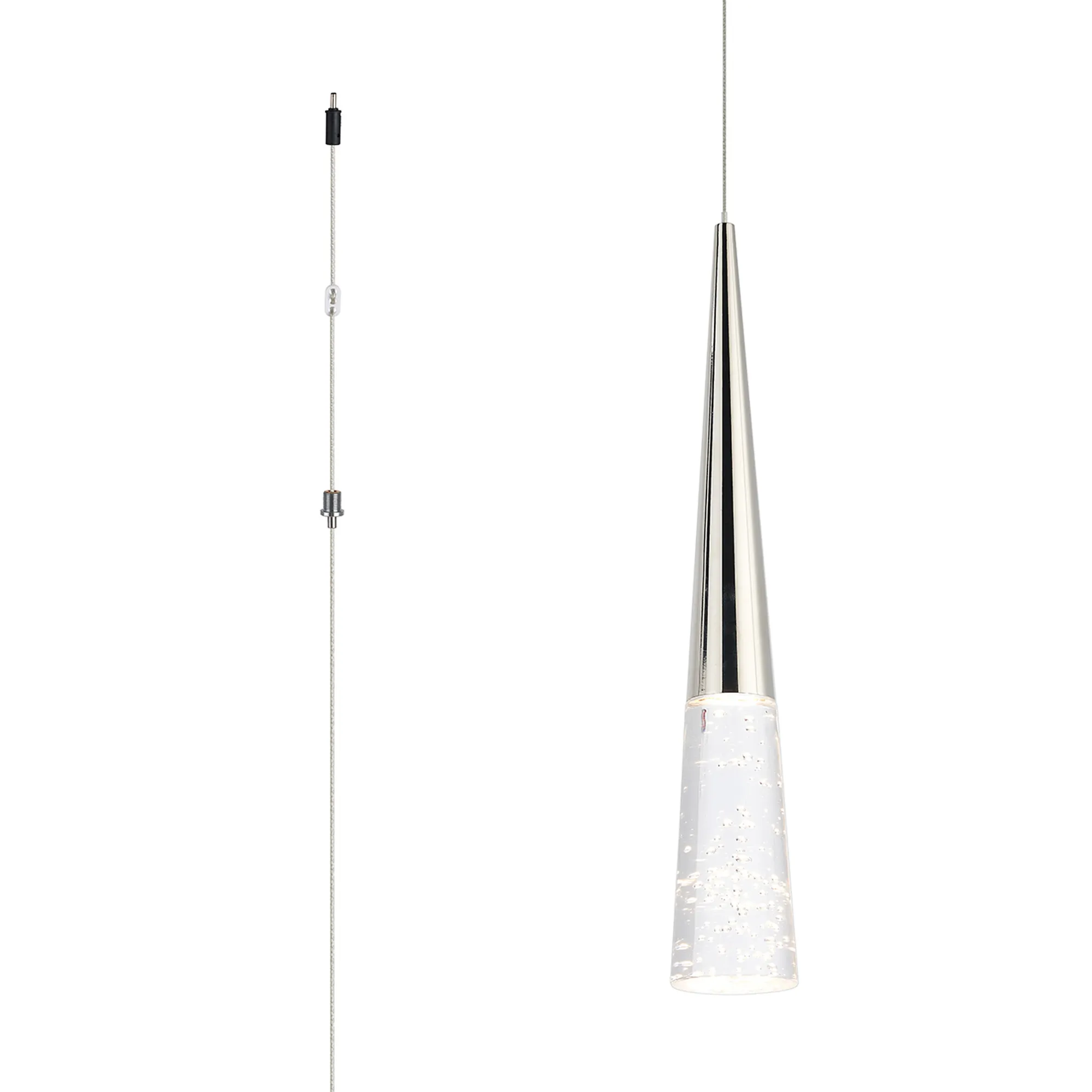 Paris Style T Polished Nickel/Bubble Acrylic, 1 x 5W LED, 3000K, 290lm, 5m Assembly Pendant With A DC Plug